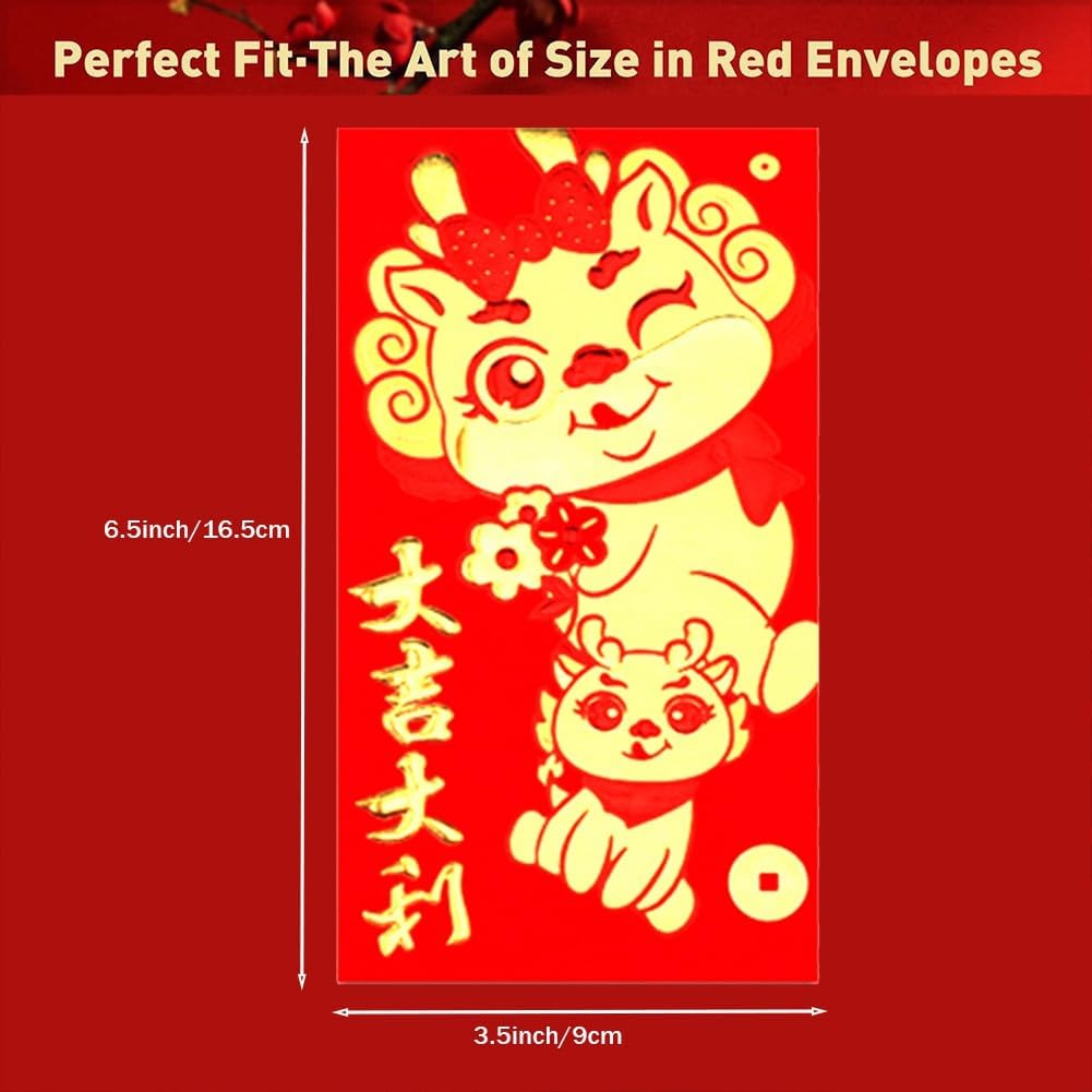 Dimensioni perfette: dimensioni: 6,5 x 3,5 /9 x 16,5 cm. Le buste Dragon Year hanno le dimensioni perfette per tutti i tuoi regali in denaro e rendono il regalo un gioco da ragazzi. QUALITÀ ECCEZIONALE: le nostre buste cinesi per soldi portafortuna 2024 sono realizzate con materiali di alta qualità e garantiscono una superficie durevole ed elegante che apprezzerà i tuoi cari. PACCHETTO VARIALE: goditi una collezione diversificata di 36 buste cinesi, ciascuna decorata con uno dei 6 unici e create appositamente per l'anno del drago 2024. Festeggia con stile! Versatile e significativo: perfetto per diverse occasioni come Capodanno cinese, matrimoni, compleanni e molto altro ancora. Ogni confezione rossa è un segno di , gioia e desideri.