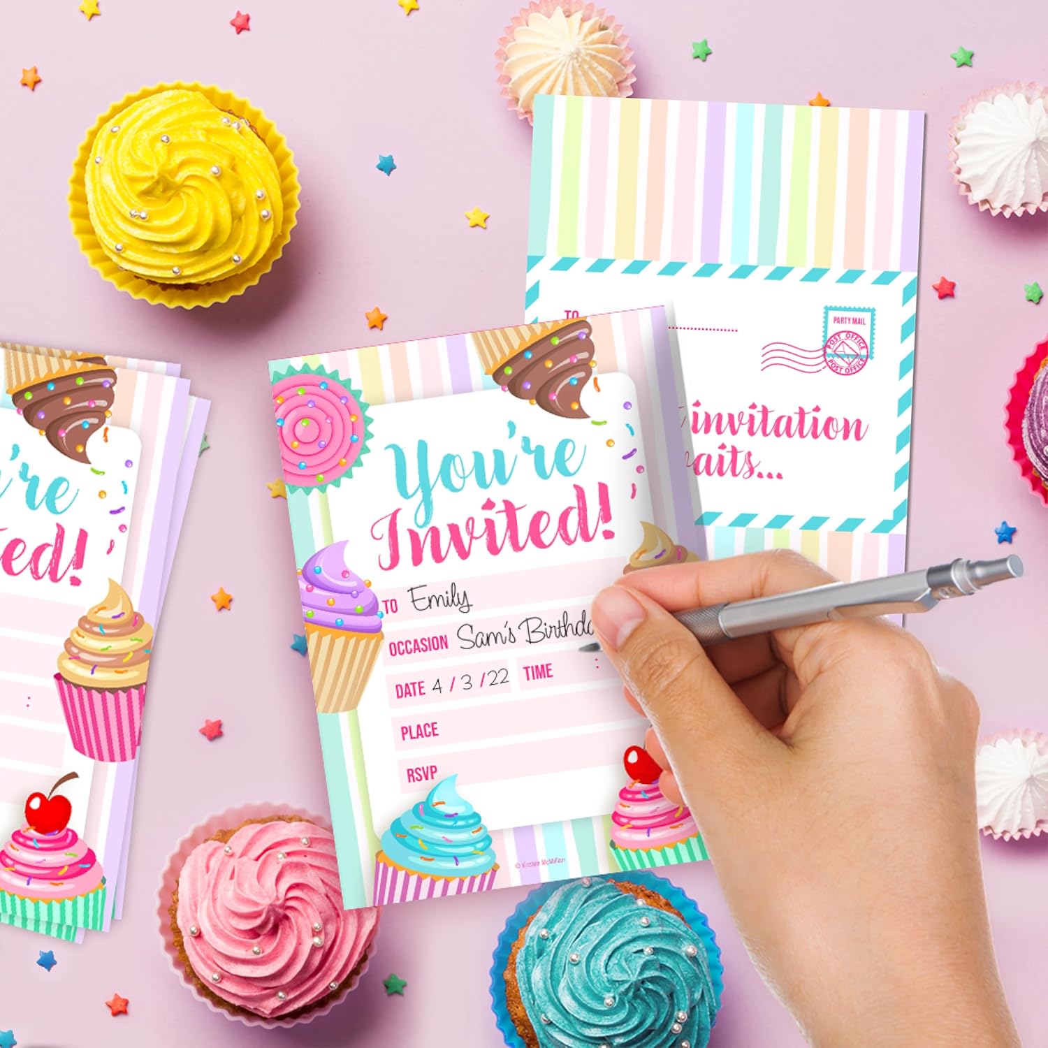 Inviti di compleanno per bambini: confezione da 36 inviti per feste di dimensioni 145 x 105 mm. Inviti per feste per ragazze e ragazzi. Biglietto di alta qualità: ogni invito per feste è stampato su carta di seta da 250 g/m² per una bella finitura. Finitura non rivestita per consentire la scrittura con quasi tutte le penne. Prodotto nel Regno Unito: progettato, stampato e confezionato nel Regno Unito. Inviti per feste: progettati da Kirsten McMillan questi eleganti inviti sono perfetti per ragazze e ragazzi e adulti. Vuoto sul retro: consente di inserire qualsiasi informazione aggiuntiva che amici o genitori devono sapere sulla festa sul retro dell'invito.