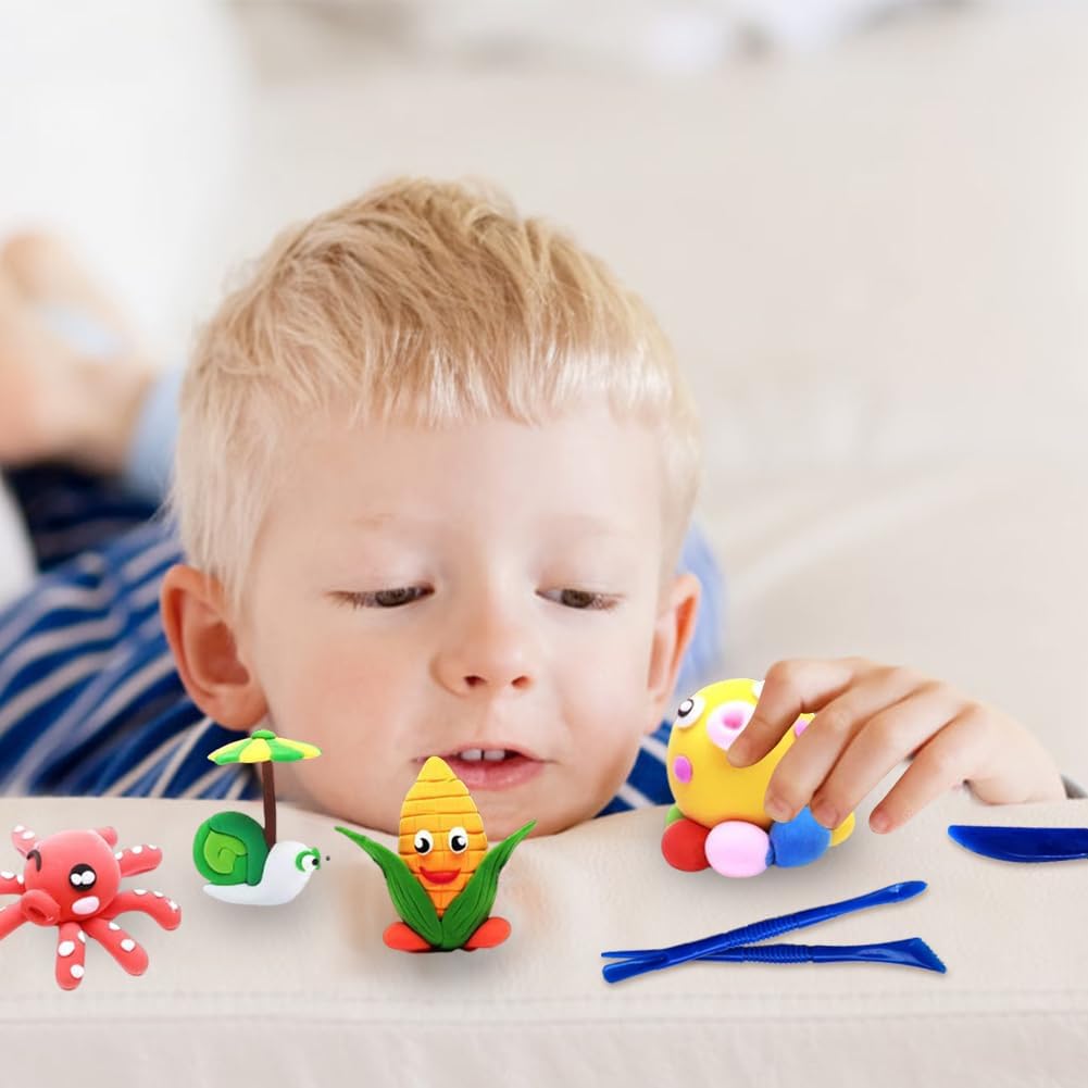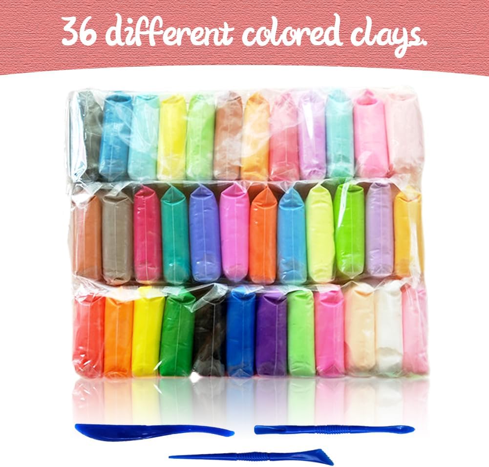 Set di argilla di grande valore: Questo kit di argilla secca all'aria viene fornito in 36 colori diversi modellando argilla, 3 strumenti di scultura. Questo composto di stampaggio è super morbido, ultra leggero, non appiccicoso, terrà i tuoi bambini occupati per alcune ore, che è stata una grande esperienza. Materiale sicuro: L'argilla modellante artigianale per i bambini è atossica, soddisfa rigorosamente gli standard e i requisiti europei di sicurezza dei giocattoli. L'argilla viene conservata in sacchetti di plastica trasparenti e sigillati che ne impediscono l'essiccazione eccessiva. Dopo ogni utilizzo, si prega di utilizzare il sacchetto per preservare il suono. Facile da giocare: L'argilla è morbida e liscia, quindi si può facilmente modellare. L'aria naturale asciuga rapidamente e l'argilla può richiedere 24 ore per indurirsi completamente. Non deve essere cotto. Dopo il raffreddamento, può essere lucidato, forato e intagliato. È facile creare il tuo stile preferito Incoraggiare la creatività: Kids Knead Set è adatto per principianti e bambini per creare piccoli ornamenti, modelli animali, personaggi ecc. da produrre. Può aiutare i bambini a imparare e distinguere i colori, migliorare l'immaginazione e le abilità pratiche dei bambini. Ottenete il vostro kit: Se il vostro prodotto non funziona correttamente, vi preghiamo di contattarci per un servizio.