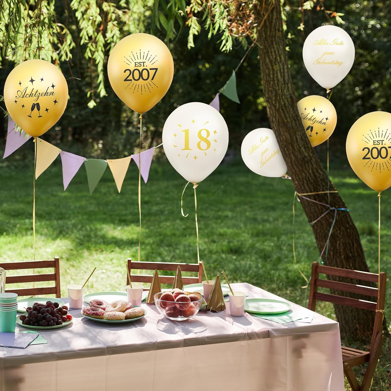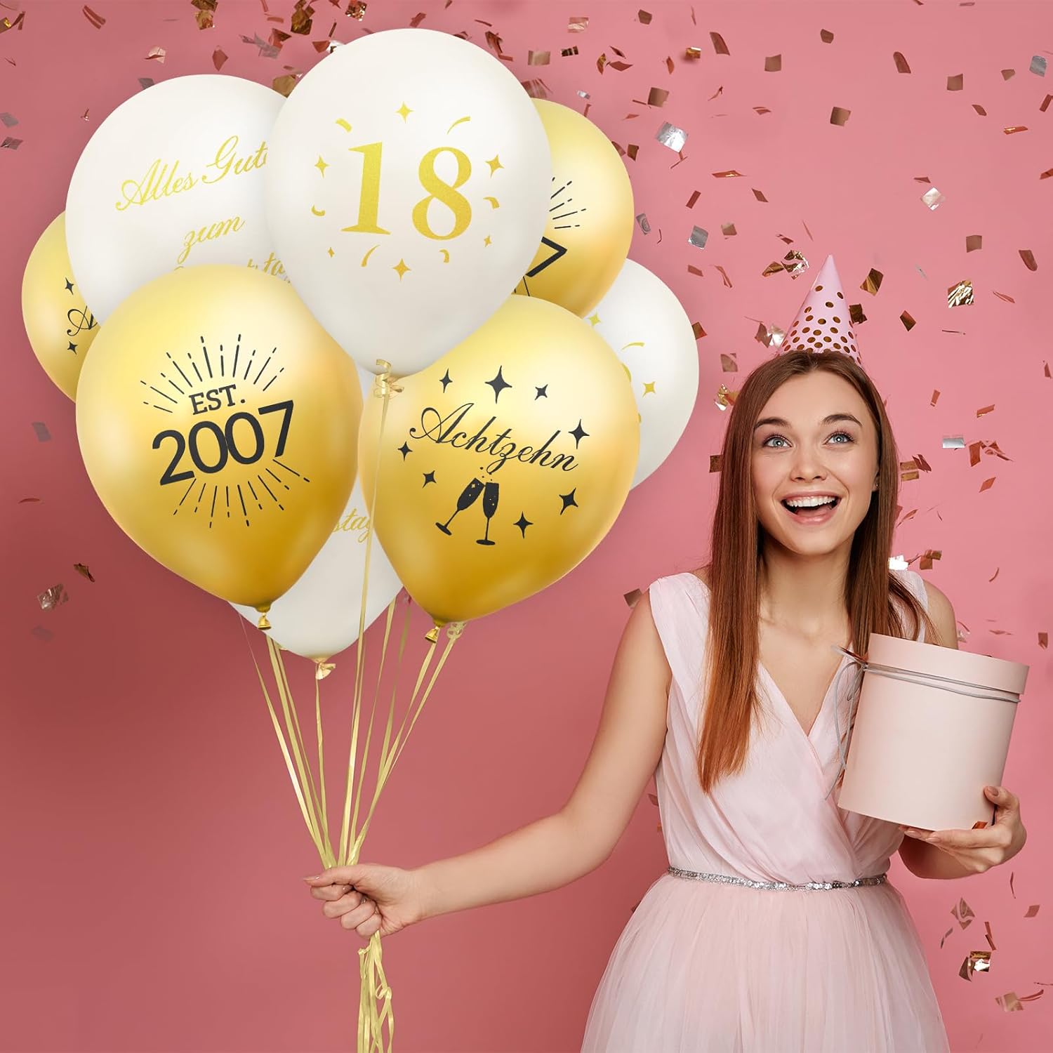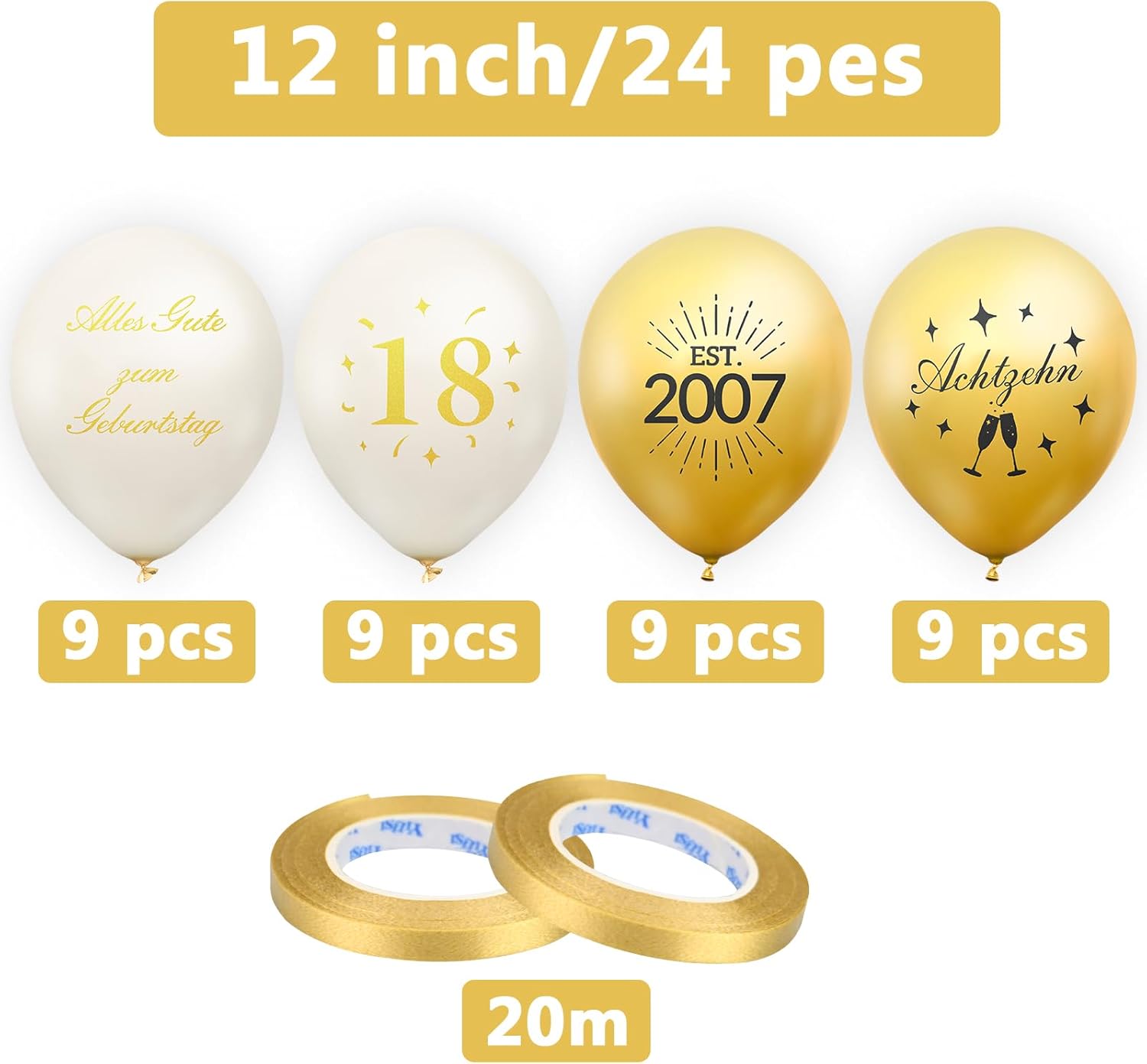 Dimensioni: il palloncino è lungo 12 pollici quando gonfiato. Non gonfiare troppo. Decorazione per 18° compleanno: i nostri palloncini per il 18° compleanno per uomini e donne includono un palloncino di compleanno da 36 pezzi e 2 rotoli di nastro in oro da 10 metri. Materiale: realizzato in lattice, sicuro e atossico. Puoi goderti una festa a sorpresa sicura. Varie decorazioni per feste: oro bianco, oro verde avocado, oro nero ti offrono diverse esperienze visive, puoi scegliere il tuo colore preferito, molto adatto per uomini e donne al 40° Festa di compleanno. Modello: 9 pezzi per ogni modello, 18 + buon compleanno + est. 2007 + diciotto anni.