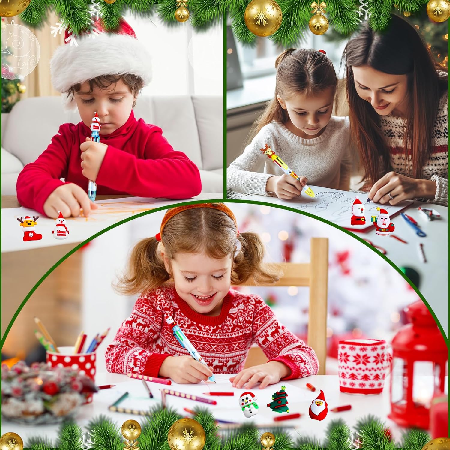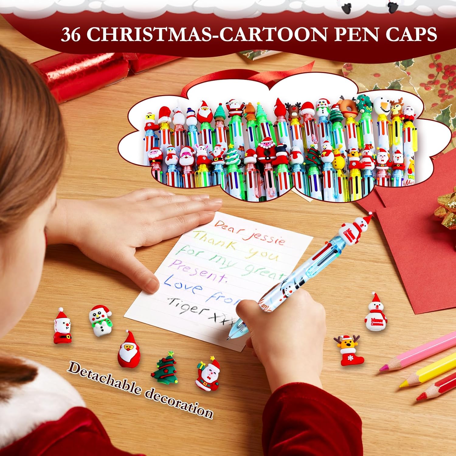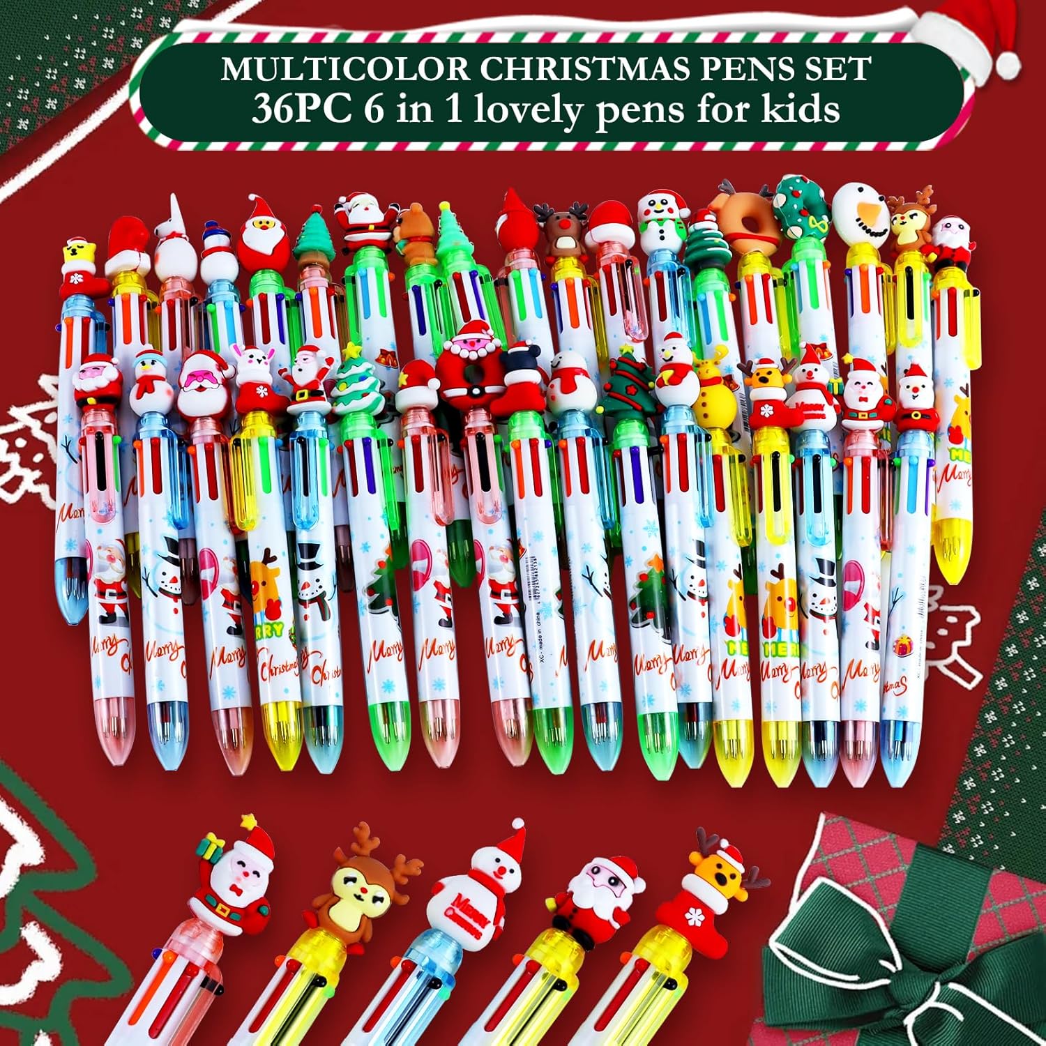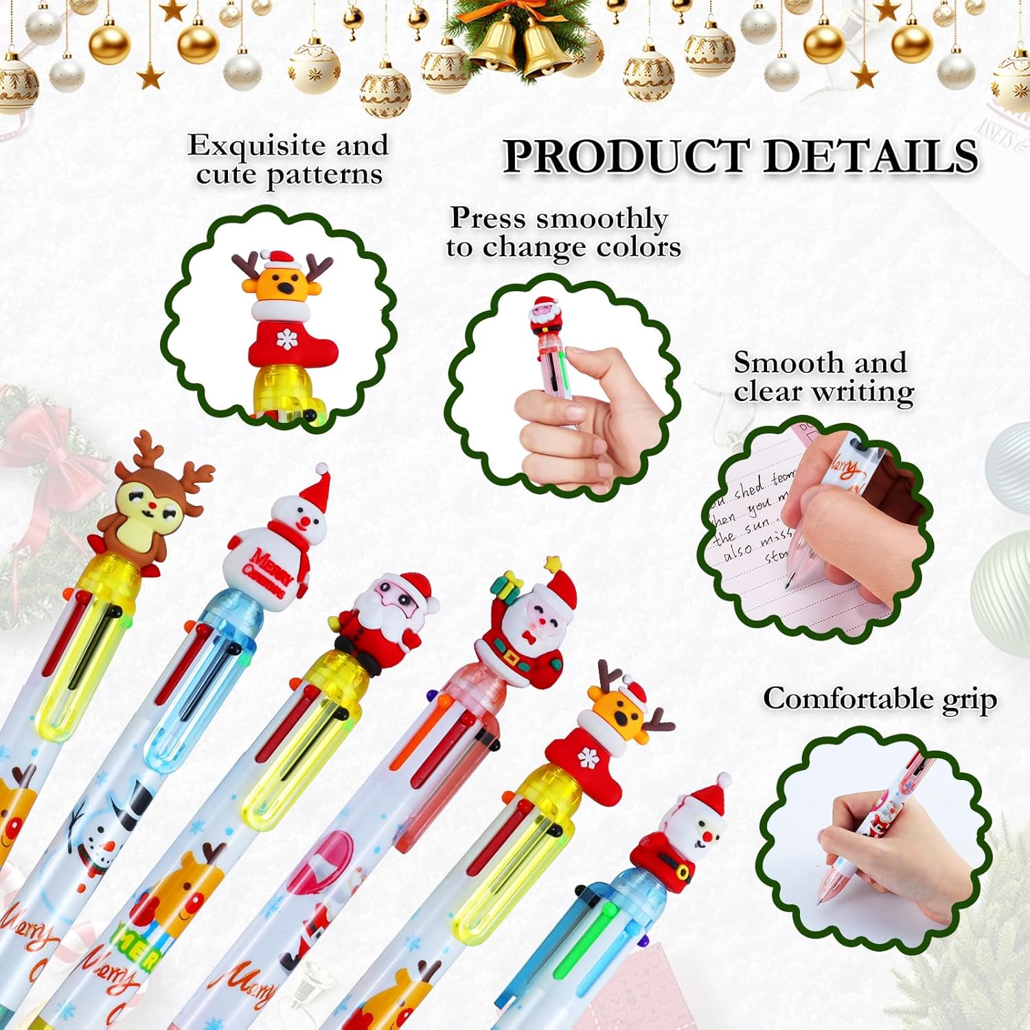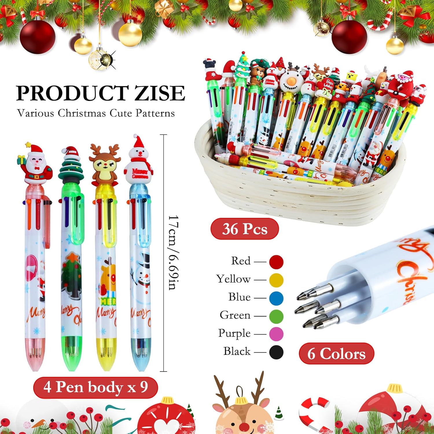 Set di Penne Natalizie Multicolore: Riceverai 36 penne a sfera retrattili con 6 colori diversi, decorate con 4 classici motivi natalizi: pupazzi di neve, renne, alberi di natale e babbo natale, 9 pezzi di ogni modello. La punta della penna a sfera è un disegno arioso carino cartolina di Natale che può essere utilizzato come ornamento di natale. Quantità e stili sufficienti per soddisfare i tuoi usi quotidiani e sostituirli. Un design carino e festoso, perfetto come regalo di natale per i bambini Scrittura Fluida e Senza Problemi: Le nostre penne colorate hanno una punta da 0,5 mm che garantisce una scrittura liscia e linee vivide e non macchiano il retro del foglio. Ogni penna include 6 colori: nero, blu, rosso, arancione, viola, verde, design retrattile, può essere utilizzata facilmente premendo il pulsante dell'inchiostro selezionato, non sbiadisce facilmente. L'impugnatura ergonomica è molto adatta per le mani e previene l'affaticamento, anche se stai scrivendo da molto tempo Materiale di Alta Qualità e Comfort: Le decorazioni natalizie sulle penne a sfera retrattili sono realizzate in silicone, morbido e inodore, il corpo della penna è realizzato in materiale plastico, non facile da rompere, liscio e leggero, può essere applicato a lungo, queste penne natalizie sono sicure per i bambini e durevoli nel tempo. Piccolo e portatile, facile da trasportare, risparmia spazio, con una clip da tasca sulla parte superiore, può essere agganciato ovunque: zaini, portafogli, ecc Tema Natalizio: Il design adorabile e i colori vivaci possono attirare molto i bambini, ogni penna aggiunge un tocco di gioia alle festività, ideale per accessori per feste natalizie. Queste penne sono decorate con simpatici disegni a tema natalizio come babbo natale, pupazzo di neve, campanelle, che rendono la tua penna più speciale. Molto adatto per l'uso quotidiano in case, aule, uffici, ecc. Costituiscono un buon incentivo ad amare la scuola, ma, soprattutto, per divertirsi scrivendo Regalo Perfetto per Ogni Occasione: Questo set di penne multicolore ideali come accessori per feste natalizie e perfette per creare un'atmosfera festosa. il design carino e i colori vivaci possono piacere a molte persone, è una buona scelta per decorare la tua festa, casa, scuola, ufficio e altre scene a natale. Un regalo di natale perfetto per famiglia, bambini e amici, ideale per la scrittura quotidiana, la pittura, il disegno, i graffiti, le firme, la creazione di biglietti di auguri, ecc
