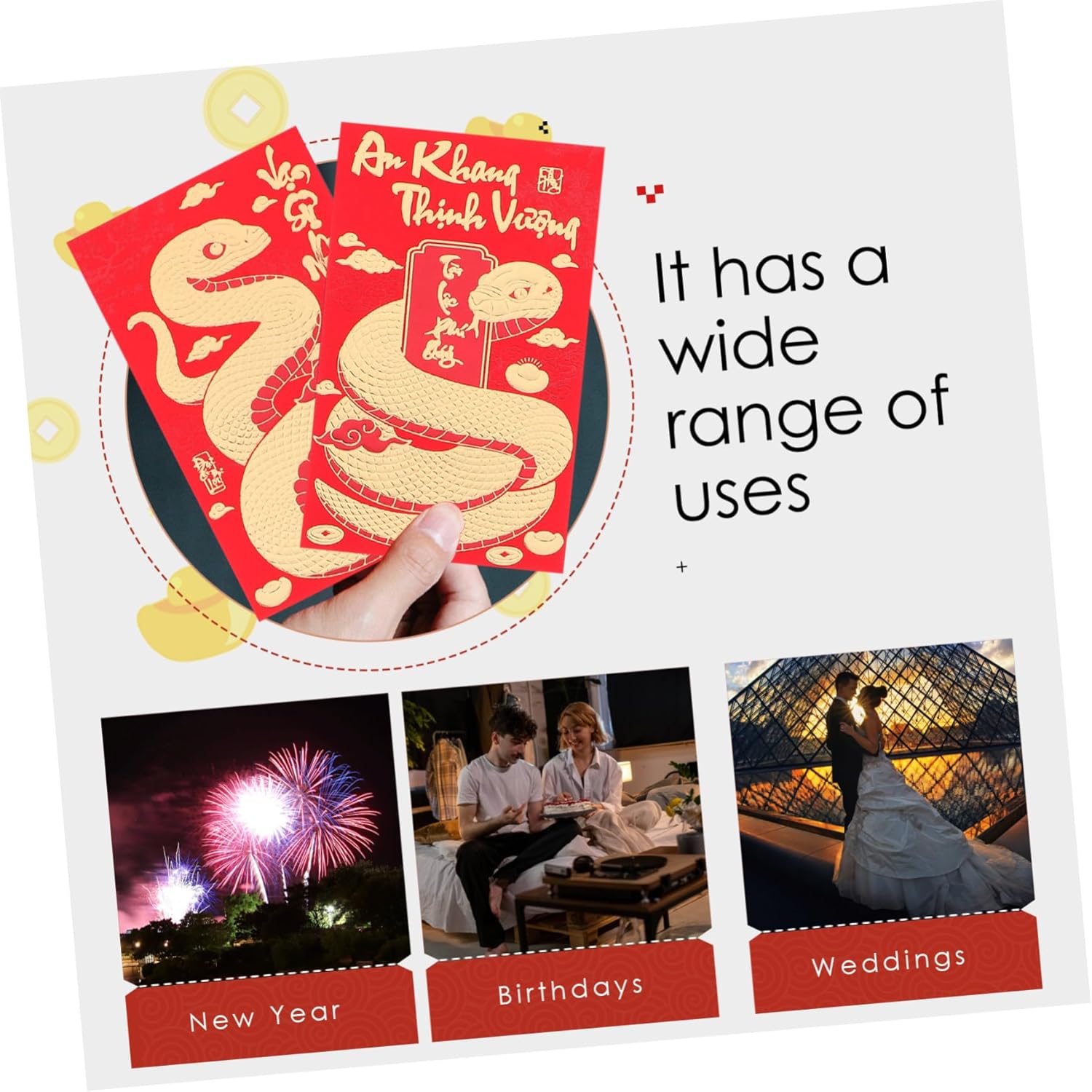 Busta : riceverai abbastanza buste rosse cinesi, possono essere sufficienti per un periodo , busta per pacchetti Busta 2025, adatta per il capodanno , compleanni, matrimoni e qualsiasi celebrazione in cui vengono soldi, busta per contanti Busta 2025: il sulla parte anteriore ogni busta simboleggia i migliori e augura al destinatario fortuna, prosperità, , felicità, busta dell'anno del serpente Tasche rosse: abbinate a colori vivaci, molto creative e festive, sono dei bei pacchetti denaro per , buste rosse per il capodanno Buste tascabili rosse: con design in , puoi inviarle come scelta per la tua famiglia, , , colleghi per impressionarli e mostrare meglio la tua preoccupazione, decorazioni per il capodanno
