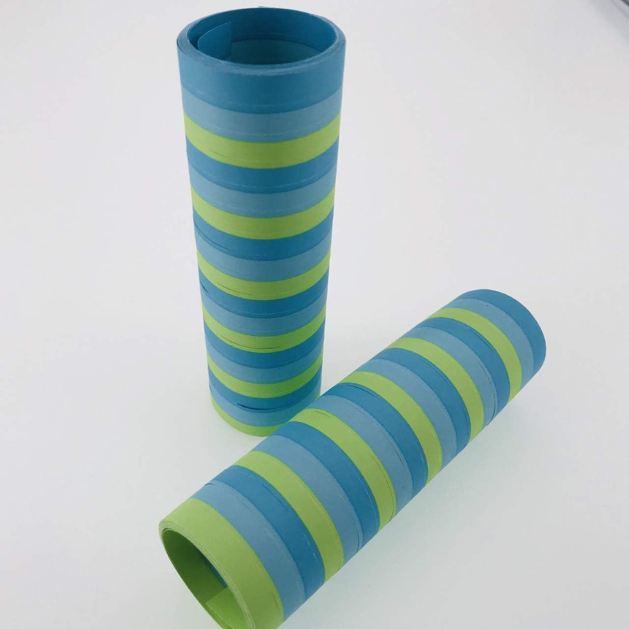36 stelle filanti *BLU VERDE* come decorazione per la festa del primo maschio o il primo compleanno del maschio ✔ Lunghezza: 4 m; Larghezza: 7 mm; Materiale: carta stampata colorata e LDPE ✔ Tre rotoli singoli, ben confezionati e termoretraibili ✔ Colori: 12x blu medio, 12x azzurro, 12x verde (informazioni approssimative) ✔ Produttore europeo ✔
