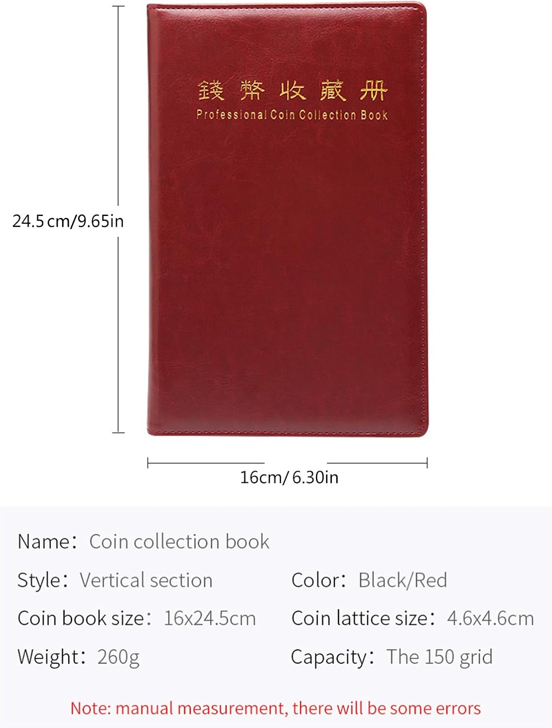 Questo album da collezione di monete è realizzato in pelle PU, resistente all'acqua e può servire a lungo. Le griglie per monete sono dotate di ala pieghevole, che può evitare che la moneta cada, che può proteggere bene la moneta Ideale per raccogliere monete, medaglie, gettoni, distintivi, centesimi, quarti, francobolli e molto altro ancora. Regalo di festa per amici, familiari, bambini e collezionisti di monete Ogni griglia per monete misura 4,6 x 4,6 cm. Adatto per la maggior parte delle monete con diametro di 4,2 cm Album porta monete in pelle PU, ogni libro da collezione è dotato di 150 tasche per raccogliere monete. Spazio sufficiente per riporre monete e badge Il nostro organizer per album di monete è ideale per i collezionisti; la pagina interna è una tasca trasparente, per apprezzare e trovare la moneta
