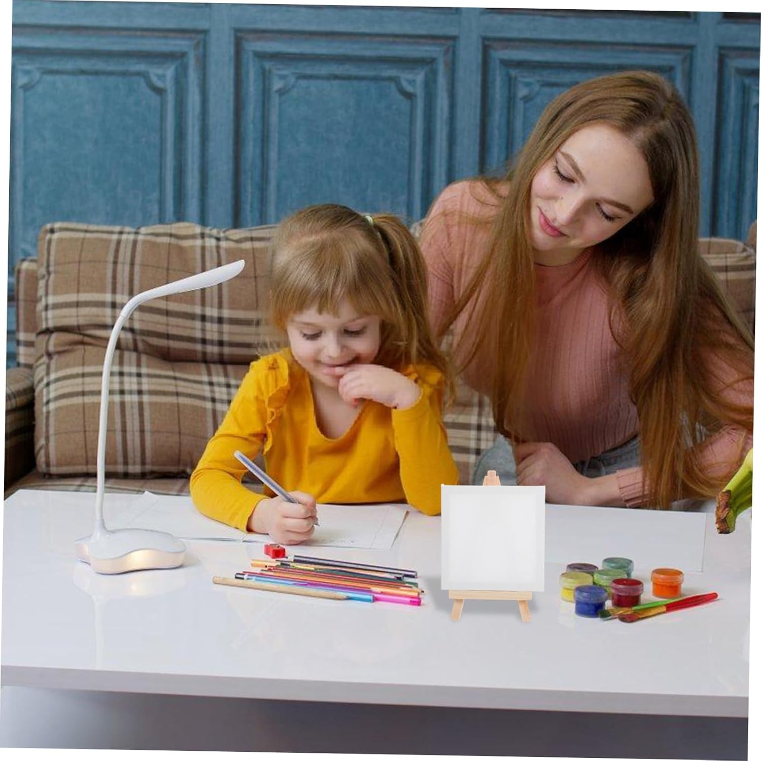 Cavalletto artistico: può trattenere la vernice e non restringe affatto, e consente alla tela di mantenere bene la vernice e la lucentezza, accessorio artigianale Cavalletto in tela: la semplice modellazione di pannelli in tela di forma quadrata rende i tuoi lavori di pittura finiti più artistici e attraenti, mini Piccola tela da pittura con cavalletto: adatta a tutti i tipi di materiali pittorici, come olio, acrilico, acquerello, tempera e pastelli, adorabile cornice per pittura Tela per pittura fai da te realizzata: durante il processo di pittura fai da te, puoi rilassarti e aumentare la tua creatività e immaginazione, piccola staffa per pittura Piccolo cavalletto fai da te realizzato: costruito per praticità e stabilità, è la scelta per studenti e hobbisti, tela da pittura