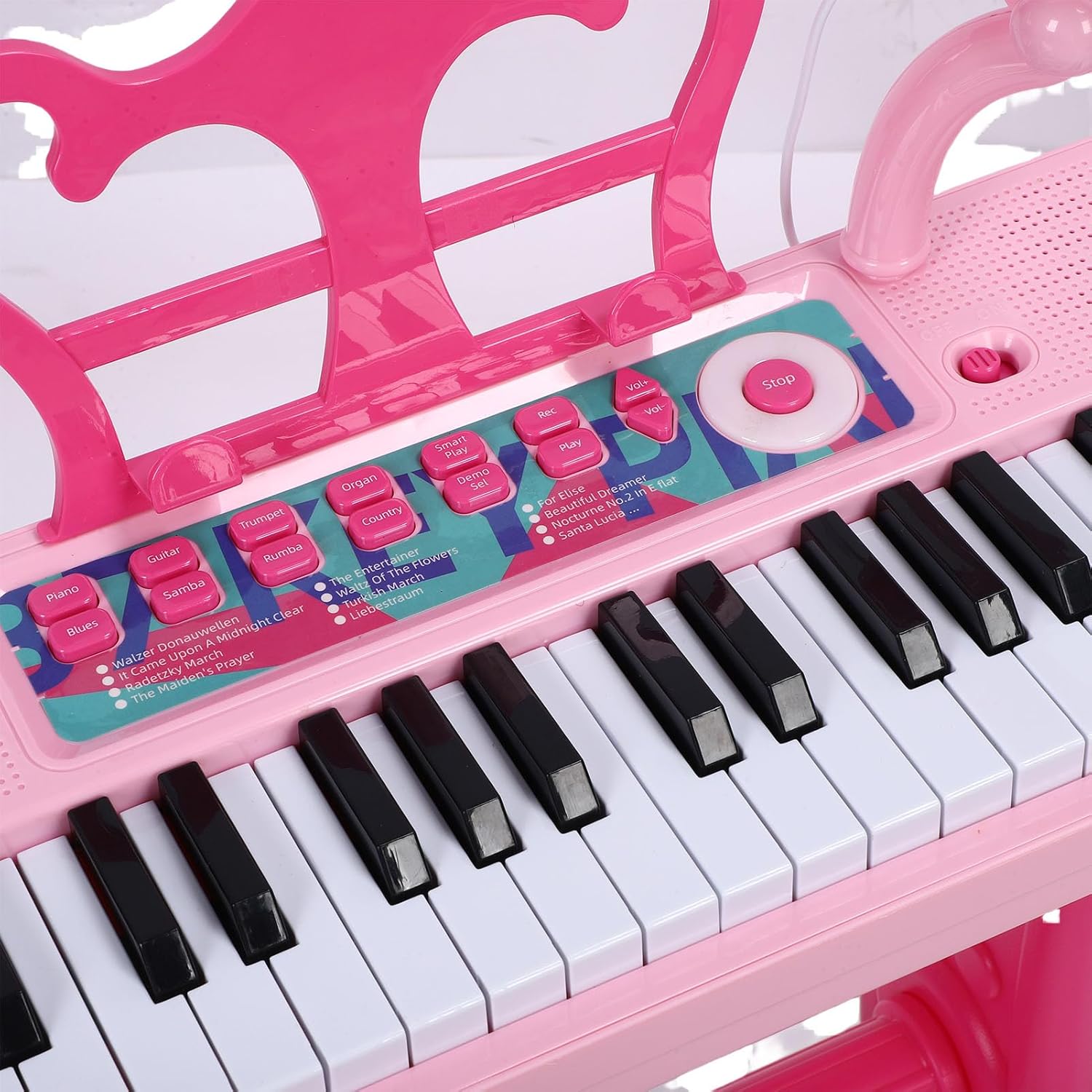 [Esperienza musicale realistica] Dispone di 37 chiavi, 22 canzoni dimostrative, 4 ritmi e 4 toni di strumenti per esplorare i fondamenti della musica con i bambini. [Qualità del suono arricchita] dotato di due altoparlanti per il suono stereo ricco, i controlli del volume regolano la velocità di riproduzione per l'esperienza audio personalizzata. [Apprendimento avanzato] include microfono funzionante e cavo di input audio per i bambini per cantare e collegare dispositivi esterni, aiutando a coltivare il senso ritmo e la coordinazione delle . [Development cerebrale] supporta lo sviluppo del cervello e l'espressione creativa attraverso il gioco, ideale per i 3+ per godersi sessioni musicali sedute a casa. [Set musicale completo] viene fornito con sgabello robusto e un supporto musicale corretta postura, perfetta per i bambini per sviluppare l'interesse musicale precoce.