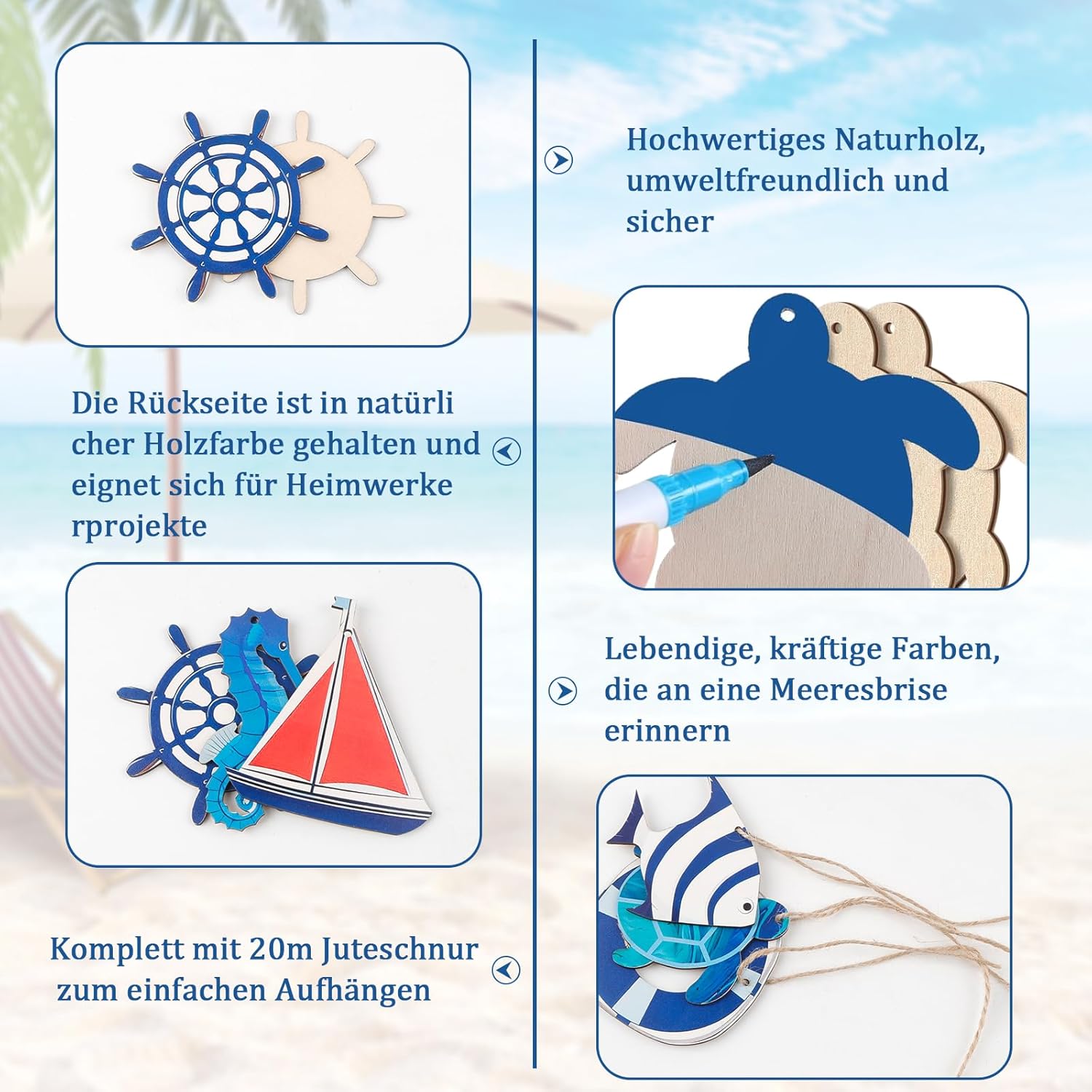Ich hatte mich sehr auf dieses Set gefreut. Leider bin ich nun ziemlich enttäuscht: Die Motive an sich sind sehr schön bemalt in kräftigen Farben. Die Formen sind klar und präzise. ABER: Die Anhänger sind nur auf einer Seite bemalt. Die andere ist holzfarben, unbemalt. Ich kann jetzt meine Deko Idee gar nicht damit umsetzen. Ich habe mir die ganze Produkt Seite im Internet nochmal angeschaut, ich finde nirgends ein Hinweis darauf.