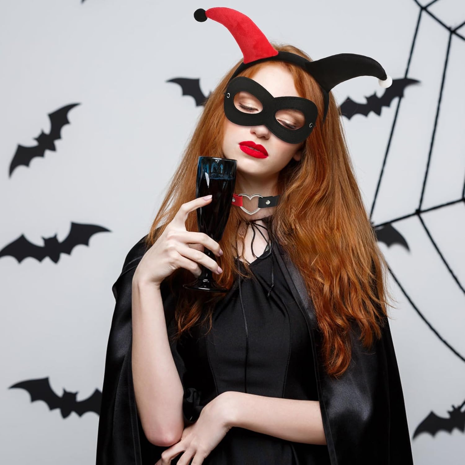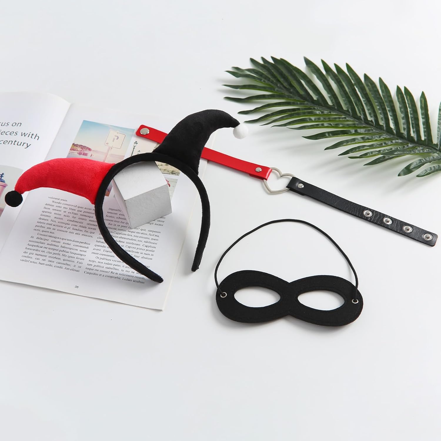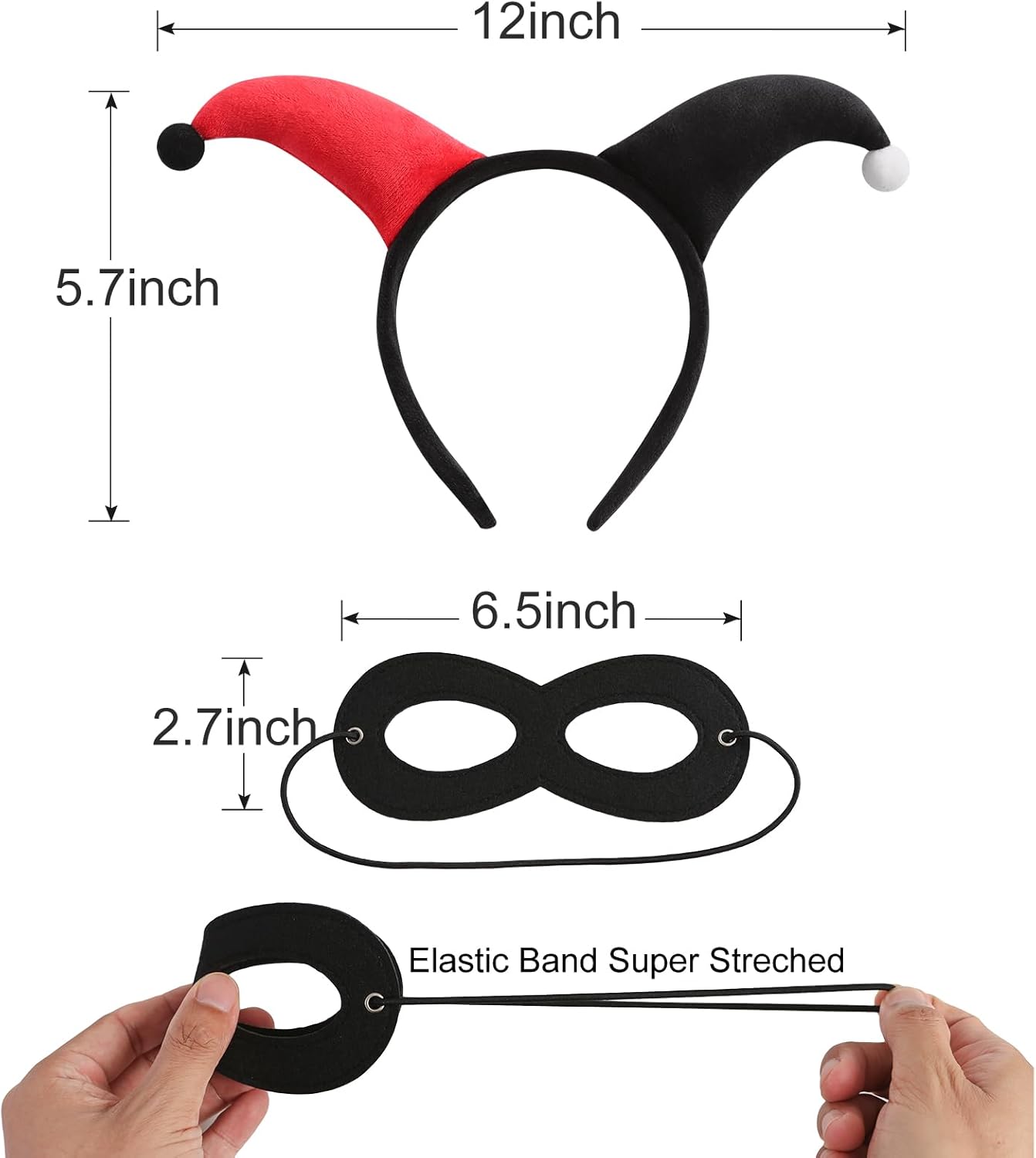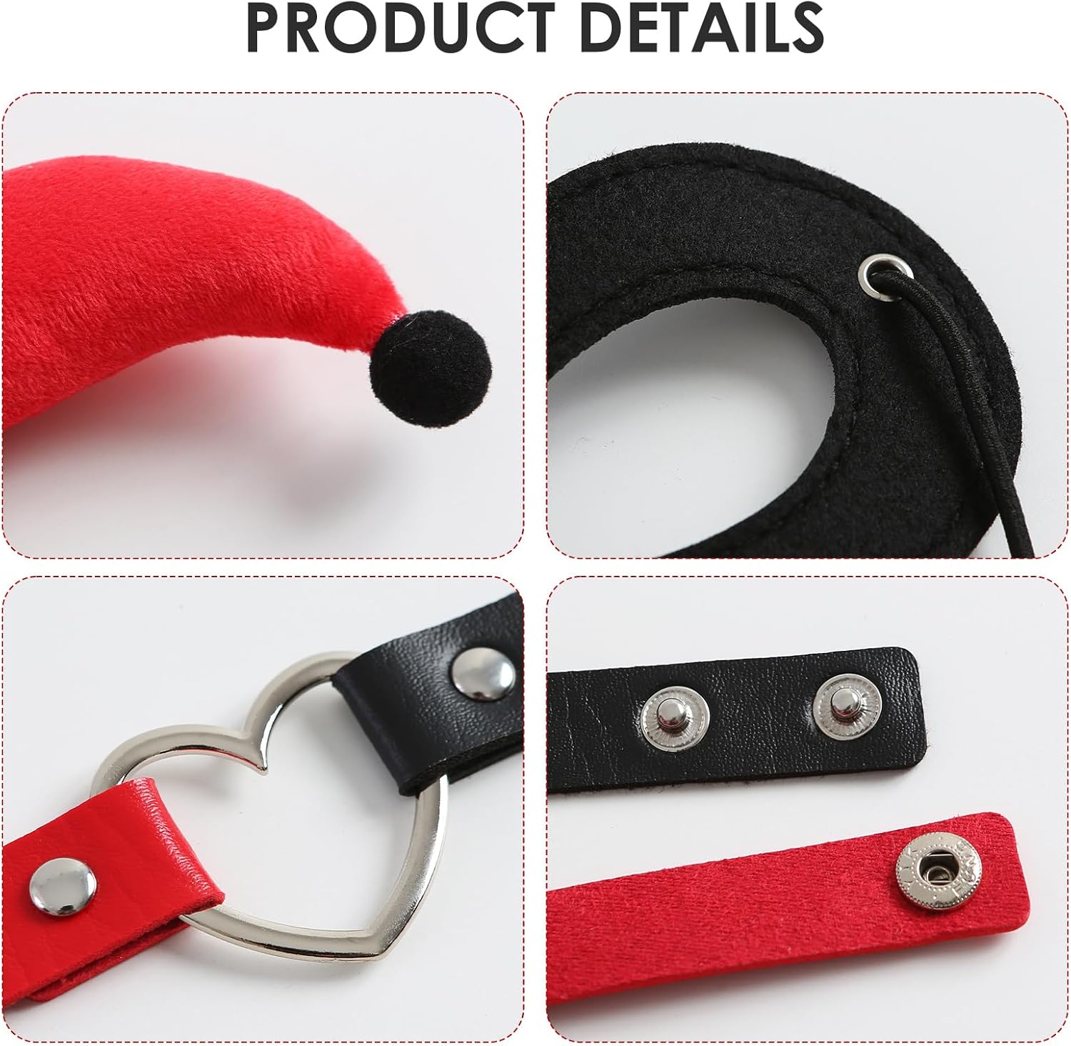 La confezione include 1 fascia da clown rossa e nera, 1 girocollo a forma di cuore + 1 maschera nera per gli occhi, perfetta per vestire Halloween. Perfetto per costume da jolly di Halloween, cosplay, feste a tema e anche un'ottima scelta regalo per gli amici che amano i giochi di ruolo.