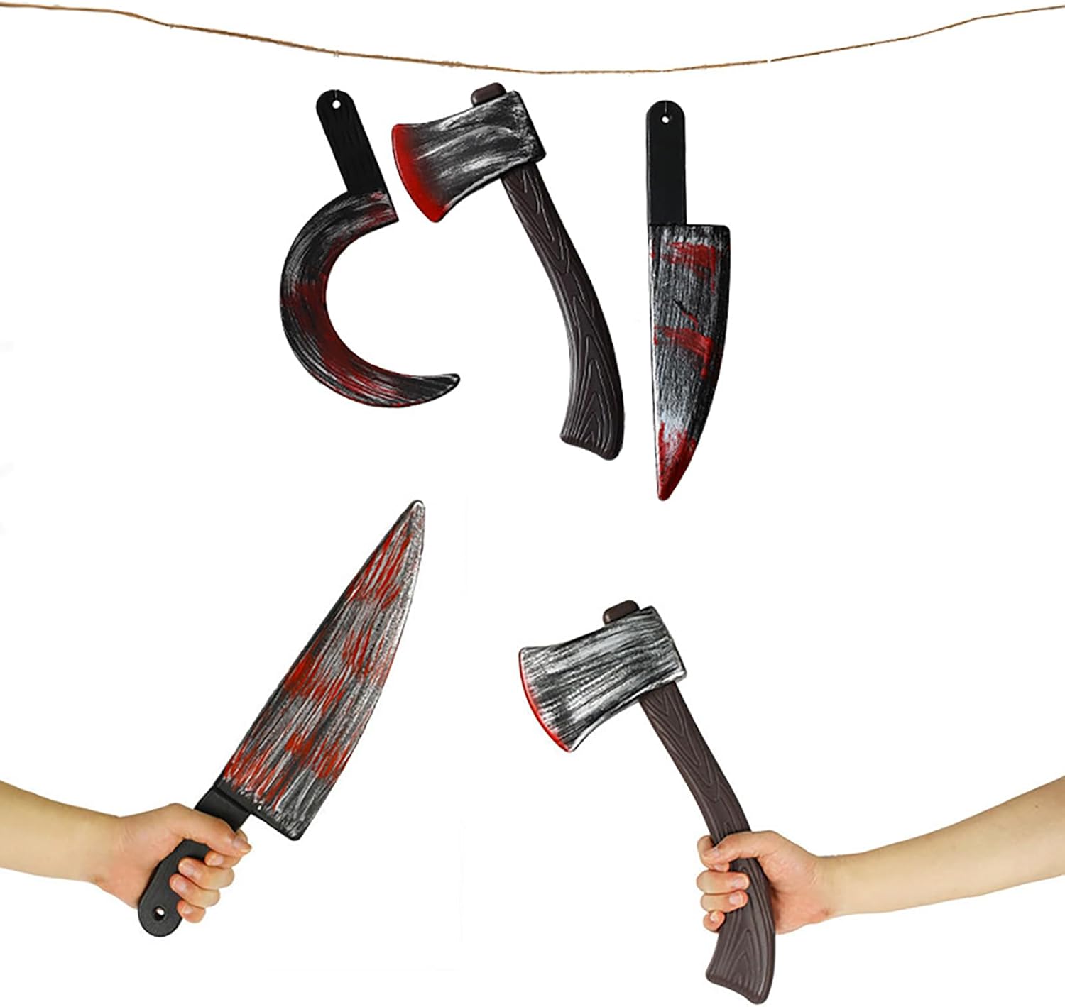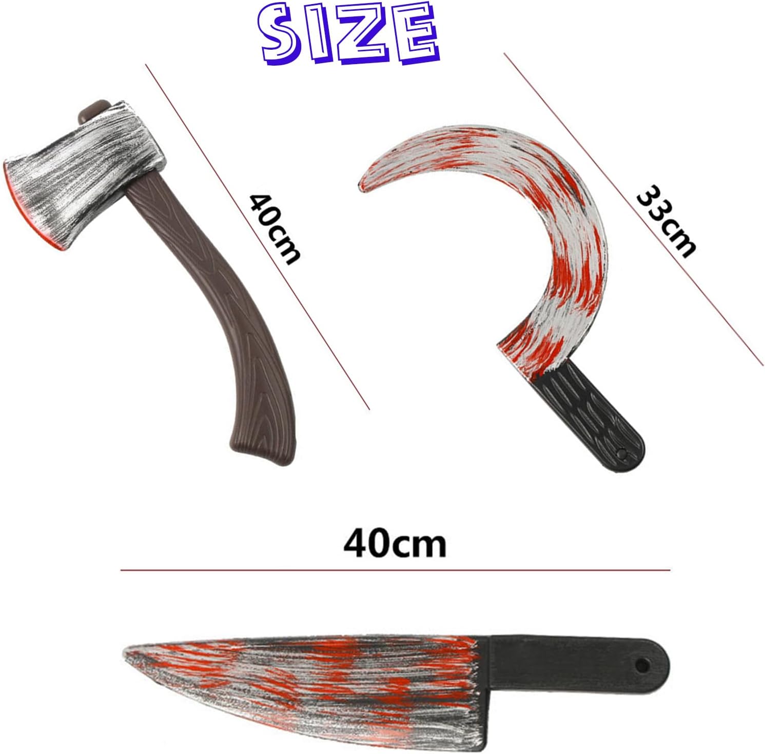 【Puntelli horror di Halloween】 Scimitarra macchiata di sangue, ascia macchiata di sangue, coltello insanguinato. Perfetto per Halloween, feste a tema, carnevale. 【Accessori per costumi di Halloween】 Con questi accessori, il tuo travestimento di Halloween ottiene l'effetto giusto. Così equipaggiato, sei sicuro di spaventare l'uno o l'altro. 【Perfect Costume Weapon Toy】 Ideale per produzioni teatrali, feste di Halloween, feste in maschera, travestimenti e altro ancora. 【Ornamento unico】 Il giocattolo della pistola porterà un'attenzione impressionante a casa e in ufficio. Posizionato in un angolo, attirerà immediatamente l'attenzione dei tuoi ospiti. Ideale per produzioni teatrali, feste di Halloween, feste in maschera, travestimenti e altro ancora. 【Materiali】 L'Halloween in plastica, leggero, sicuro e affidabile.