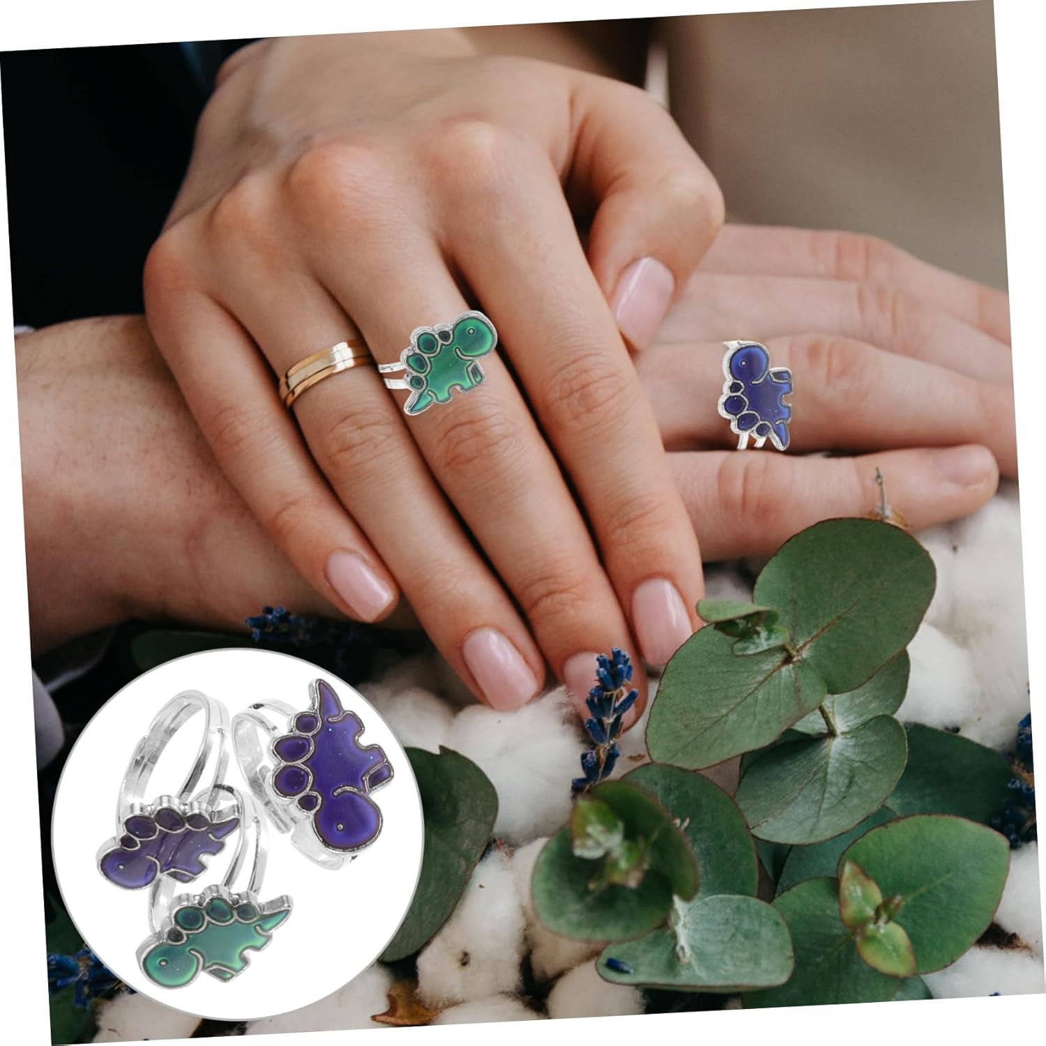 dei pacchetti 3 x Anelli che cambiano Caratteristiche -Dimensioni: 2,00X2,00X1,00 cm/0,79X0,79X0,39 pollici anello che cambia - : anello dell'umore maschile con colori assortiti -Materiale: anello emozionale da donna in lega ed epossidica - L'anello dell'umore che cambia è adatto per occasioni come lavoro, shopping, feste di compleanno e appuntamenti, ecc. Anello dell'umore a forma di dinosauro. - L'anello aperto a forma di dinosauro è regolabile per adattarsi a persone, compresi adolescenti e adulti. Anche come per loro, anello dell'umore per donne. - L'anello dell'umore che cambia è un gioiello che cambia in base allo stato emotivo di lo indossa. - L'anello dell'umore può rappresentare le tue e la tua personalità attraverso un anello emozionale che cambia alla moda. - L'anello dell'umore è realizzato in resina epossidica e lega, il che lo rende durevole e adatto agli adolescenti. Descrizione della merce anello unisex delle Creativo e originale, adatto per adulti. Anelli da donna Se sei una che desidera cambiare il proprio stile di abbigliamento in base al cambio di stagione, allora il nostro anello dell'umore che cambia è la scelta giusta. Anello da che cambia L'anello dell'umore da donna è leggero e non rompe facilmente, può essere utilizzato a lungo