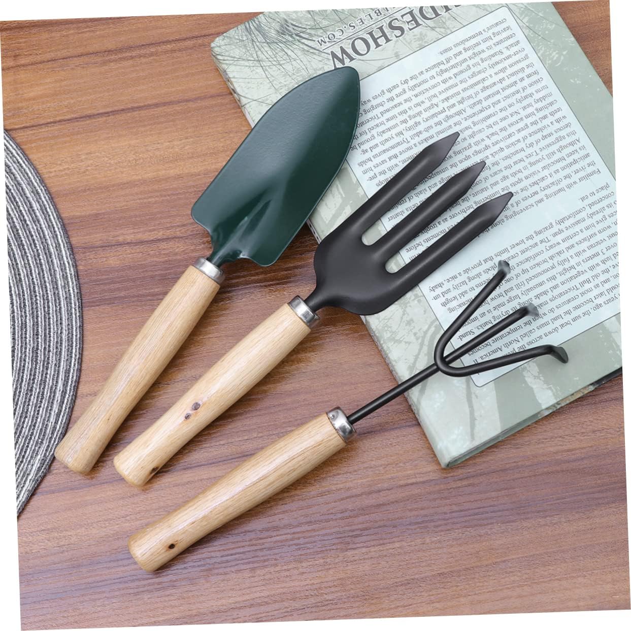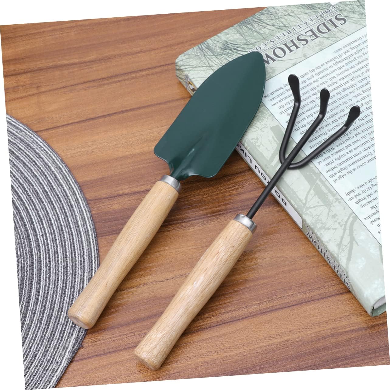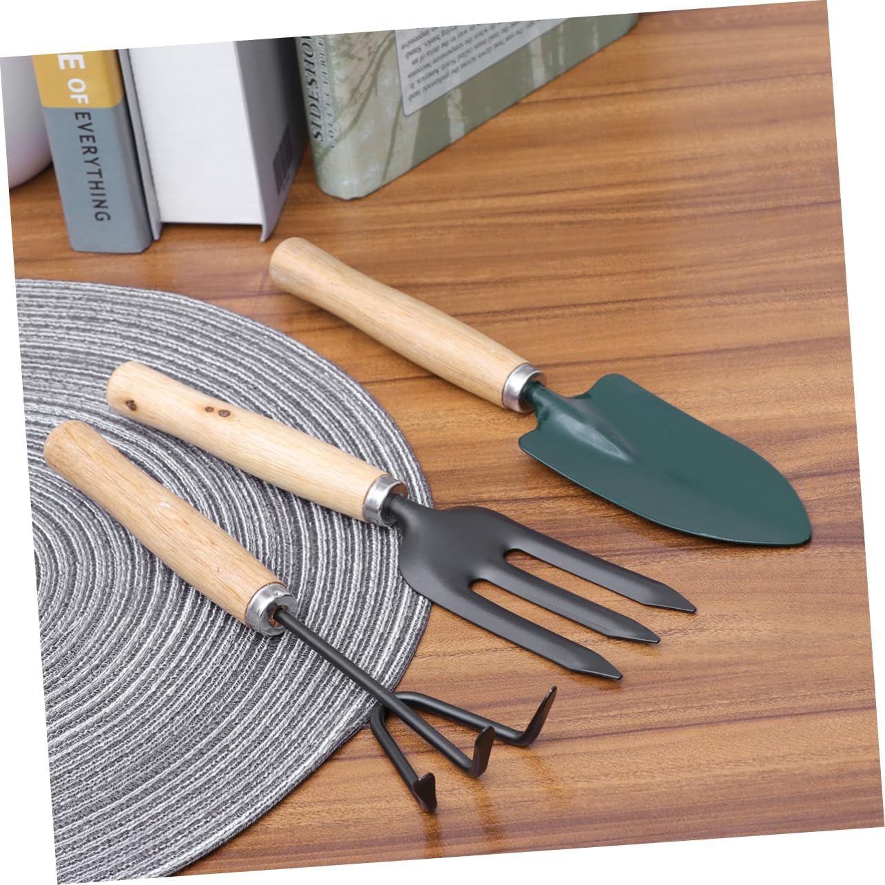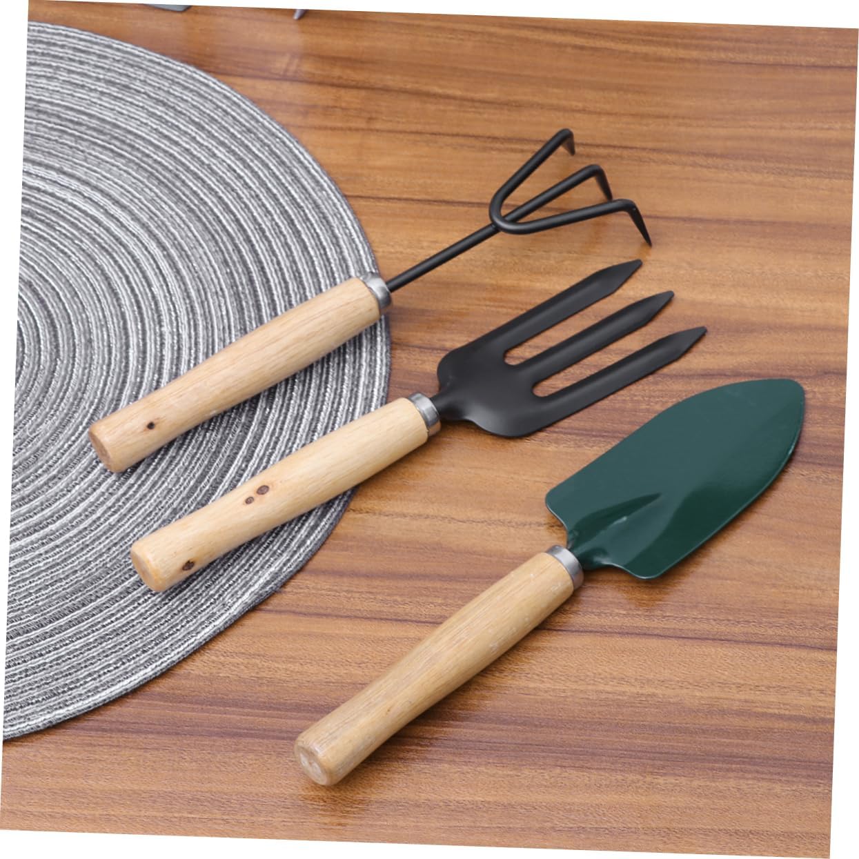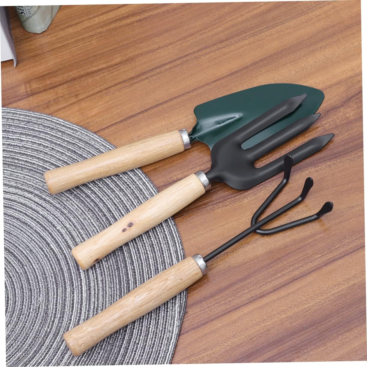 Mini attrezzo da giardino per interni: set di 3 attrezzi da giardino che include una pala da giardinaggio, un rastrello e una cazzuola, resistenti e di alta qualità per un valore duraturo, mini attrezzo da giardinaggio Attrezzi da giardino: i piccoli attrezzi da giardino sono delicati e adatti per piantare bonsai, fiori, piante da appartamento, ecc., mini attrezzi da giardinaggio Mini attrezzo da giardinaggio: i mini attrezzi da giardinaggio sono leggeri per una facile maneggevolezza e per una varietà di attività tra cui scavare, diserbare, allentare il terreno, arieggiare, trapiantare e altro ancora, attrezzi da giardino Il design migliorato rende il giardinaggio più facile e divertente che mai, perfetto per allenare la tua capacità di lavorare