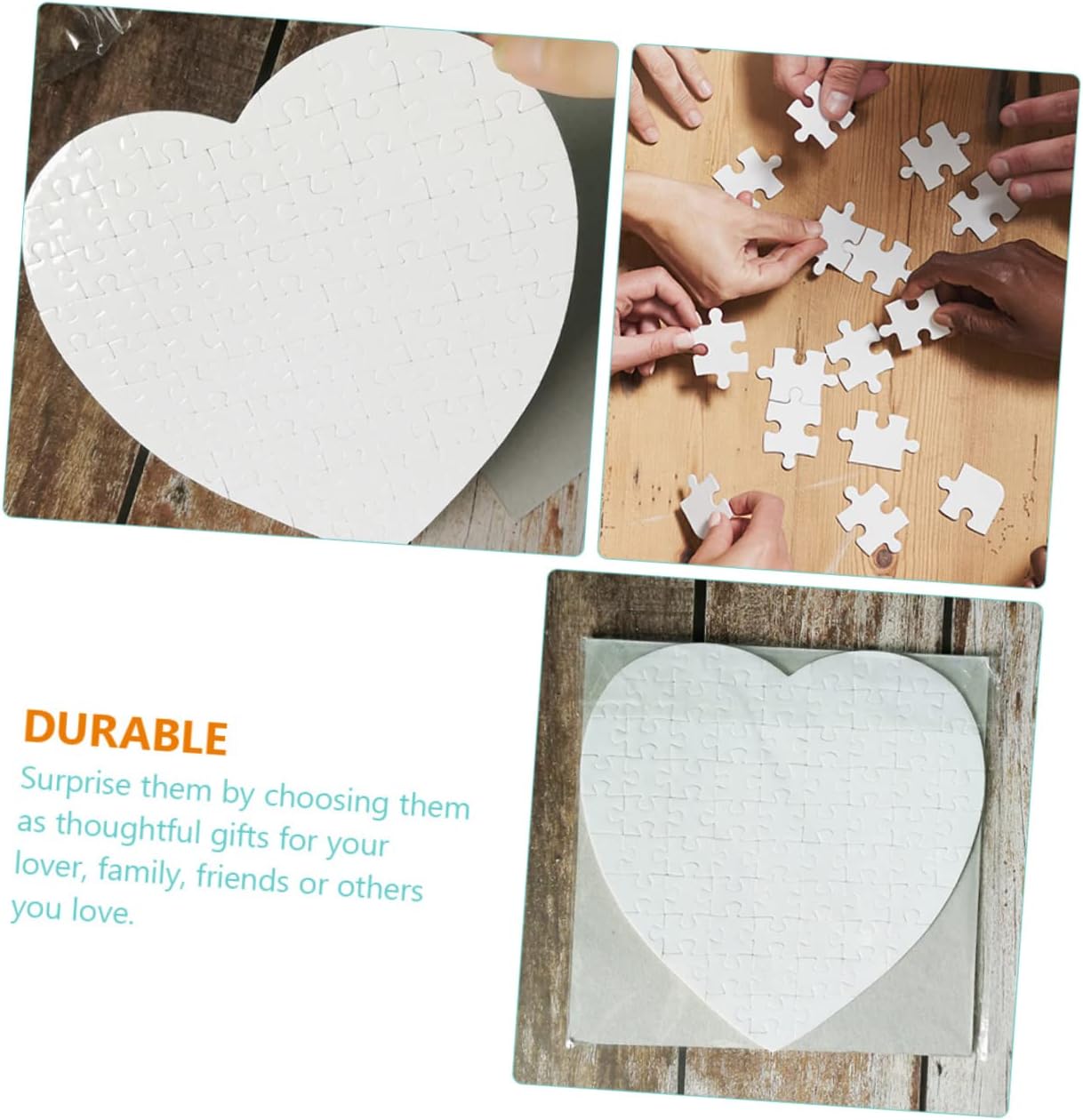 Puzzle vuoto fai da te: il puzzle di carta trasferibile è una opportunità per utilizzare i tuoi puzzle di design per esprimere la tua immaginazione e creatività, giocattolo puzzle fai da te Puzzle trasferibile fai da te: i puzzle bianchi possono portare gioia a un divertimento e possono anche essere inseriti in una borsa come per la festa di compleanno di ragazzi o ragazze, puzzle da dipingere per Puzzle vuoto: adatto per matrimoni, feste, compleanni, inviti e attività in classe o a casa, puzzle di carta vuota Puzzle artigianale con trasferimento termico: il puzzle con trasferimento termico può essere utilizzato per realizzare decorazioni o giocattoli, portando più gioia e divertimento, puzzle fai da te Puzzle trasferibili: i puzzle sono preassemblati e puoi utilizzare pennarelli, vernice e altro per creare il motivo che desideri realizzare, puzzle vuoti