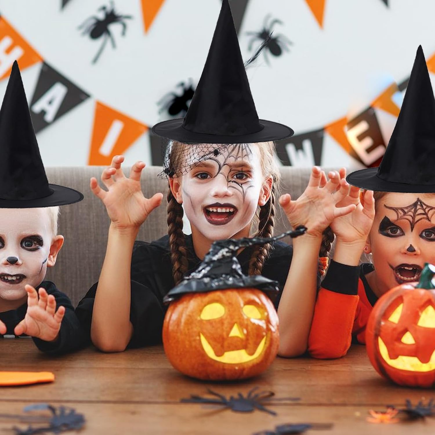 Descrizione prodotto La confezione include: 4 cappelli da strega. Materiale: tessuto Oxford resistente. Colore: nero classico. Taglia unica, adatta sia per adulti che per bambini. Può essere portato a una festa di Halloween con il tuo bambino che indossa questo cappello da strega e può essere un ottimo accessorio per costumi per eventi di Halloween; rendi la tua festa divertente e stupire i tuoi ospiti. Godetevi un meraviglioso momento festivo insieme! Avviso di sicurezza No