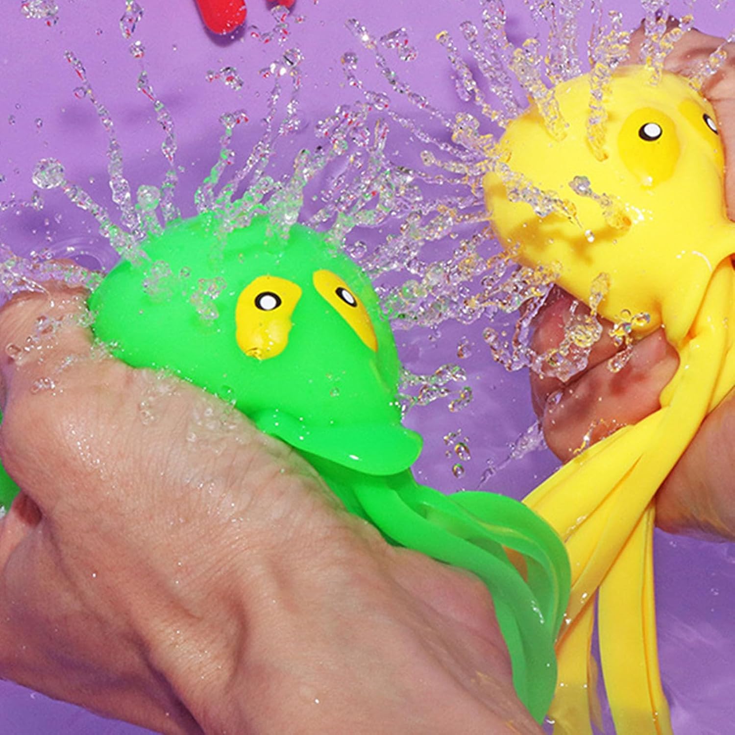 Molteplici applicazioni: include 4 pezzi di carne di inchiostro – Giocattoli per la spiaggia, la vasca da bagno o la piscina per 4 volte il divertimento. Sono molto facili da usare, basta riempire con acqua e lanciare le palline. Spruzzi di divertimento: metti queste palline di calamaro in acqua per una migliore pressione e poi guarda l'acqua dalla testa fuori dal piccolo ugello per divertimento e attrazione. Colori multipli: questi giocattoli a sfera di calamari portano un delizioso divertimento in acqua. Con disegni colorati, i bambini adoreranno i colori azzurro, verde, rosso e giallo per l'attenzione immediata. Materiale sicuro: usiamo gomma completamente innocua con spugna all'interno, per la salute dei bambini. Ogni giocattolo misura 16 cm di altezza e 7 cm di larghezza con graziose braccia morbide. Riutilizzabile: il nucleo del giocattolo da bagno è una spugna con fori nella superficie, quindi puoi immergerlo in acqua e usarlo per creare un giocattolo splash, proprio come un palloncino ad acqua riutilizzabile.