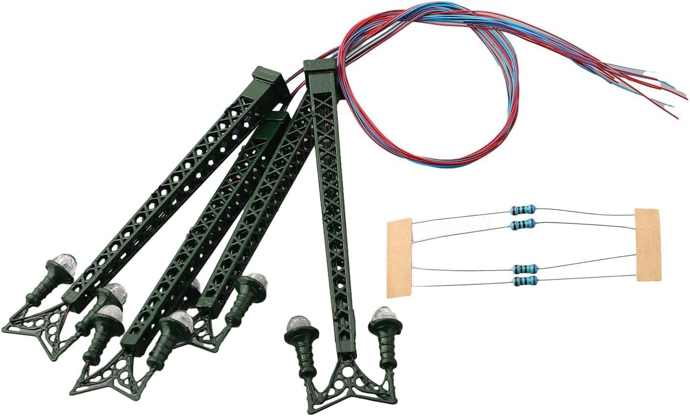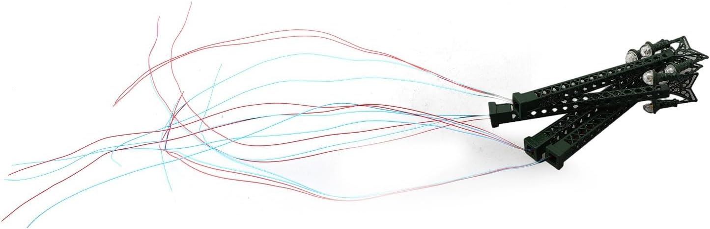 Luci ferroviarie: queste luci a traliccio sono progettate specificamente per i layout di modellini ferroviari, aggiungendo un tocco realistico al tuo mondo in miniatura. LED: realizzate con LED, queste luci offrono un'illuminazione luminosa e affidabile per il tuo paesaggio ferroviario. Tensione adatta: queste lampade sono ottimizzate per l'uso con tensione di 3 V, funzionamento corretto ed evitare danni ai LED. Corrente di funzionamento corretta: per prestazioni ottimali, è importante applicare la corrente di funzionamento corretta di 20 mA a ciascun LED. Scala e materiale: con una scala di 1:160, queste luci sono adatte per modellini ferroviari a calibro N. Sono realizzati in materiale metallico per un uso duraturo.