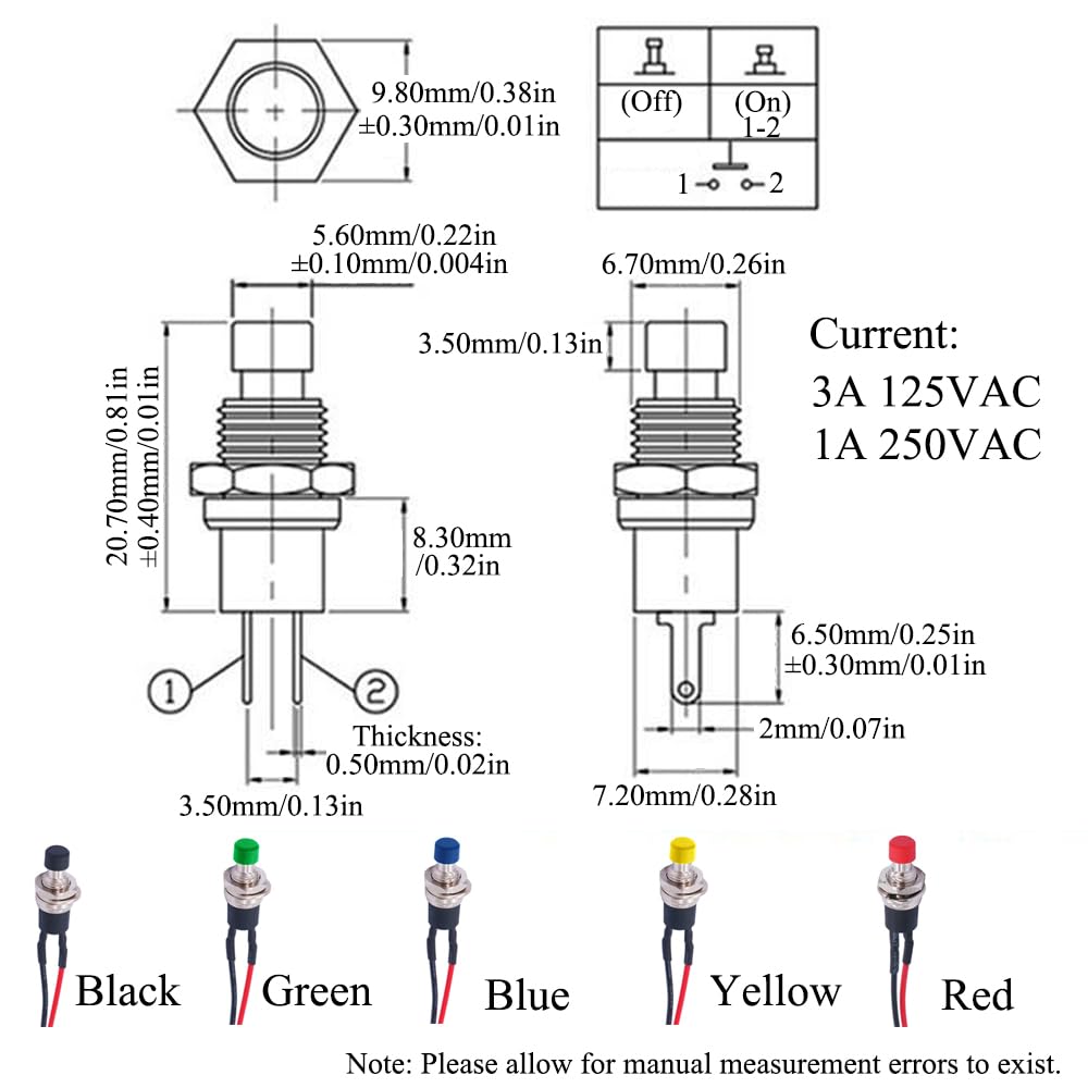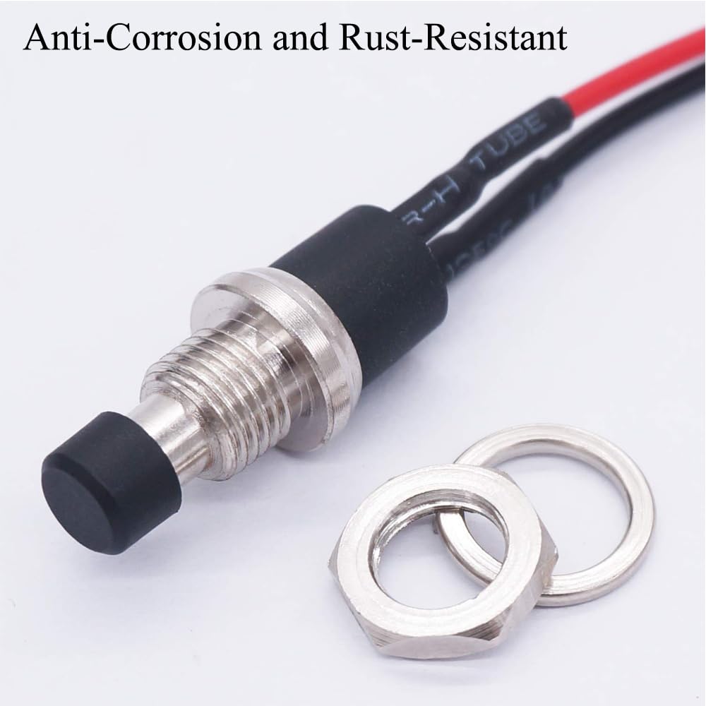 Il guscio è realizzato in materiale PP con buona resistenza all'usura e agli urti e non si rompe facilmente; e la punta in rame è resistente alla corrosione, non arrugginisce facilmente ed è durevole La funzione di auto-reset del pulsante a 2 pin fornisce la funzione di controllo dell'interruttore di base, può accendere e spegnere il circuito e consentire l'avvio e l'arresto del dispositivo Il mini interruttore on/off è compatto e piccolo, adatto per l'installazione in ambienti limitati per soddisfare le esigenze di miniaturizzazione e integrazione Il cavo pre-saldato è lungo 20 cm e la dimensione aperta è di 7 mm, il che facilita l'installazione ed è ampiamente utilizzato nei circuiti di controllo industriali Adatto per interruttore a pressione a clacson, interruttore di emergenza, interruttore a pressione per auto e barche o per tutti i circuiti/dispositivi elettronici fai da te