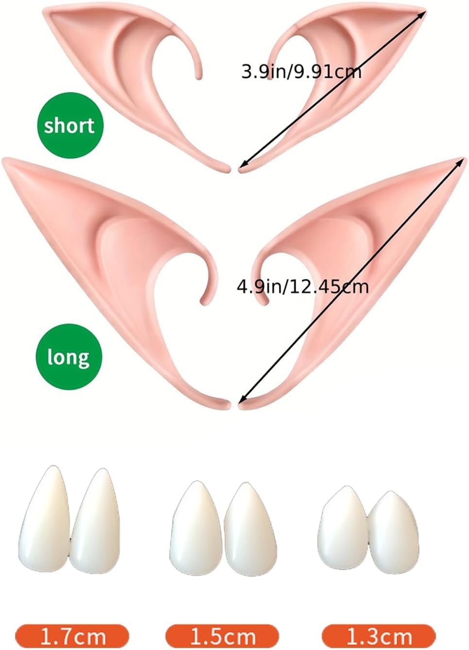 Confezione: contiene 4 paia di orecchie da elfo di stili diversi e 3 paia di zanne da vampiro di diverse dimensioni. Le orecchie da elfo possono essere decorate con trucchi, come elfi, fate, goblin, vampiri di Halloween, ecc. Soddisfa le tue diverse esigenze di vestizione per diverse occasioni Kit di colla per protesi facile da usare: riscalda il dente per rimuovere le perle bianche (va bene anche l'acqua calda), quindi raccoglilo e premilo contro il dente per formare una forma, quindi rimuovi la protesi e premila contro la colla per un po' (le perle si raffreddano rapidamente, quindi è necessario elaborarle rapidamente) Occasione: fare riferimento all'immagine per le dimensioni specifiche, la dimensione è adatta per la maggior parte delle persone, perfetta per trucco cosplay, elfi, fate e anime. Adatto per Halloween, Natale, cosplay, feste in maschera, carnevale, feste, costumi e altri luoghi Promemoria caloroso, servizio di qualità: appendi direttamente sull'orecchio, se ti sembra un po' allentato, puoi applicare la colla per ciglia o il nastro biadesivo in rayon sulla base dell'orecchio per renderlo più forte Regalo carino: può essere usato come regalo per la famiglia, gli amici, i parenti, i vicini, puoi darglielo per esprimere il tuo amore e la tua cura