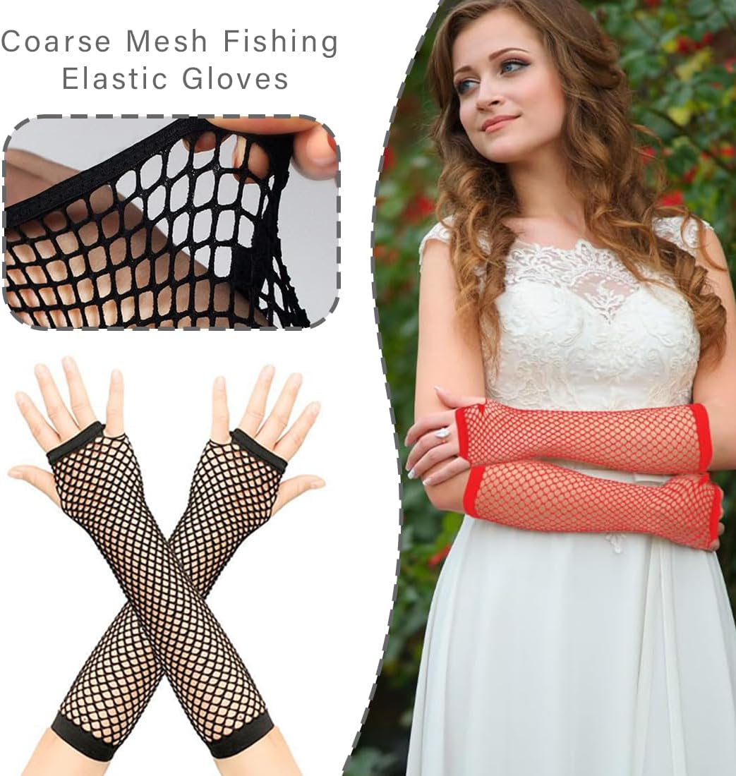 Materiale: Questi guanti a rete sono realizzati in materiale di nylon, consistenza morbida, affidabile e leggera, traspirante ed elastico, comodo da indossare e resistente, indossali senza legatura e sensazione di soffocamento, non facili da danneggiare, buon materiale da fornirti servizio lungo Design A Rete Da Pesca: Questi guanti a rete da pesca senza dita sono progettati con un design a rete da pesca, con foro per il pollice e foro per il mignolo, per mostrare la vostra personalità, modificando le linee morbide delle vostre braccia e mostrando le vostre dita sottili Buona elasticità: I nostri guanti da rete da pesca lunghi e corti presentano una buona elasticità per un'usura facile e confortevole e possono essere facilmente allungati per adattarsi alla tua mano senza essere troppo stretti o troppo larghi Occasioni applicabili: Un must per un vestito elegante o un abito da ballo, questi guanti sono un ottimo accessorio vintage. I guanti a rete lunghi neri sono perfetti per Halloween, feste in maschera, costumi cosplay, spettacoli di danza, bar, discoteche, feste di compleanno e altri festival Pacchetto: riceverai 4 paio di guanti a rete lunghi, è di tipo senza dita(rosso/nero/rosa/viola). Taglia unica. Puoi regalare i nostri guanti a rete anni '80 come regalo affascinante a tua moglie, fidanzata, sorella