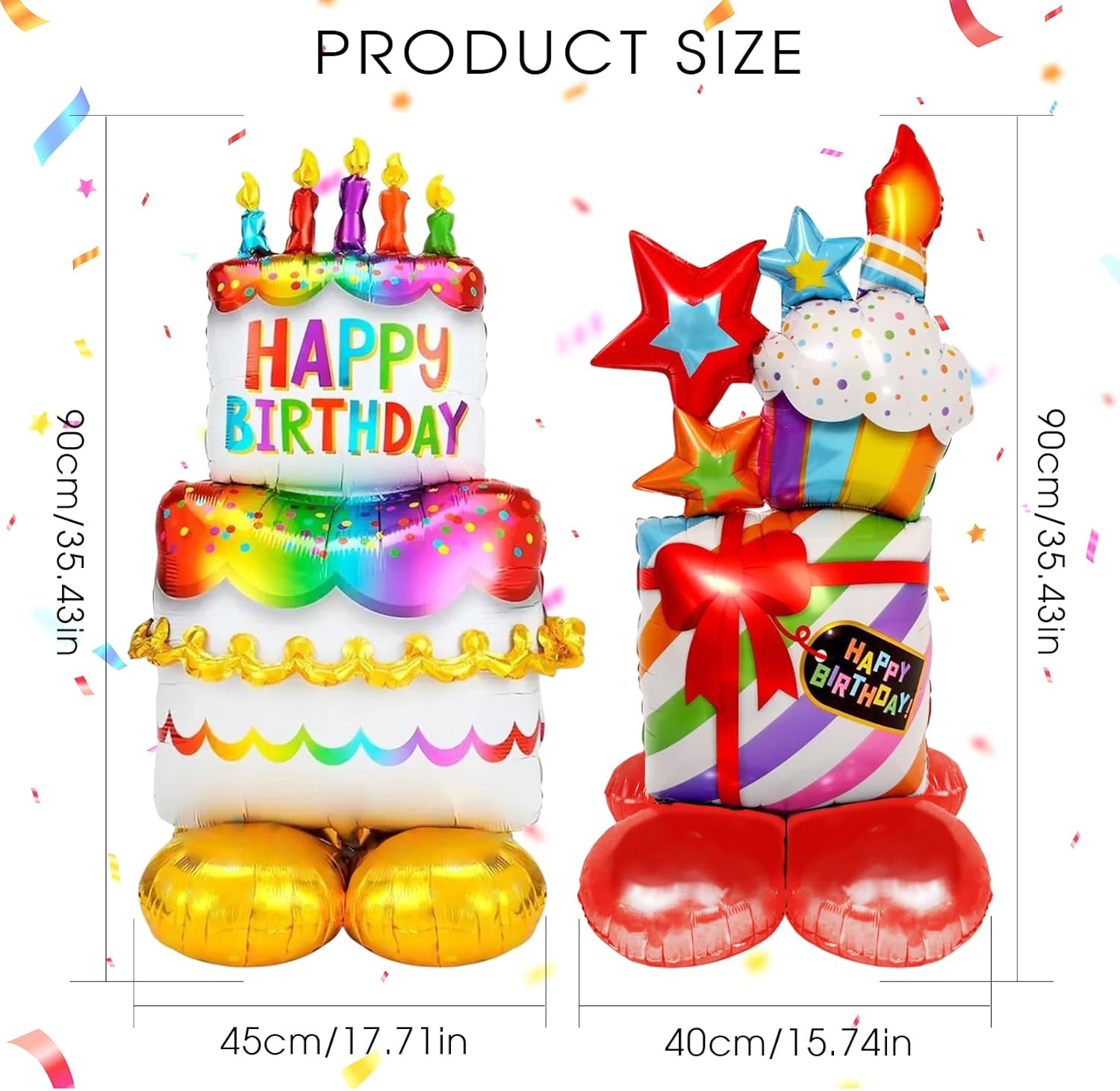 Palloncini di compleanno: riceverai 4 palloncini di compleanno, contiene 2 palloncini a elio per torta di compleanno, 2 regali di compleanno. Alta qualità: i palloncini per feste di compleanno sono realizzati in pellicola di alluminio di alta qualità, durevoli, spessi e di colore uniforme. Facile da usare: palloncino in lamina per torta e stella con piede + palloncino regalo in piedi Happy Birthday è molto facile da usare. Può essere riempito con aria ed elio. Sotto il ben conservato, può essere riutilizzato svuotando. Design dell'aspetto: i palloncini di compleanno sono progettati con piede, colorati e di dimensioni adatte, che possono portare divertimento e vitalità al tuo evento. Sono perfetti per la decorazione di compleanno e l'uso quotidiano. Ampie applicazioni: i palloncini giganti sono adatti per feste di compleanno per bambini, adulti, battesimi, anniversari, decorazioni per la casa, ecc.