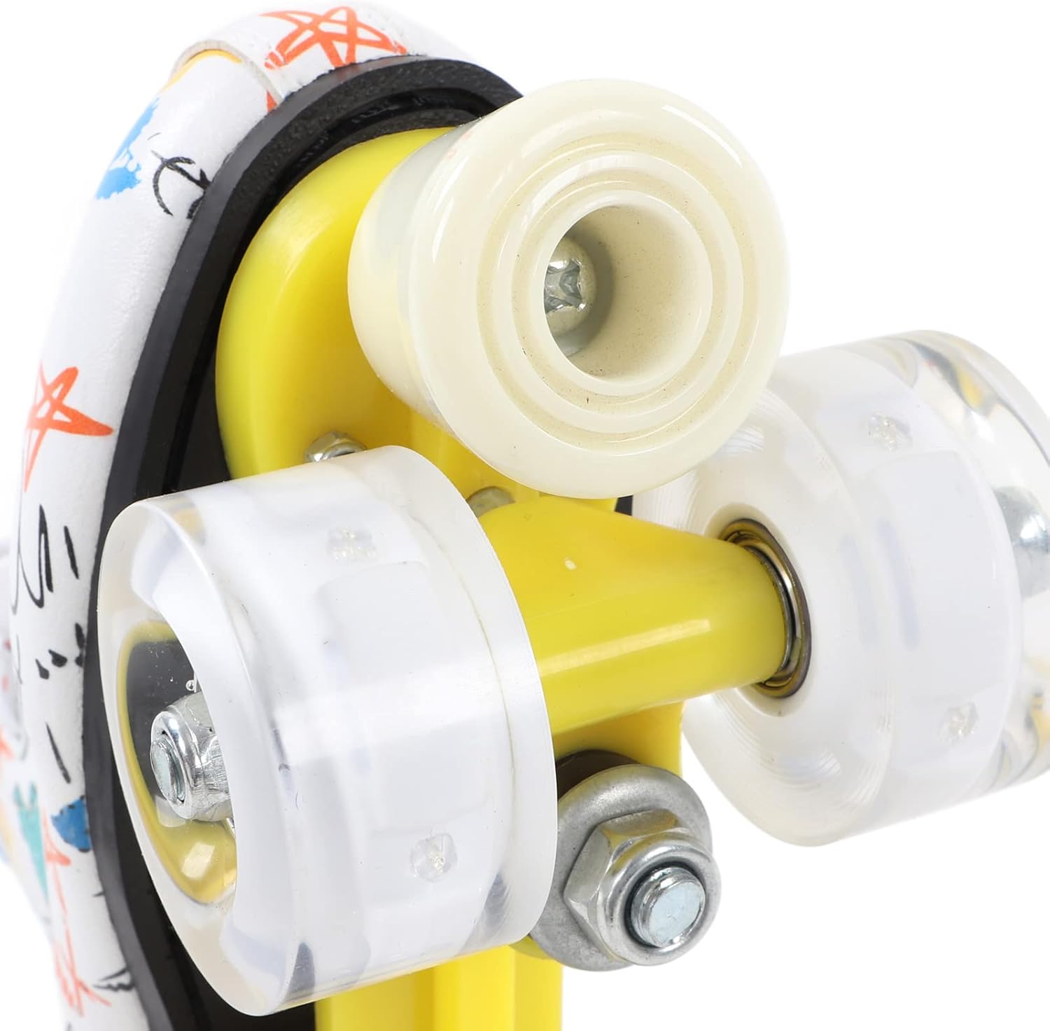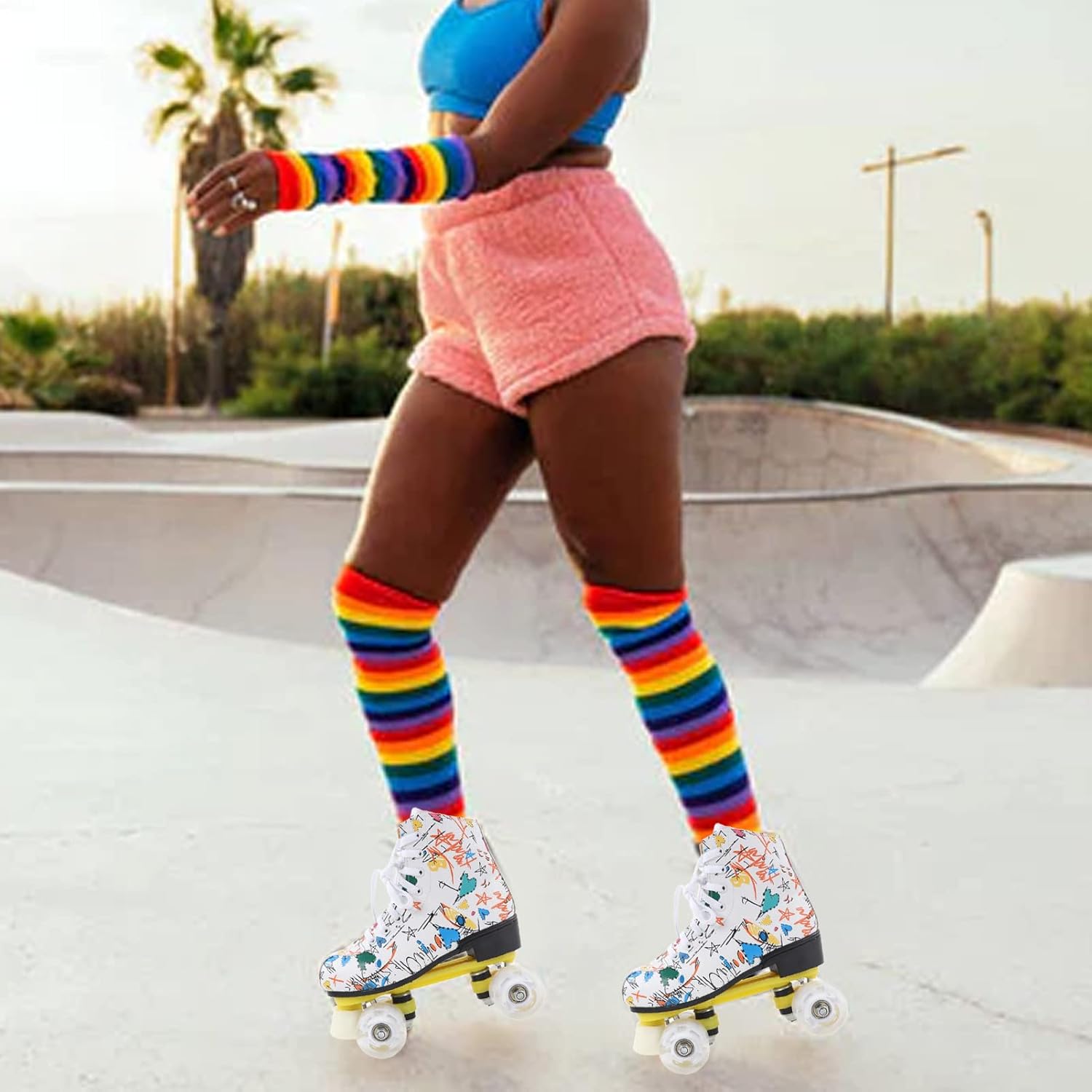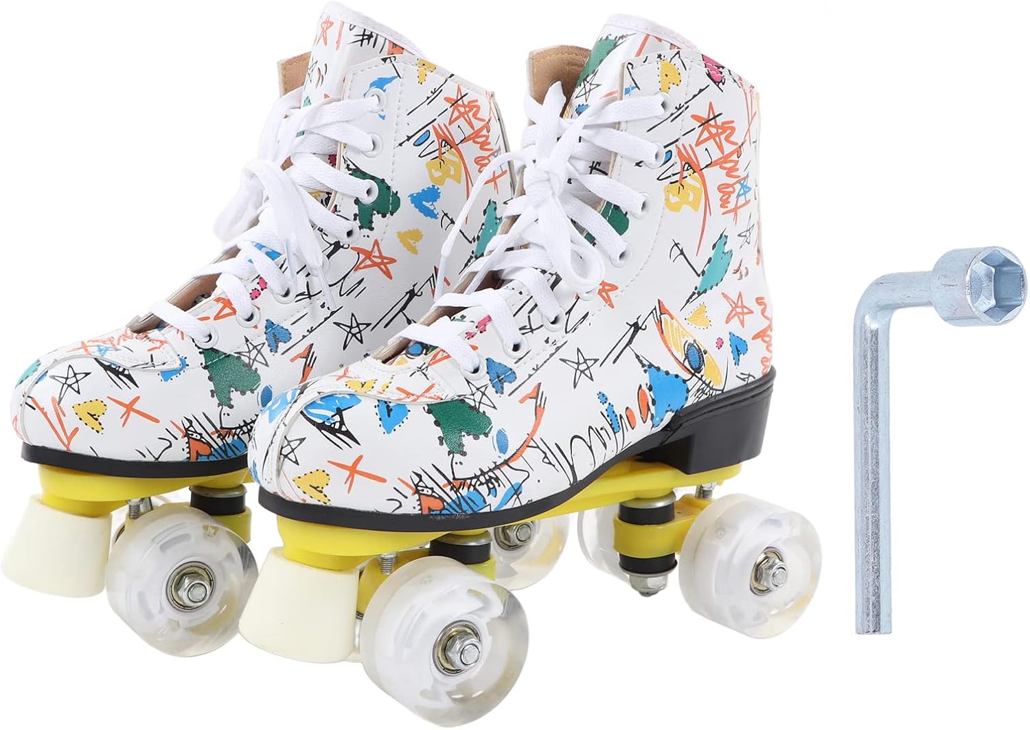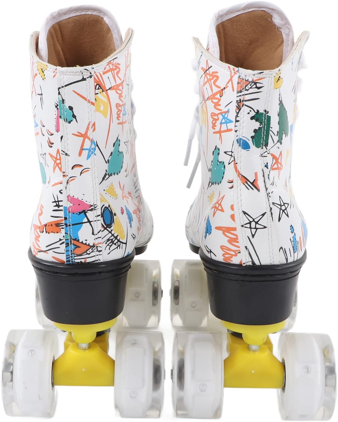 Ampie applicazioni: i pattini a rotelle dai colori vivaci sono il per bambini, ragazzi, ragazze e fidanzati, fidanzate o famiglia. È anche una scelta ideale per il pattinaggio indoor e outdoor. Colonna di supporto anteriore: c'è una colonna di supporto davanti, molto adatta ai principianti. Può mantenere meglio il controllo e la frenata rapida. Questa struttura garantisce che la staffa non venga danneggiata. Comfort e sicurezza: questi pattini a rotelle graffiti utilizzano scarpe alte controllabili per garantire una sicurezza ottimale, mentre i lacci delle scarpe premium offrono la massima protezione per garantire comfort e sicurezza del piede. Traspirabilità interna: la traspirabilità interna dei pattini a rotelle a doppia può aiutare i tuoi piedi a dissipare rapidamente il calore, evitare l'odore del piede e prevenire il sudore, permettendoti di goderti appieno lo scivolamento. Materiale robusto e durevole: i pattini a rotelle sono dotati di robusti pattini a quattro ruote realizzati con materiali stampati durevoli, che possono fornire prestazioni di pattinaggio sicure e affidabili. Le ruote lucide ti rendono più fresco quando pattini.