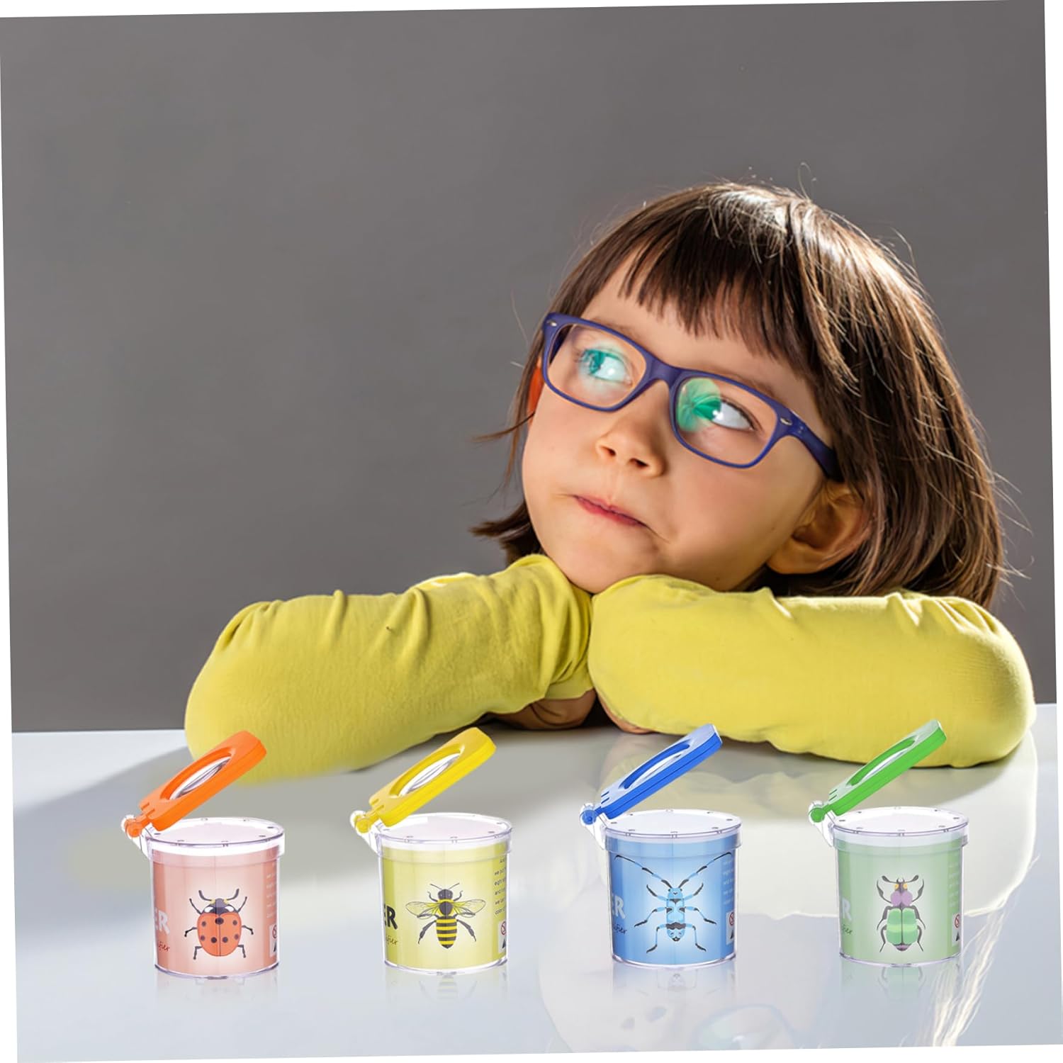Design del foro dell'aria: questo kit per catturare per bambini ha più fori di ventilazione nella parte superiore, che possono fornire un buon luogo di ventilazione e fresca per gli insetti all'interno e osservare meglio le loro attività e comportamenti della vita. Strumenti educativi: questi contenitori di vetro ingranditore sono perfetti per i genitori e i bambini per osservare ed esplorare la insieme e anche adatti allo studio e all'apprendimento di insetti e altri animali nelle aule scolastiche, contribuendo ad aumentare l'interesse dei bambini nell'apprendimento e coltivare un amore e il rispetto per la. Materiale: il catcher per bambini è realizzato in materiale plastico..Il corpo della scatola è robusto e strutturato..Il corpo in scatola trasparente ti consente di osservare più chiaramente insetti e piccoli animali..Il coperchio adotta un design anti-slip a flip-top per una facile apertura e chiusura. Ampiamente utilizzato: gli insetti e i bug per i bambini sono dotati di pinze portatili, che possono essere utilizzate all'aperto per catturare gli insetti e osservare la ricerca e possono anche essere utilizzati in aule o laboratori per i bambini per osservare da vicino insetti e animali..Consenti ai bambini di avere una piacevole esperienza di osservazione senza contatto. di imballaggio: il pacchetto contiene 4 pezzi di scatole di insetti ingrandita, 4 diversi colori di giallo, verde, arancione e blu, colori vivaci, la combinazione multi-pack è sufficiente per condividere con gli amici per osservare insieme gli insetti, molto adatti per la raccolta di vari insetti che osservano e studiano.