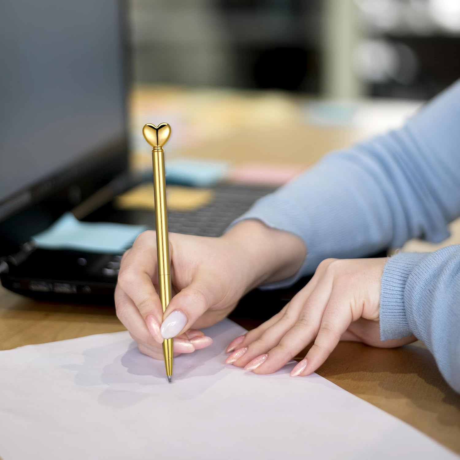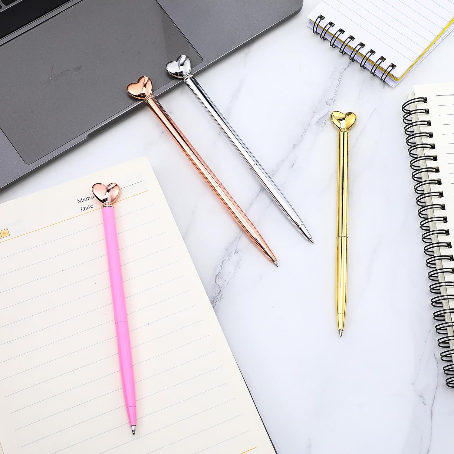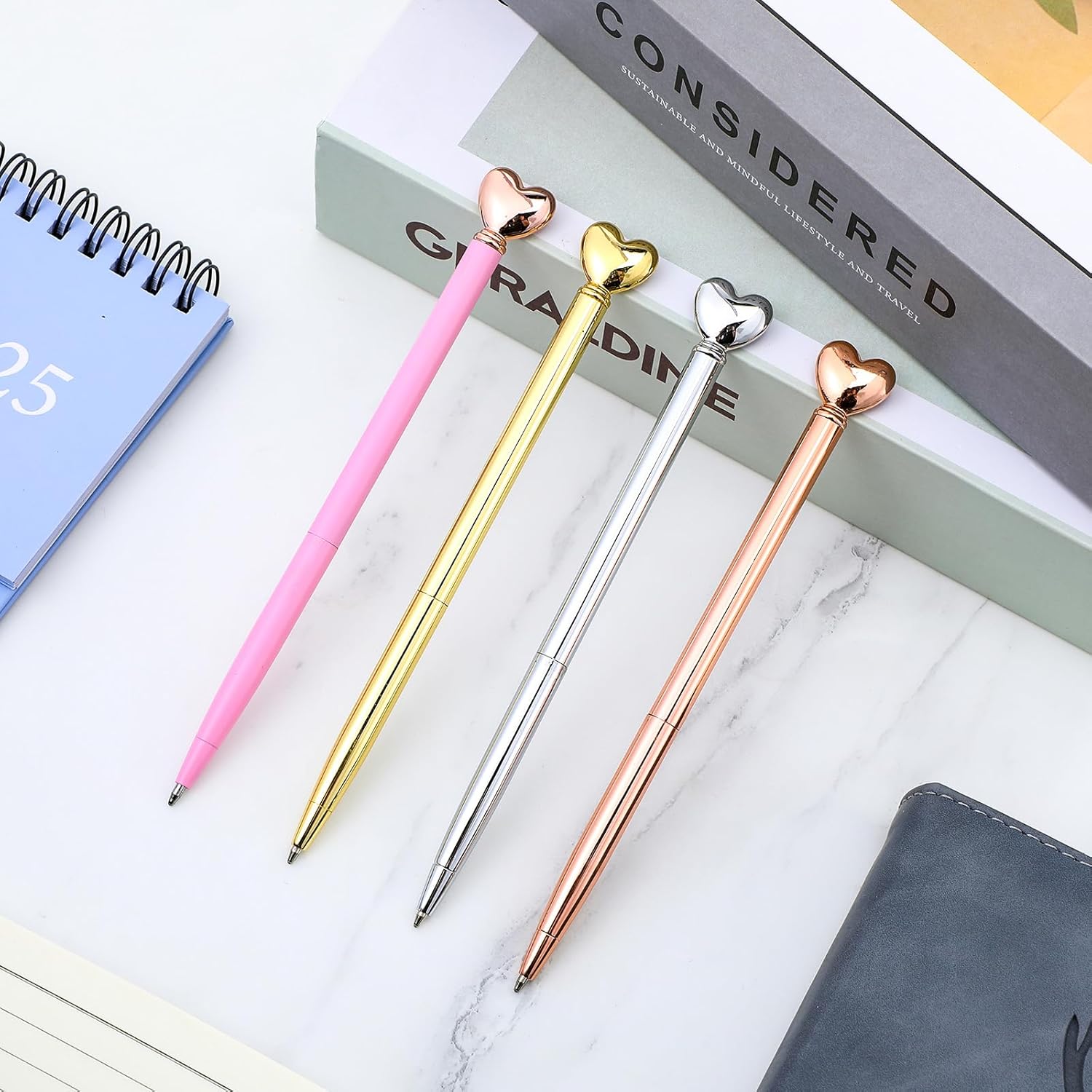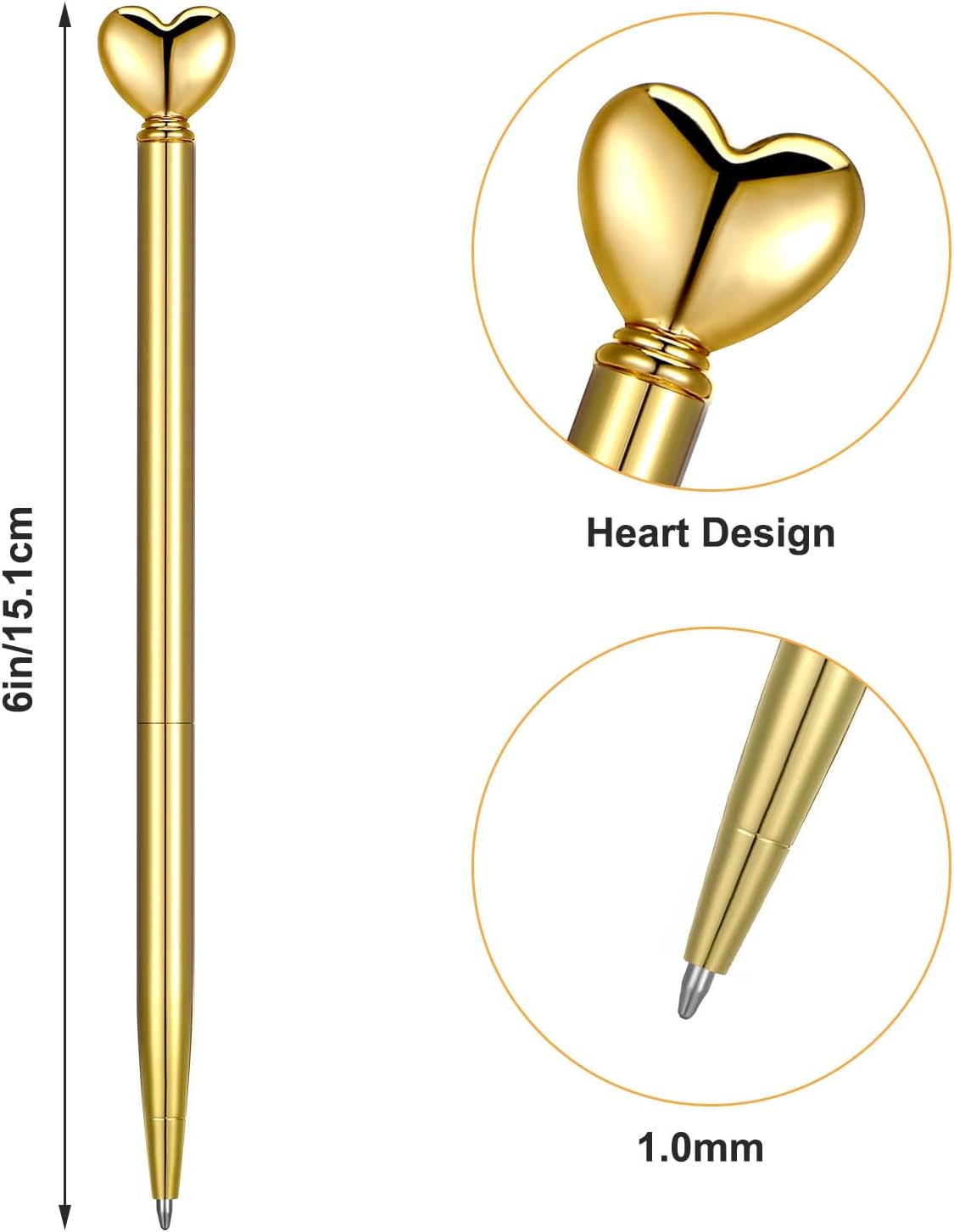 La confezione include: il set include 4 penne a forma di cuore, fornendo un'ampia quantità per vari usi. Sia per uso personale che per condividere con gli amici, queste penne decorative sono perfette per aggiungere un tocco di eleganza a ogni occasione. Materiale di alta qualità: queste simpatiche penne sono realizzate in lega di zinco di alta qualità, acciaio inossidabile e plastica, garantendo durata e una presa confortevole. La pregevole fattura e l'aspetto attraente della penna d'oro la rendono una scelta affidabile ed elegante per la tua collezione di cancelleria. Esperienza di scrittura fluida: dotate di una punta a sfera da 1,0 mm, queste penne dorate offrono una scrittura fluida e uniforme. L'inchiostro nero scorre senza sforzo, rendendo queste penne a cuore ideali per diario, prendere appunti e altre attività di scrittura senza sbavature o saltare. Ampie occasioni: queste penne nuziali sono versatili e adatte per numerosi eventi come addio al nubilato, San Valentino e compleanni. Sono anche ottimi articoli di cancelleria per scuola, ufficio e uso domestico, aggiungendo un tocco delizioso alla tua esperienza di scrittura. Regalo ideale: queste penne a forma di cuore sono un regalo perfetto per familiari, amici e colleghi. Che si tratti di un addio al nubilato, matrimonio o compleanno, queste penne decorative mostrano il tuo amore e apprezzamento, rendendole un regalo premuroso e affascinante.