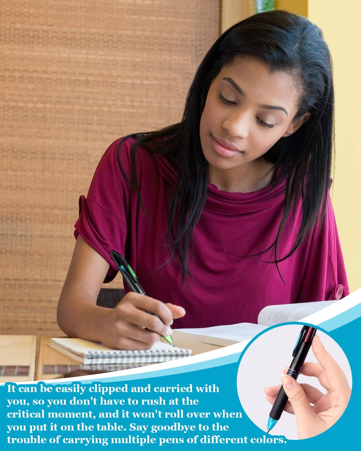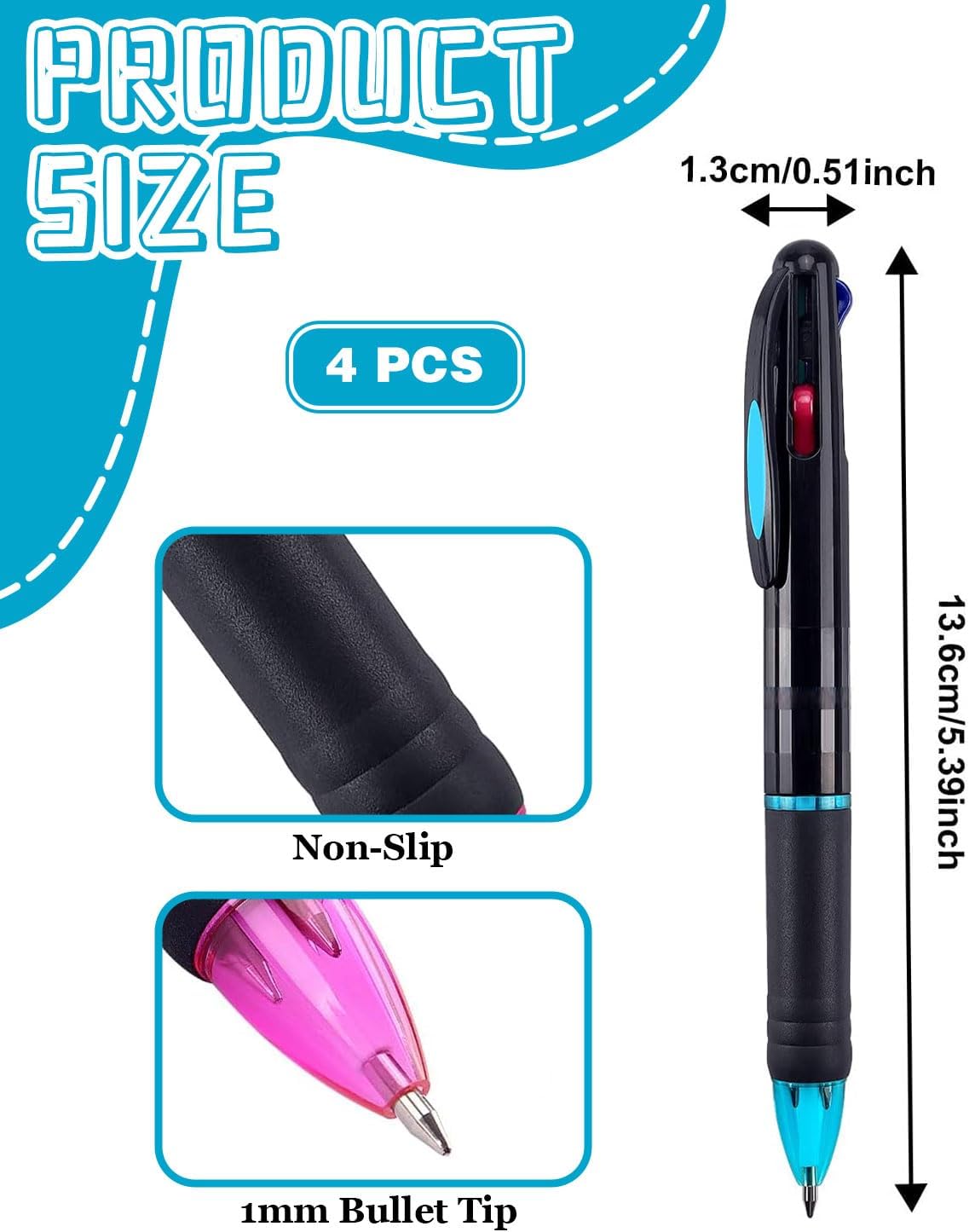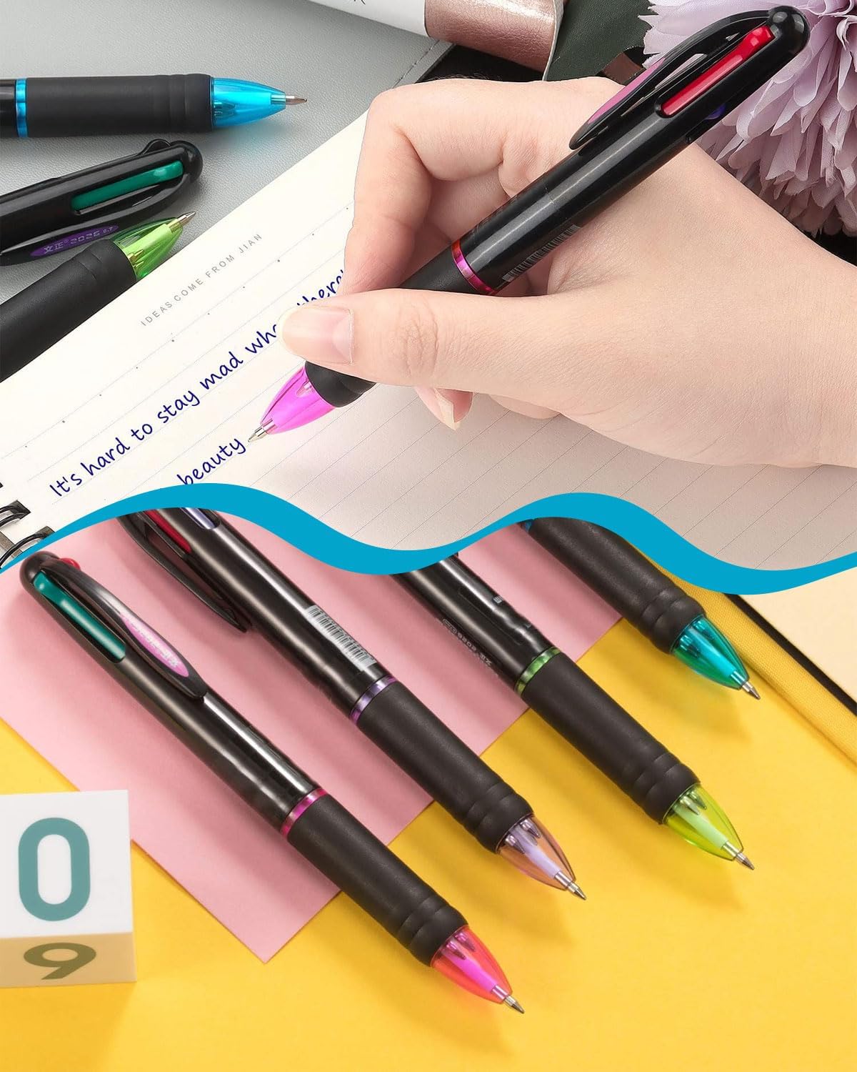 Quattro colori, facilmente sostituibili: la penna colorata 4 in 1 può scrivere in diversi colori; i colori includono nero, rosso, verde e blu, rendendola un regalo pratico e interessante per studenti, bambini, infermieri, impiegati, ecc., adatta per disegnare, scarabocchiare e colorare il testo Scrittura fluida: la ricarica da 0,7 mm è più fluida e l'inchiostro resistente allo sbiadimento fornisce linee di scrittura solide, rendendo i tuoi appunti e la tua scrittura chiari, perfetti per attività di scrittura che richiedono ordine e precisione Con un design a molla retrattile: questa penna roller a scatto di alta qualità è dotata di un design a molla retrattile. Con una semplice pressione, puoi passare rapidamente da un colore all'altro, unendo divertimento e praticità. Il pennino multicolore è dotato di una comoda clip da tasca che può essere agganciata a un diario o a una tasca per un facile utilizzo. Penne colorate: tutti e 4 i colori sono ugualmente brillanti e accattivanti, il che le rende un ottimo accessorio per scrivere, studiare o lavorare, ma anche un ottimo premio scolastico per gli studenti, un souvenir per feste d'arte, un regalo di compleanno e un regalo per alcune occasioni speciali. Adorerai questa penna multifunzionale. Suggerimenti: la confezione contiene 4 penne colorate. Prima dell'uso, passare la penna più volte per rimuovere i residui di inchiostro dalla punta e rendere l'applicazione più fluida.