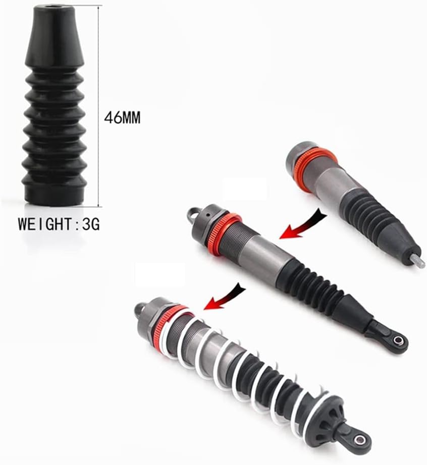 Il design antipolvere impedisce efficacemente che l'assorbitore RC si sporchi o si danneggi. Caratteristiche: Un peso ridotto non appesantisce ulteriormente le auto RC. Facile da installare e rimuovere. Gli ammortizzatori non sono inclusi.