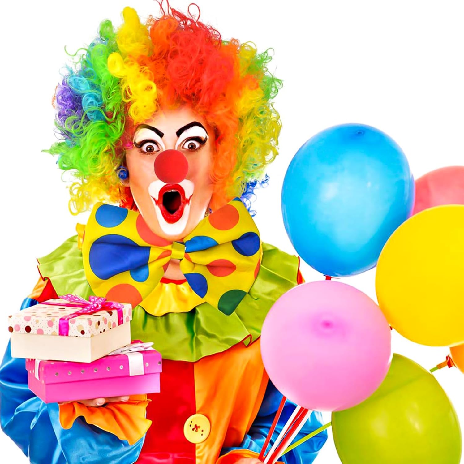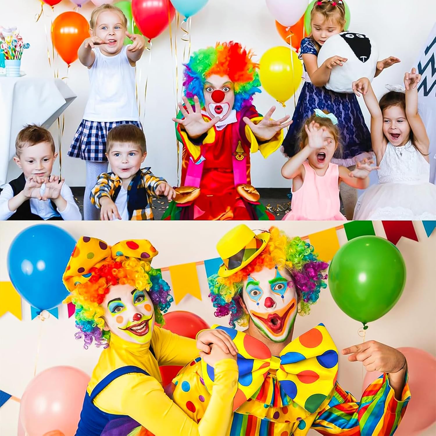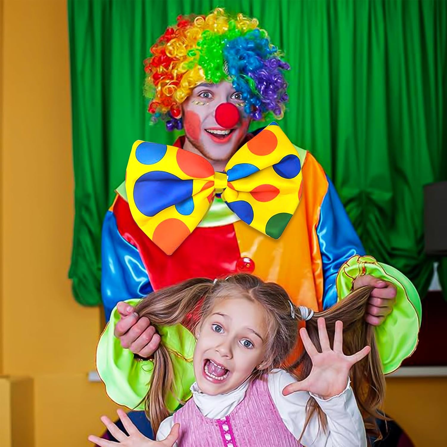 【Materiale di Alta Qualità】: Queste Costume Clown Adulto per bambini sono realizzate in fibra sintetica, hanno una consistenza morbida, Sono facili da indossare e hanno colori vivaci, Indossare il costume da clown ti farà risaltare alla festa, Il papillon da clown e le cravatte sono realizzate in raso e riempite di spugna per dargli la dimensione e la forma necessarie per creare il perfetto costume da clown. 【Set di Accessori per Clown】: Accessori per Costumi da Clown contiene 4 Accessori per Clown, Tra cui 1 parrucca colorata da clown, 1 paio di guanti da clown bianchi, 1 naso da clown rosso, 1 Papillon da Clown, abbastanza costumi disponibili. le tue esigenze e questo costume da clown è dimensionato per adattarsi alla maggior parte degli adulti e dei bambini. 【Design da Clown】: Gli Costume Pagliaccio con Colori Vivaci, secondo le caratteristiche del personaggio del Clown. Colori e motivi vivaci ti fanno brillare alla festa e donano al tuo costume un'atmosfera allegra, Adatta a tutti i tipi di feste o vacanze. 【Cosplay】: Questa parrucca Pagliaccio, adatta alla maggior parte delle dimensioni della testa, Facile da indossare, Adatta sia a uomini che a donne, Puoi andare a qualsiasi festa, Creare un'atmosfera unica ed essere il punto culminante della tua personalità. 【Ampia Gamma di Applicazioni】: Vestito Clown Adulto Adatto per la maggior parte delle occasioni, come Halloween, accessori per costumi di carnevale o da festa, ecc, Adatto per la maggior parte delle donne, Ragazze e bambini, Adatto anche a persone che organizzano feste di ruolo per rendersi più attraenti, Crea effetti scenici emozionanti.