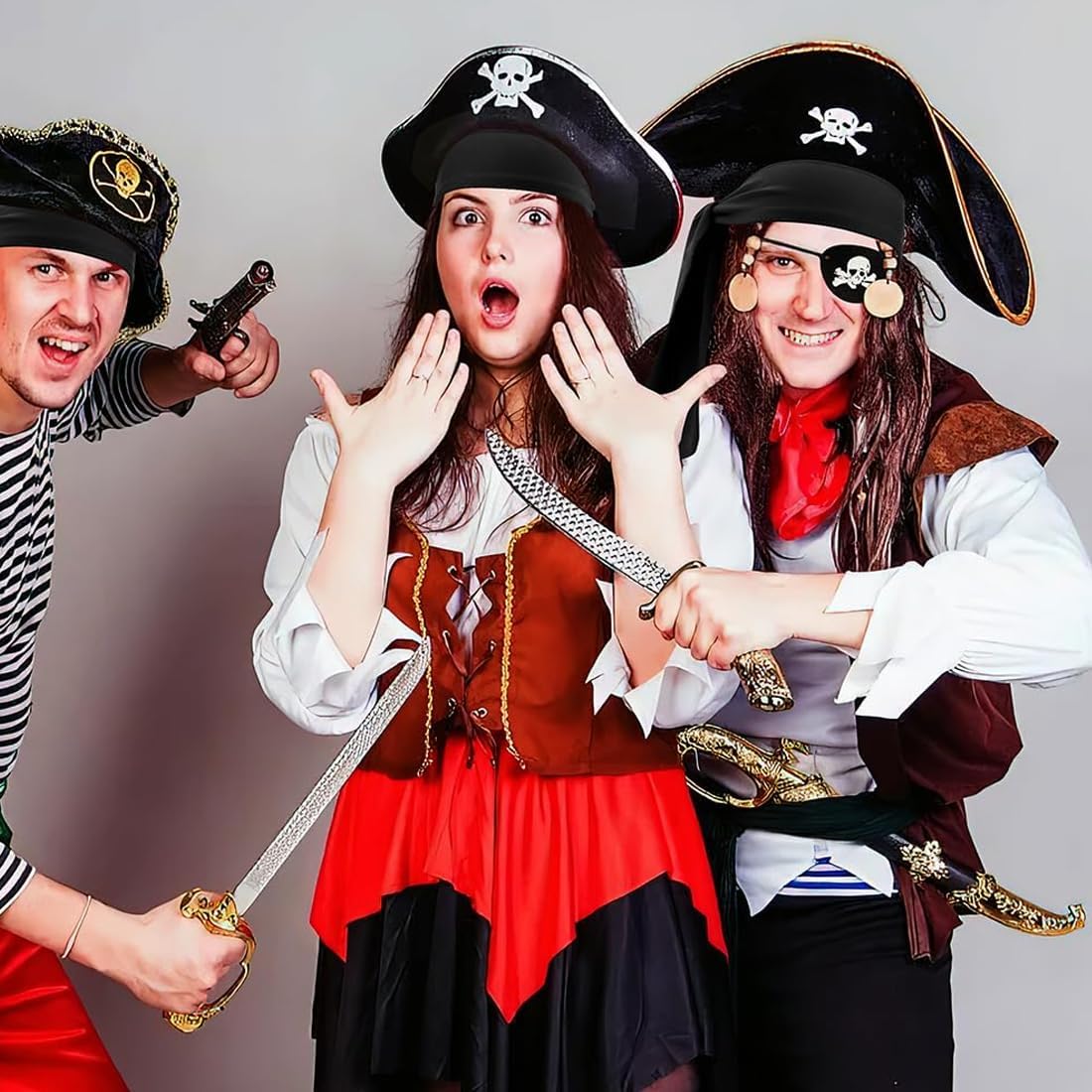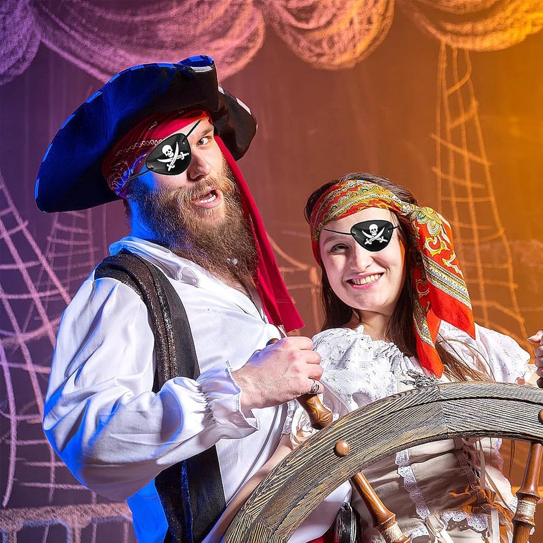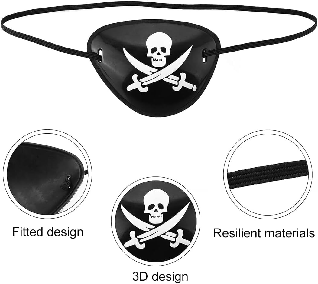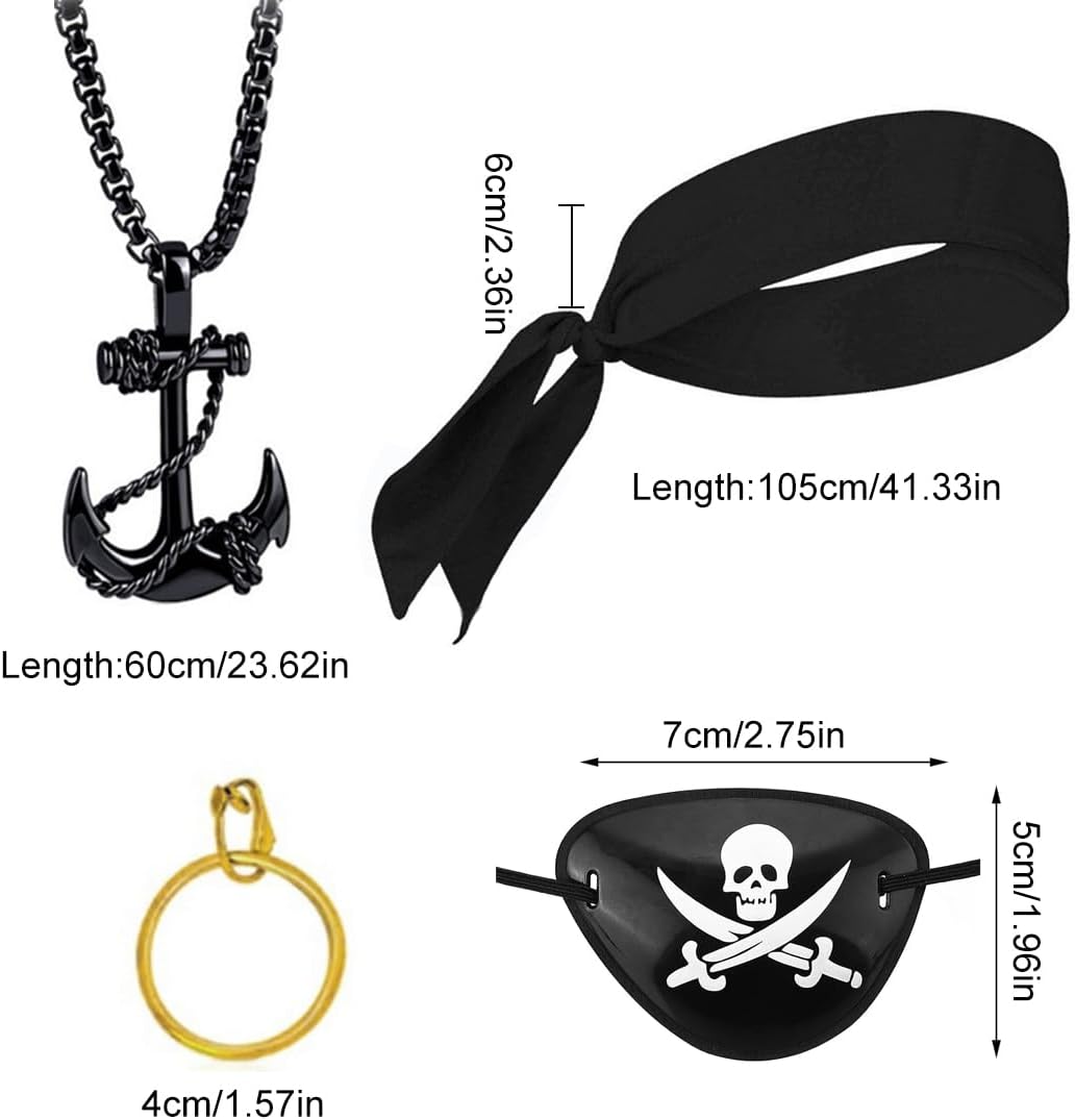 Taglia perfetta: questo costume da pirata è adatto ad adulti e adolescenti per l'uso quotidiano. Materiali di alta qualità: la maschera e la fascia sono realizzate in poliestere di alta qualità, mentre la collana con l'ancora è realizzata in lega. Questa maschera da pirata per adulti è morbida, confortevole, non irritante e sicura da indossare. Design unico: la decorazione da pirata presenta un motivo a teschio e ossa incrociate. Questo accessorio per feste a tema pirata aggiungerà un tocco di colore alla tua vita di tutti i giorni. L'accattivante clip monocolo e la fascia sono tra i preferiti dagli amici e questo set da pirata sarà sicuramente un successo. Versatile: questo costume da pirata con motivi pirata è perfetto per Halloween, Natale e altre feste e celebrazioni a tema pirata. Occasioni adatte: adatto a una varietà di occasioni, come carnevali, bar, Halloween, banchetti, balli, feste a tema pirata, festival ed eventi speciali.