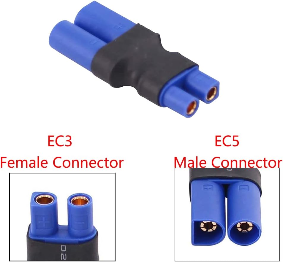 Adattatore da connettore Femmina EC3 a connettore Maschio EC5. Categoria: senza fili / adattatore a 2 connettori Quantità nella confezione: 4 pezzi Connettore maschio: stile EC3; Connettore femmina: stile EC5 Usato per: convertire la batteria con EC3 in EC5 su ESC/caricatore.