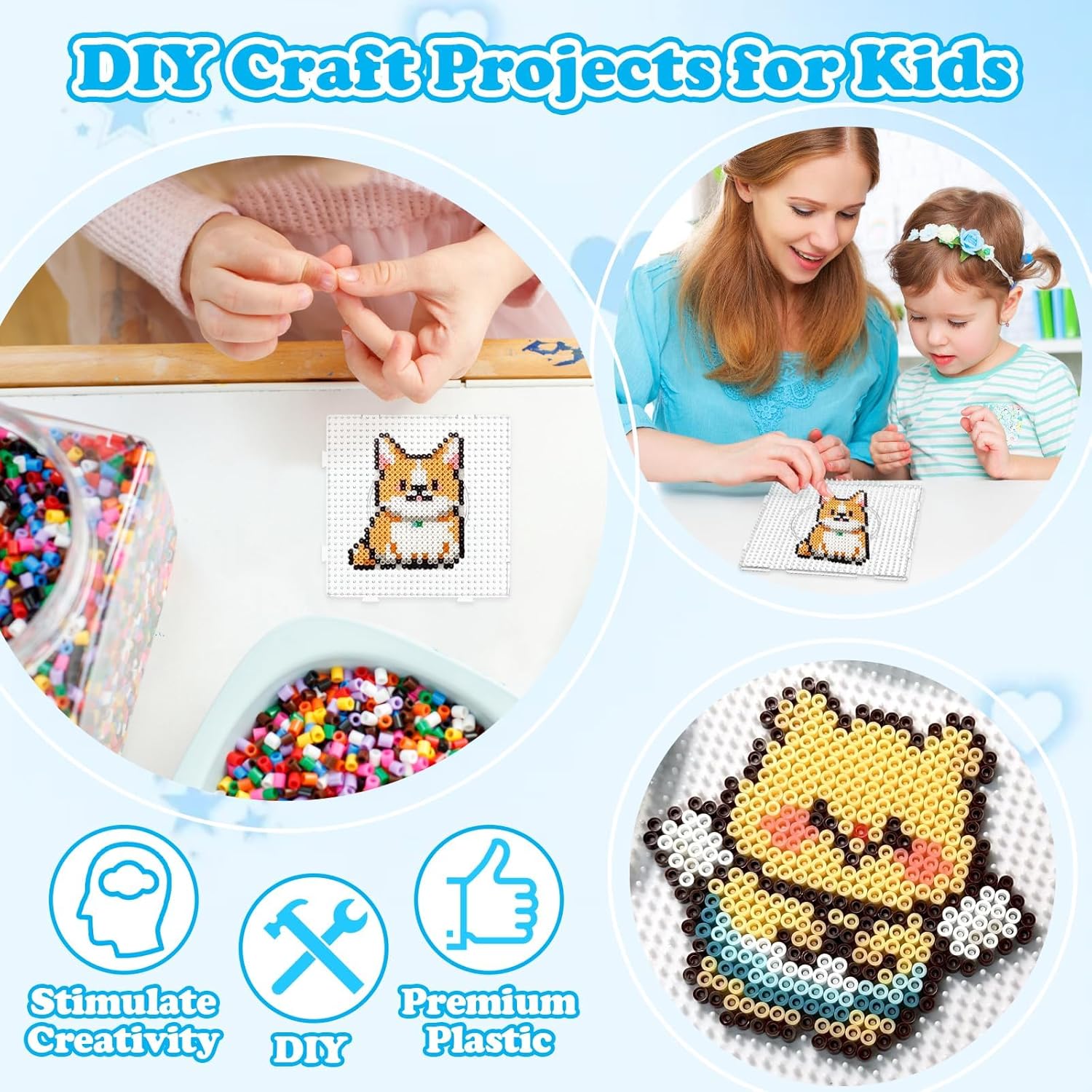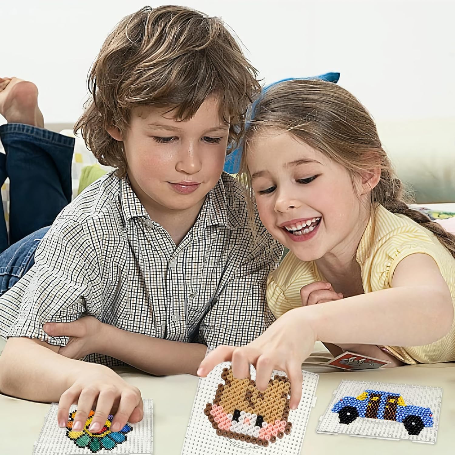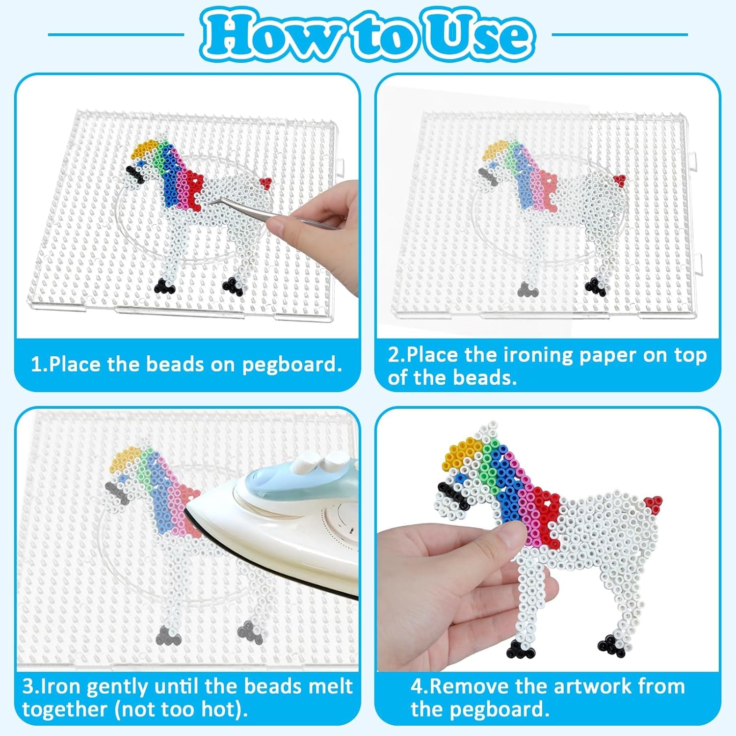 【4 Tavole per Perline da Stirare – Formato 14,5 x 14,5 cm】: Questo set include 4 tavole per perline trasparenti, ognuna delle dimensioni di 14,5 x 14,5 cm, perfette per le perline da stirare 5 mm. Ideale per progetti creativi fai-da-te, lavoretti artistici e attività manuali per tutte le età. Perfetto per bambini e adulti. 【Sistema ad Incastro – Espandibile per Progetti Grandi】: Grazie al design a incastro intelligente, le tavole possono essere collegate facilmente tra loro per creare una superficie di lavoro più grande. Ideale per grandi creazioni con perline, figure complesse o attività di gruppo scolastiche. 【Materiale PVC Trasparente e Resistente】: Realizzate in PVC trasparente di alta qualità, queste basi per perline sono resistenti agli urti e durevoli. Il materiale trasparente permette di vedere chiaramente le sagome, facilitando la creazione di motivi precisi con le perline. 【Facile da Usare – Adatto a Tutti i Livelli】: Posiziona le perline sulla base, copri con carta da forno e stira delicatamente con un ferro da stiro per completare il progetto. Nota: evita il surriscaldamento per non deformare la tavola. Ottimo per principianti e appassionati di perline da stirare. 【Stimola la Creatività di Bambini e Adulti】: Perfetto per l'educazione artistica a casa o a scuola, questo set aiuta a sviluppare la coordinazione occhio-mano, il riconoscimento di forme e colori, e il pensiero spaziale. Un’ottima idea regalo per bambini, ragazzi e adulti amanti delle attività creative.