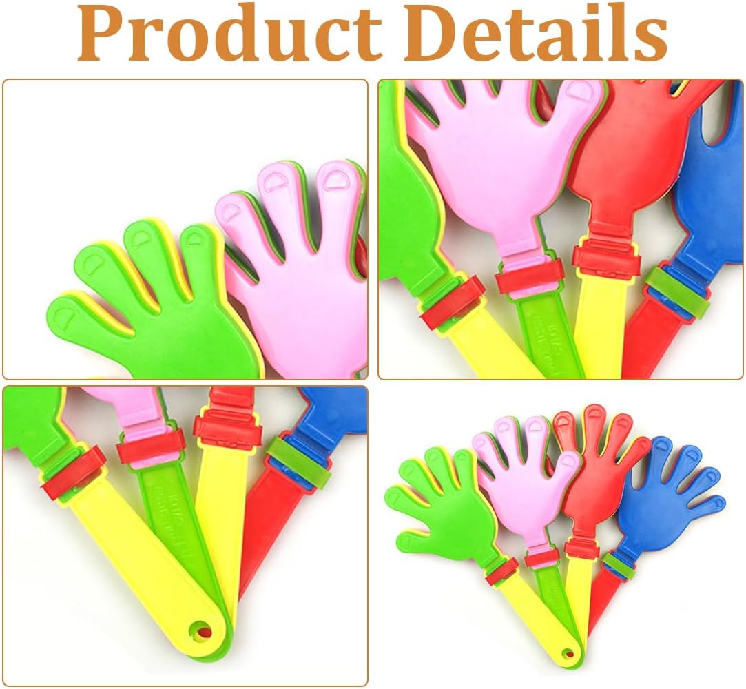 🎈Set di grande valore: riceverai 4 battenti a mano in diversi colori misti(Colore casuale), quantità sufficiente e colori vivaci sono perfetti per bruciare entusiasmo e tifare all'evento. 🎈Materiale di alta qualità: questi silenziatori a mano sono realizzati in plastica di alta qualità, robusti e affidabili, leggeri e durevoli, non si rompono facilmente e possono servire a lungo. 🎈Dimensioni adatte: la dimensione di ogni tavoletta è di circa 19cm, di grandi dimensioni, facile da fare suoni nitidi rapidamente, attivare l'atmosfera ed esprimere i tuoi applausi ed eccitazione. 🎈Ampiamente applicabile: questi creatori di rumore a mano possono essere ampiamente utilizzati in vari eventi sportivi, feste, carnevale, spettacoli teatrali, celebrazioni di festival e molte altre occasioni. 🎈Regalo ideale: questi creatori di rumore sono una grande aggiunta alle feste di gioco, regali ideali per familiari e amici, tiriamo per la vittoria, Natale e Capodanno insieme.