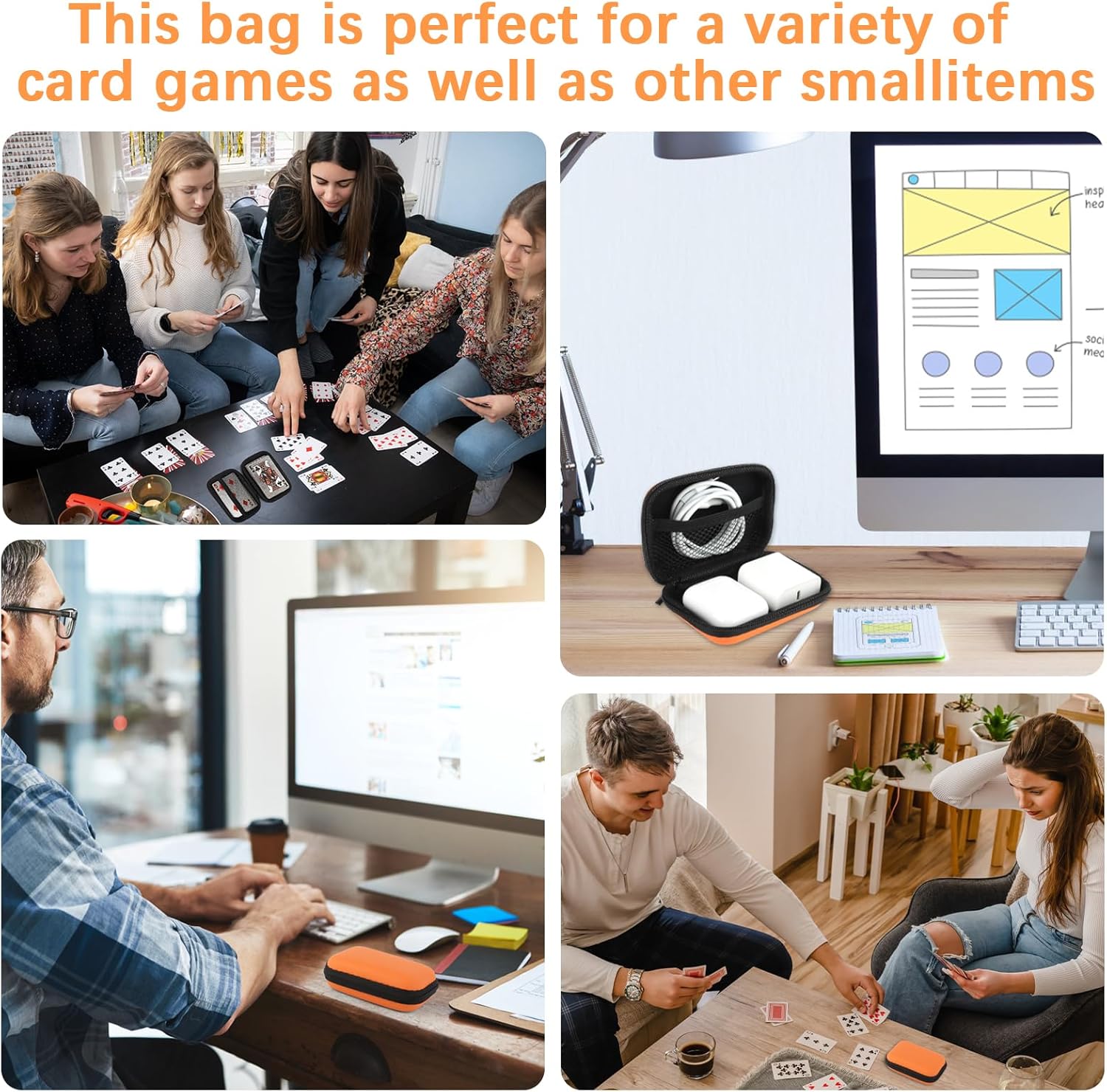 Dimensione-- Le dimensioni esterne della custodia carte da gioco sono 12 x 8,5 x 3,5 cm / 4,72 x 3,35 x 1,38 pollici. La custodia da poker offre spazio sufficiente per riporre le carte da gioco e gli accessori, mantenendole organizzate e protette. Può essere utilizzata anche per organizzare cuffie, cavi dati e altri oggetti. Materiale-- La custodia carte da gioco è realizzata in materiale EVA di alta qualità, impermeabile e antimacchia, con una buona sensazione al tatto e un'elevata resistenza agli urti. L'interno è ricoperto da uno strato protettivo in tessuto non tessuto per evitare l'usura, in grado di proteggere efficacemente gli oggetti da acqua, polvere e graffi. Può essere utilizzato per lungo tempo ed è la scelta migliore per conservare le carte da gioco in modo sicuro. Design Espandibile-- La cerniera di questo vuota scatola di carte organizzatore è quasi a 360° e può essere aperta completamente in piano, la cerniera liscia consente di accedere al gioco del poker senza problemi in qualsiasi momento. Inoltre, questa scatola protettiva per gioco di carte ha uno scomparto interno per diversi tipi di cavi e accessori per mantenere i vostri oggetti organizzati. Conservazione Perfetta-- La custodia rigida per carte è leggera e compatta e può essere facilmente riposta in tasca. La custodia per poker è facile da aprire e chiudere e la cerniera protegge il contenuto dalla caduta. Può organizzare perfettamente la borsa delle carte da gioco e impedire che le carte da gioco vengano graffiate o perse. Ampiamente Usato-- Questa borsa per giochi di carte compatta e portatile è antipolvere, antigraffio e a prova di caduta, che protegge bene i tuoi giochi di carte ovunque tu sia. Sia che siate in viaggio o che stiate conservando dei gingilli, la custodia impermeabile per carte da gioco è la scelta migliore. Non solo può essere utilizzata per conservare le carte da gioco, ma anche fermagli, carte per capelli, bottoni e altri piccoli oggetti.