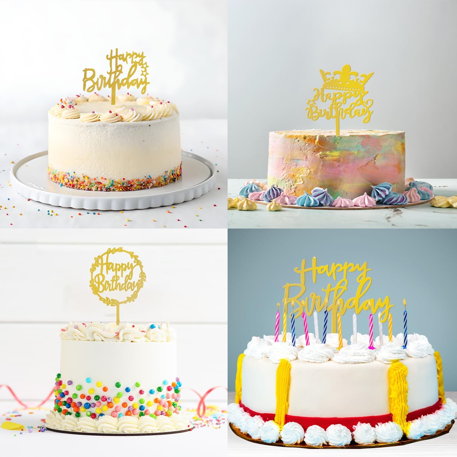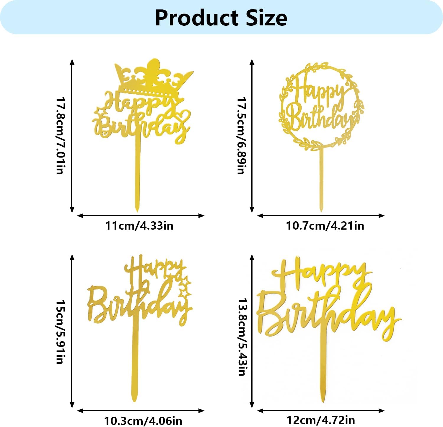 🎂[Contenuto della confezione]: questo set include 4 toppers per torta di buon compleanno in stili diversi. Quantità sufficiente per soddisfare le tue esigenze di decorazione e festeggiare il tuo compleanno con la famiglia e gli amici. 🎂[Buon Compleanno": Questi toppers per torta "Buon Compleanno" sono stampati con le lettere "Buon Compleanno", che evidenziano il tema della festa e migliorano lo spirito festivo. Crea un'atmosfera calda e piacevole per una festa indimenticabile. 🎂[Materiale sicuro]: Questi toppers per torta di compleanno sono realizzati in acrilico di alta qualità, non tossico, inodore, durevole e riutilizzabile. Rimuovere la pellicola protettiva da entrambi i lati prima dell'uso per una vibrante lucentezza metallica. 🎂[Misura adatta]: Questi toppers per compleanno le decorazioni per torte sono adatte per la maggior parte delle torte. Puoi regolare la profondità della decorazione per decorare torte, dessert o altri pasticcini, rendendoli più attraenti.