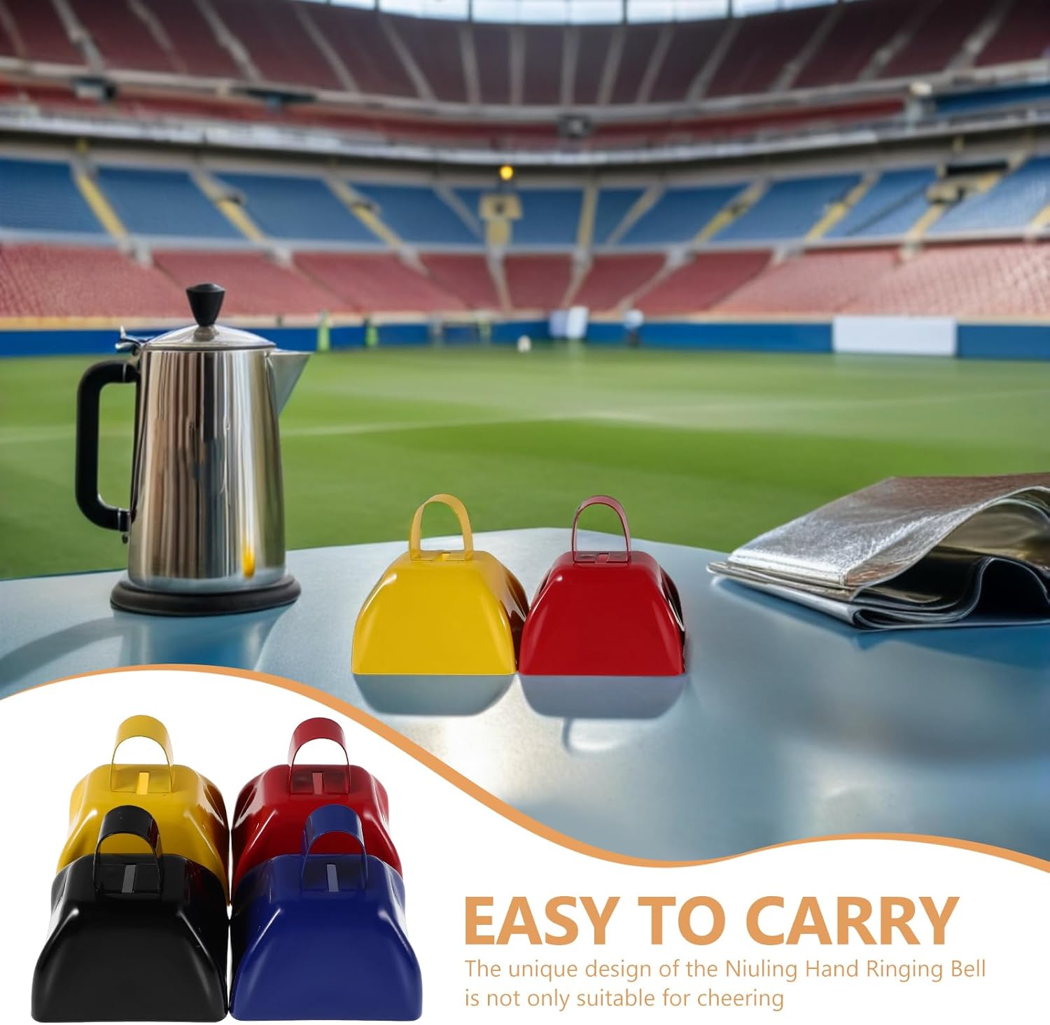 Potente uscita audio: questo campanaccio produce un suono forte e accattivante, adatto per energizzare la folla durante eventi sportivi, feste o celebrazioni Impugnatura comoda: l'impugnatura ergonomica garantisce una presa sicura e confortevole, rendendo facile scuotere la campana per lunghi periodi senza sforzo Dimensioni adatte al viaggio: il suo design compatto da 3 pollici consente una facile trasportabilità, così puoi portarlo a qualsiasi evento e goderti il suo suono divertente e festoso Accessorio versatile per eventi: adatto per tifo sportivo, feste di Natale, concerti e altro ancora, questo campanaccio è un must per creare un'atmosfera divertente e coinvolgente Resistente e stabile: progettato per un uso ripetuto, questo campanaccio è realizzato con materiali robusti che ne garantiscono la conservazione in condizioni eccellenti nel tempo