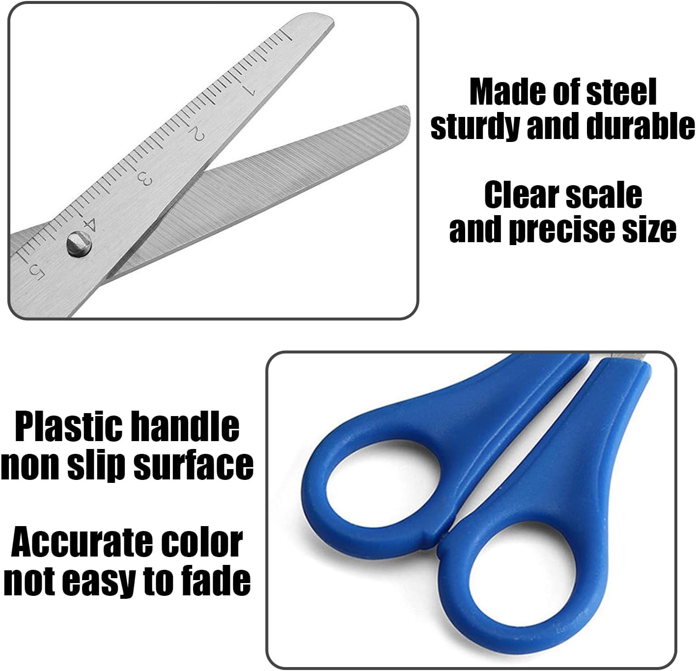【Contenuto Del Prodotto】 Ottieni 4 Pezzi Di Forbici Per La Sicurezza Dei Bambini, Tra Cui 2 Paia Di Studenti E 2 Coppie Con Forbici Di Carta. La Dimensione Del Taglio Stutuo Del Scalatore È Di 1, 4 Mm, Con Colori In Blu E Rosso; Le Forbici Di Picco Tagliate In Carta Sono 13, 3*6, 4 Cm Con Colori Casuali Adatti Per L'Arte Fatta E Tagliata A Mano Fai-Da-Te. 【Materiale Del Prodotto】 Questo Prodotto È Realizzato In Acciaio Inossidabile Che È Resistente E Non È Facilmente Arrugginita. La Nitidezza Scherzosa È Progettata Per I Bambini Che Garantiscono La Sicurezza, Mentre Tagliano Facilmente Carta E Altri Materiali E Sono Adatti Per Una Varietà Di Attività Artigianali. 【Design Di Sicurezza】 Questo Prodotto È Appositamente Progettato Per I Bambini Che È Possibile Utilizzare In Modo Sicuro. Le Forbici Hanno Una Punta Schietta E Rotonda Che Non È Facile Da Grattare. I Tagli Allo Studio Skala Sono Dotati Di Scale Che Sono Facili Da Misurare E Su Misura, Mentre Le Forbici Di Picco Tagliate Sono Adatte Alla Produzione Di Diversi Lacci E Motivi E Il Divertimento E La Creatività Della Produzione Fatta A Mano Migliorano. 【Creative Fatti A Mano】 Questo Prodotto È Perfetto Per Diverse Attività Artistiche Fatte A Mano E Di Carta. Indipendentemente Dal Fatto Che Si Tratti Di Un'Ora Di Artigianato Scolastica O Di Un Progetto Di Artigianato Domestico, Queste Forbici Possono Soddisfare Le Loro Esigenze E Consentire Ai Bambini Di Usare La Loro Creatività E Le Loro Abilità Pratiche In Un Ambiente Sicuro. 【Ampliato】 Non È Solo Adatto Per I Bambini Fatti A Mano, Ma Anche Per Insegnanti E Genitori. Indipendentemente Dal Fatto Che Si Tratti Di Un Taglio Di Carta, Produzione Artigianale O Di Lavoro Da Ufficio Quotidiano, Queste Forbici Possono Offrire Comodità, Aiuto E Un Must Per Ogni Famiglia E Ogni Classe.