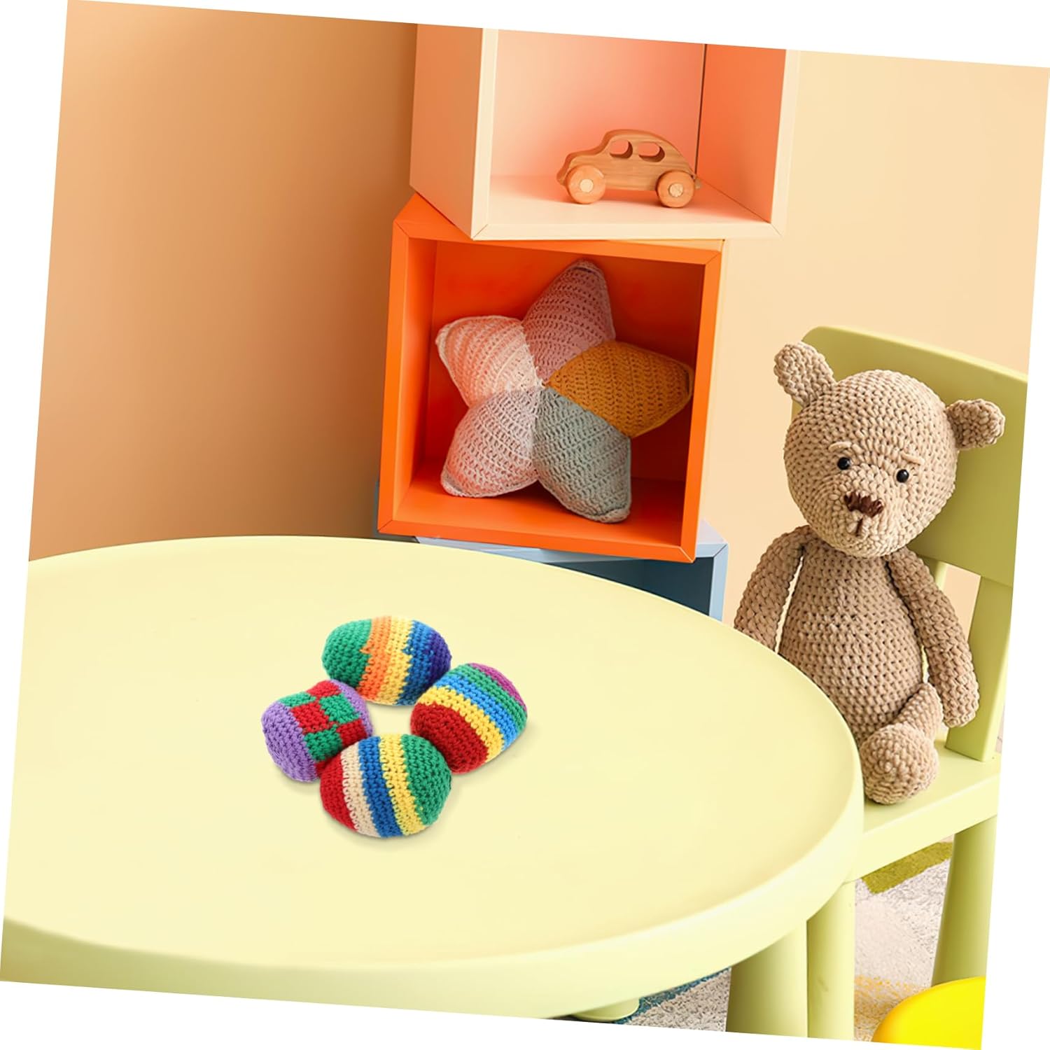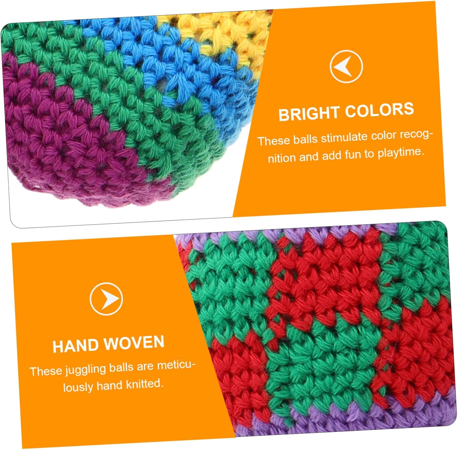 Robuste: queste palline sono robuste e resistenti all'usura, garantiscono un divertimento duraturo e resistono ad un uso frequente. Palline morbide da giocoliere all'uncinetto, palline a sacco lavorate a maglia. Stimola l'apprendimento dei colori: l'uso di filati luminosi e multicolori aiuta i bambini a riconoscere e distinguere i colori, migliorando la loro esperienza di apprendimento. Kickball lavorato a maglia, palline da giocoleria lavorate all'uncinetto multicolori Versatili: queste palline sono adatte sia per uso interno che esterno e sono ideali per le attività della scuola materna e le sessioni di gioco in famiglia. Sono palline da giocoliere all'uncinetto e palline da kicksack all'uncinetto Colorate e divertenti: il filato brillante e multicolore utilizzato in queste palline aiuta i bambini a conoscere i colori e li rende più divertenti. Sacco da calcio in maglia multicolore, pallone da calcio multicolore per Leggeri e facili da impugnare: questi palloni morbidi sono progettati per le mani piccole e sono adatti ai più piccoli. Promuovono la coordinazione occhio-mano e la destrezza. morbide palline da sacco all'uncinetto. morbido borsone all'uncinetto