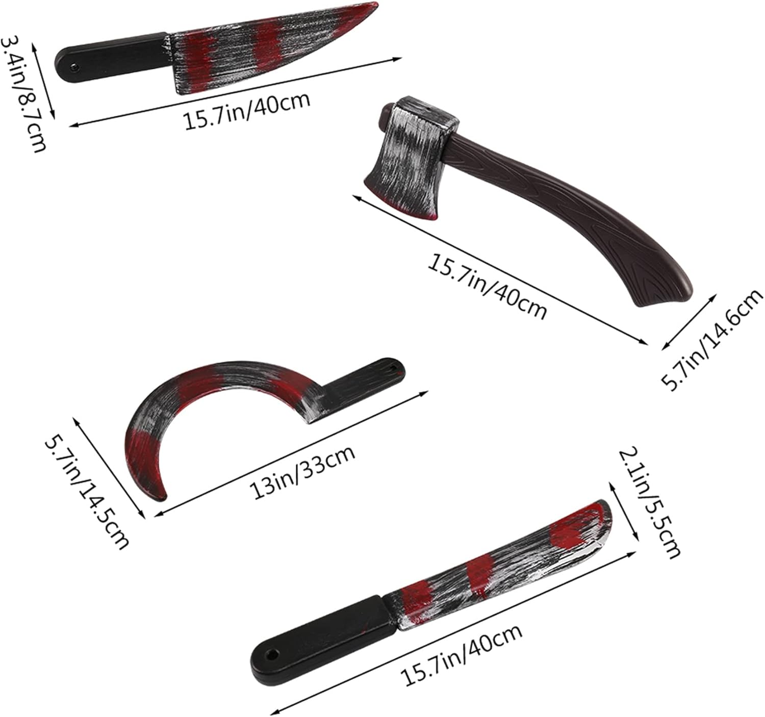 Stile: elicottero, ascia, coltello, pic Dimensioni: Ascia 40 x 14,6 cm, coltello affilato 40 x 8,7 cm, 33 x 14,5 cm, 40 x 5,5 cm