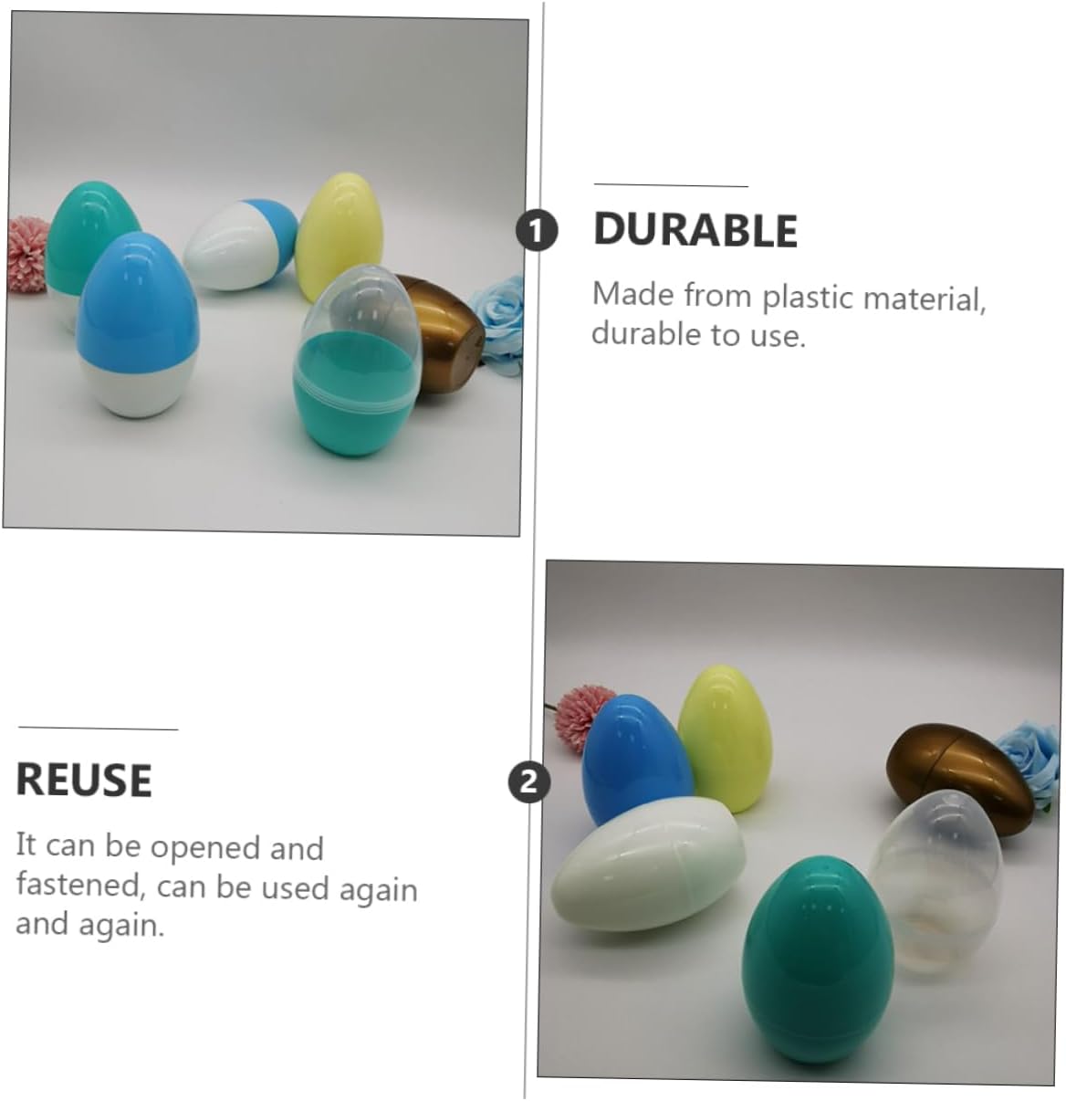 Uovo decorativo: ti divertirai a cercare tesori nascosti con questo uovo giocattolo Uovo di plastica: per l'atmosfera festosa, un set di giocattoli per preparare regali per, giocattoli di Pasqua Uovo di Pasqua: fatto di plastica, da usare, oggetti di scena Guscio d'uovo di plastica: puoi disegnare il modello che desideri su queste uova artificiali, uova giocattolo di guscio d'uovo di plastica per: le uova di plastica possono anche impedire a un bambino di rompere le uova vere, pacchetto di uova creativo