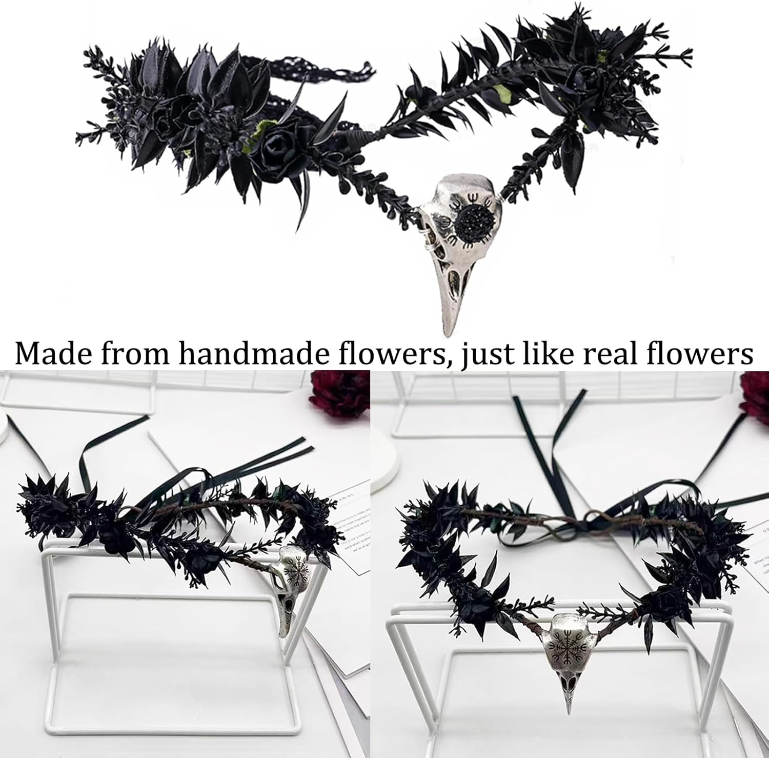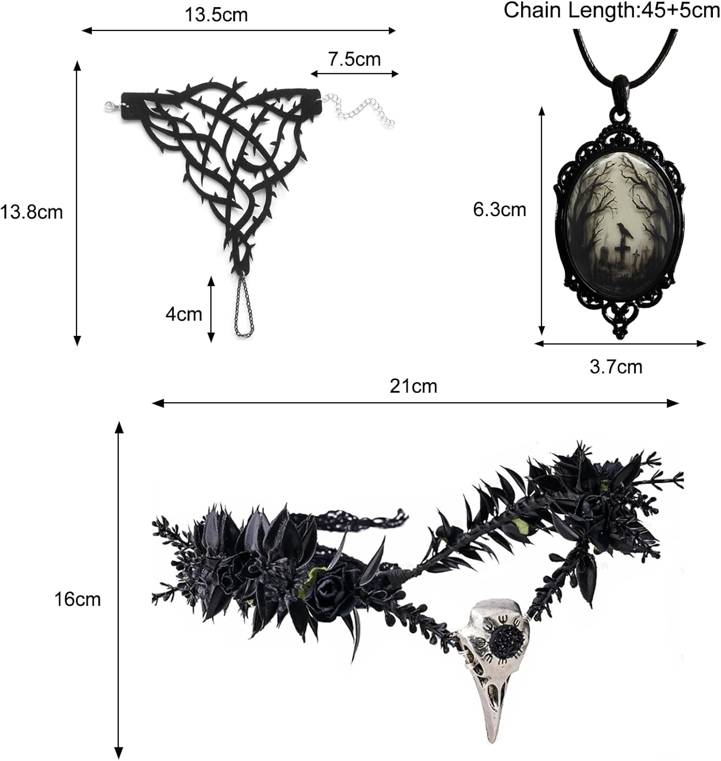 【Pacchetto】Questo pacchetto di corone include 1 corona gotica, 1 collana gotica, 2 braccialetti gotici. 【Design gotico】Questa corona gotica con ramoscelli e rami intrecciati insieme, con elementi scuri come fiori. È perfetto per look gotici, abiti da festa in stile vintage o abiti in stile Lolita. 【Materiali di alta qualità】Le corone di teschi di corvo sono realizzate con robuste foglie e fiori simulati con struttura robusta e comode da indossare. 【Misura regolabile】La corona di teschio di corvo gotico per persone di diverse fasce d'età e dimensioni della testa. La dimensione è universale e questa corona è adatta sia per uomini che per donne. 【Ampia applicazione】Queste corone nere possono essere indossate in varie occasioni come cosplay, feste, matrimoni, Mardi Gras, Halloween, Rinascimento, Pasqua e altri festival. Che ti rende più bella, affascinante e unico tra la folla, perfetto anche per look gotici.