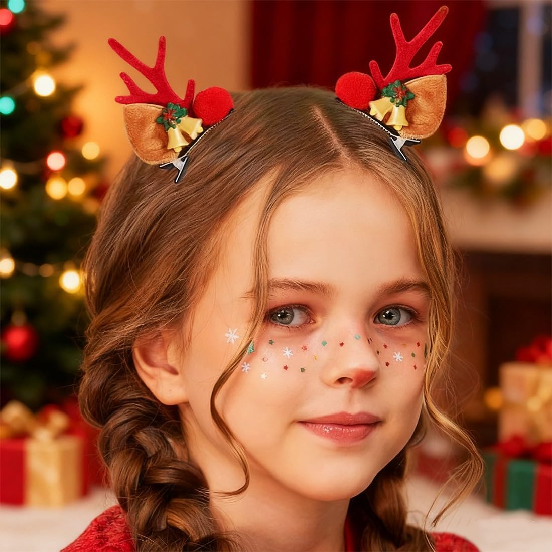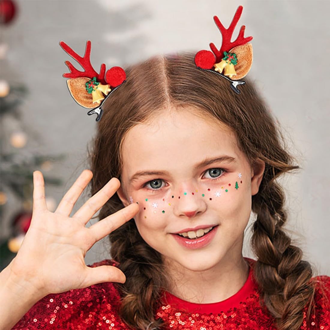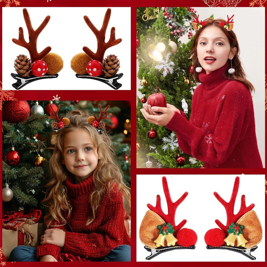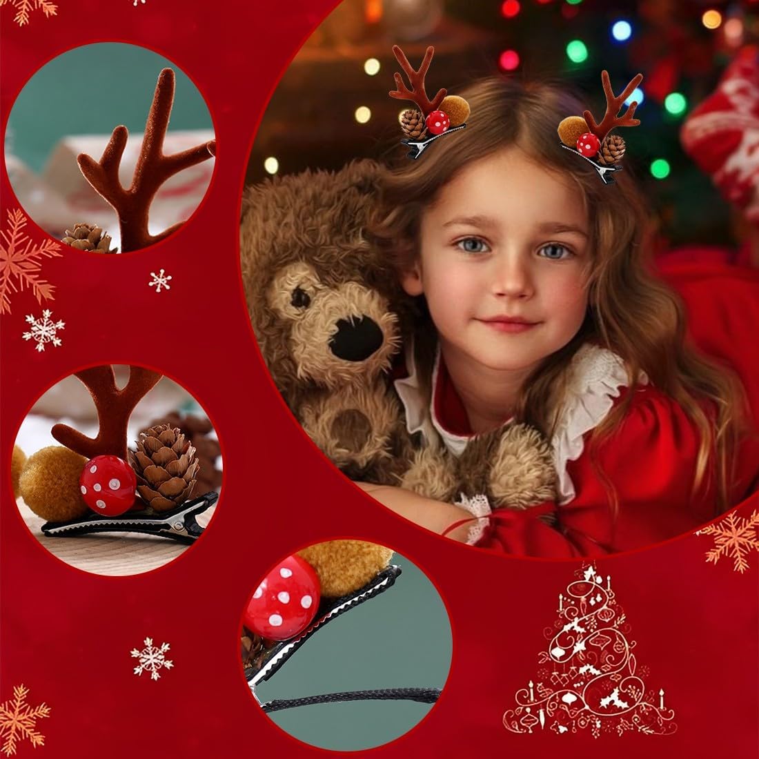 Confezione: include 4 forcine per capelli con graziosi motivi natalizi a forma di alce. Questo set di forcine natalizie è ideale per neonati, bambine e bambine, per un Natale indimenticabile. Look natalizio unico: con queste mollette per capelli a forma di renna, i tuoi bambini saranno al centro dell'attenzione a ogni festa di Natale e creeranno un'atmosfera festosa. Combinazione versatile: queste mollette per capelli natalizie possono essere abbinate perfettamente ad abiti natalizi, fasce, cappelli e magliette e offrono innumerevoli possibilità di styling. Adatto a tutti i tipi di capelli: i fiocchi sono ben incollati, quindi non si aggrovigliano né si incastrano nei capelli durante le feste o l'uso quotidiano. Che i tuoi capelli siano corti, lunghi, sottili o folti, queste mollette natalizie per bambini si adattano saldamente e comodamente e sono adatte a tutti i tipi di capelli. Regalo di Natale perfetto: queste graziose mollette per capelli natalizie non sono solo un accessorio fantastico, ma anche un regalo di Natale ideale per amici e familiari