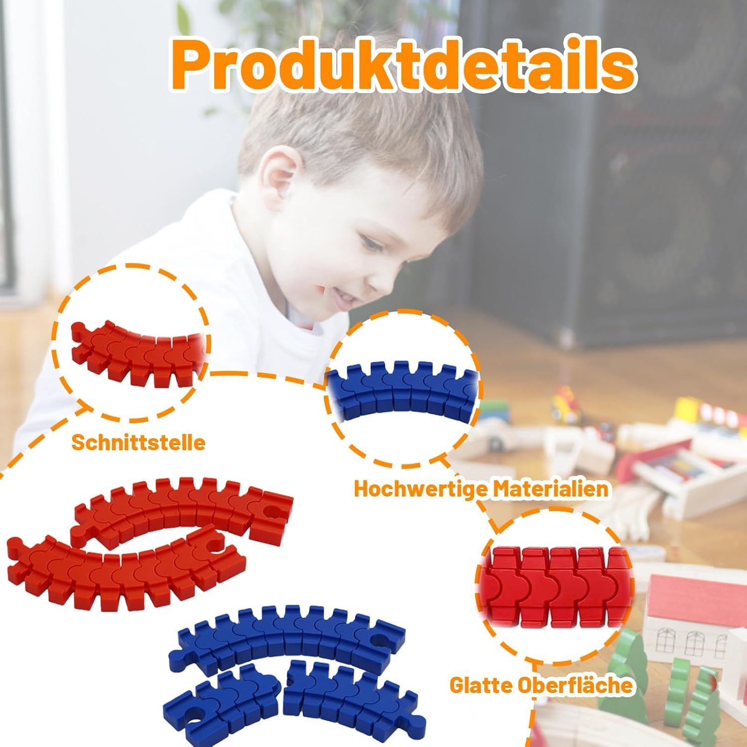 Binari flessibili per ferroviari in legno: i binari consentono la creazione di treni e promuovono le abilità motorie; i materiali di alta qualità garantiscono un divertimento duraturo. Accessori ferroviari in legno compatibile: questi binari sono compatibili con la maggior parte dei sistemi ferroviari in legno; la semplice integrazione consente maggiori possibilità di gioco. Design colorato: i binari si adattano armoniosamente a qualsiasi collezione di treni in legno; il design accattivante stimola l'immaginazione e favorisce il gioco insieme. Giocattolo sicuro: realizzato con materiali di alta qualità; gli angoli e i bordi arrotondati offrono una maggiore sicurezza durante il gioco. Benefici pedagogici: binari in legno ideali per genitori ed educatori che desiderano promuovere lo sviluppo delle capacità motorie e sociali; Supporta il pensiero creativo e le capacità di risoluzione dei problemi.