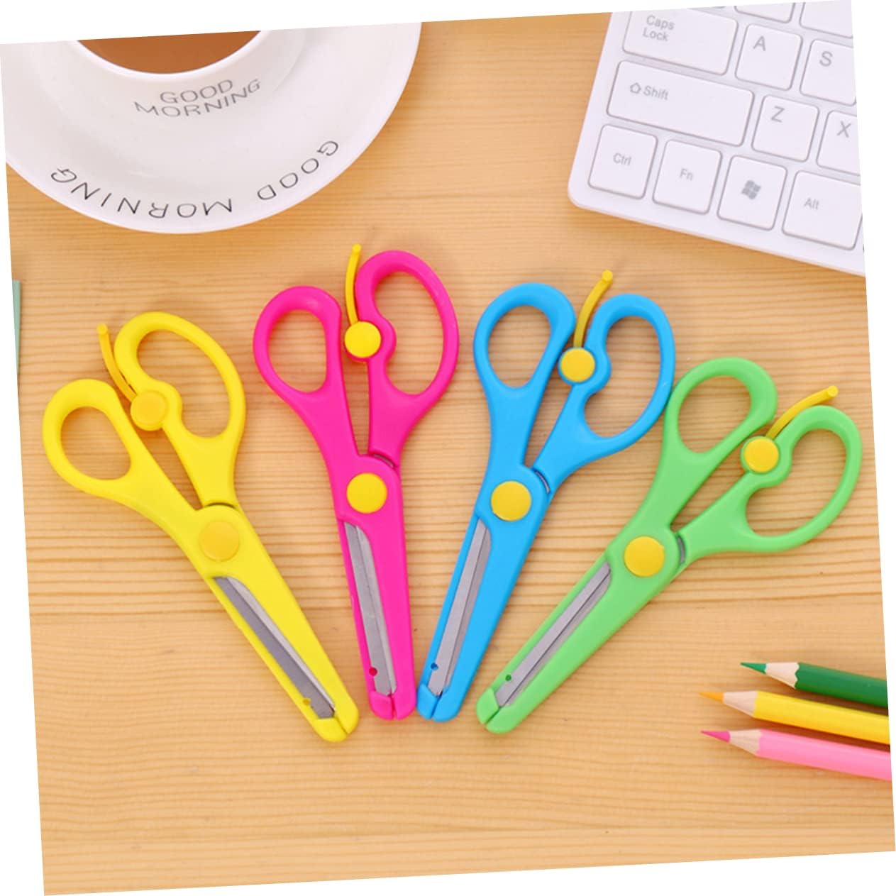 Forbici per bambini: la confezione include 4 pezzi, per casuale Forbici per l'addestramento prescolare: la cassaforte impedisce bambino di essere tagliato Forbici di sicurezza per bambini: sicure e comode da usare, soprattutto per i bambini Forbici per bambini: adatte per l'istruzione prescolare dei bambini Forbici per bambini: i colori vivaci adattano ai gusti dei bambini