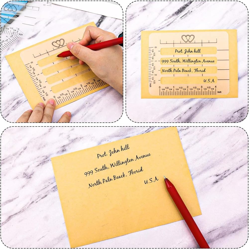 Strumenti di scrittura pratici: utilizza i nostri modelli di indirizzi per buste per rendere la tua calligrafia e la tua scrittura a mano ordinate e coerenti, aiutandoti a migliorare le tue capacità di scrittura. Garantisce che la tua scrittura a mano rimanga centrata e dritta, rendendo la tua busta bellissima. [Materiale del prodotto] Il modello di indirizzamento della busta è realizzato in plastica di alta qualità, resistente e affidabile, e può essere utilizzato a lungo. Si prega di utilizzarlo con fiducia. Molto adatto per spedire buste, inviti, ecc. Design accurato: questi modelli di buste sono stati progettati con cura con linee, tratti e punti precisi per aiutarti a guidare la tua scrittura e garantire che il tuo testo ordinato e standardizzato.
