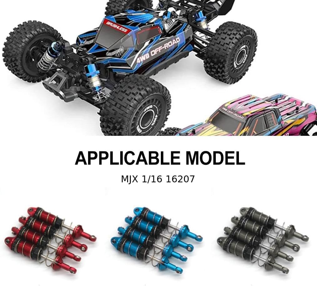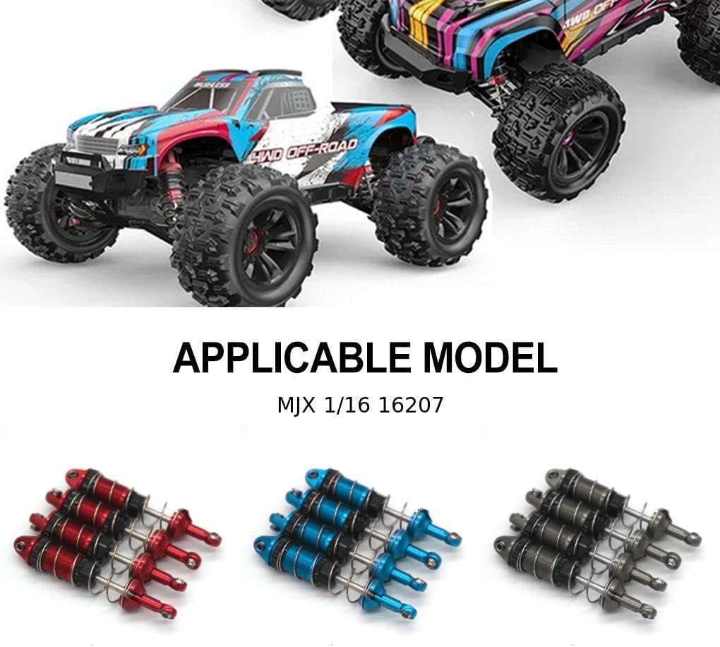 【Compatibilità】: accessorio per auto RC realizzato in lega di alluminio adatto per modelli 1/16 MJX H16,16207,16208,16209,16210, con altissima compatibilità 【Caratteristiche】: effetto smorzante regolare ed eccellente Contenuto della confezione: 4 ammortizzatori anteriori e posteriori inclusi 【Qualità】: realizzato in materiale di qualità per maggiore resistenza, durata e aspetto migliorato 【Parti di aggiornamento】: simpatici pezzi di ricambio per aggiornare e modificare i tuoi modellini di auto, simulazione altamente dettagliata, derivati dal design di un'auto reale per aumentare l'autenticità dell'auto RC