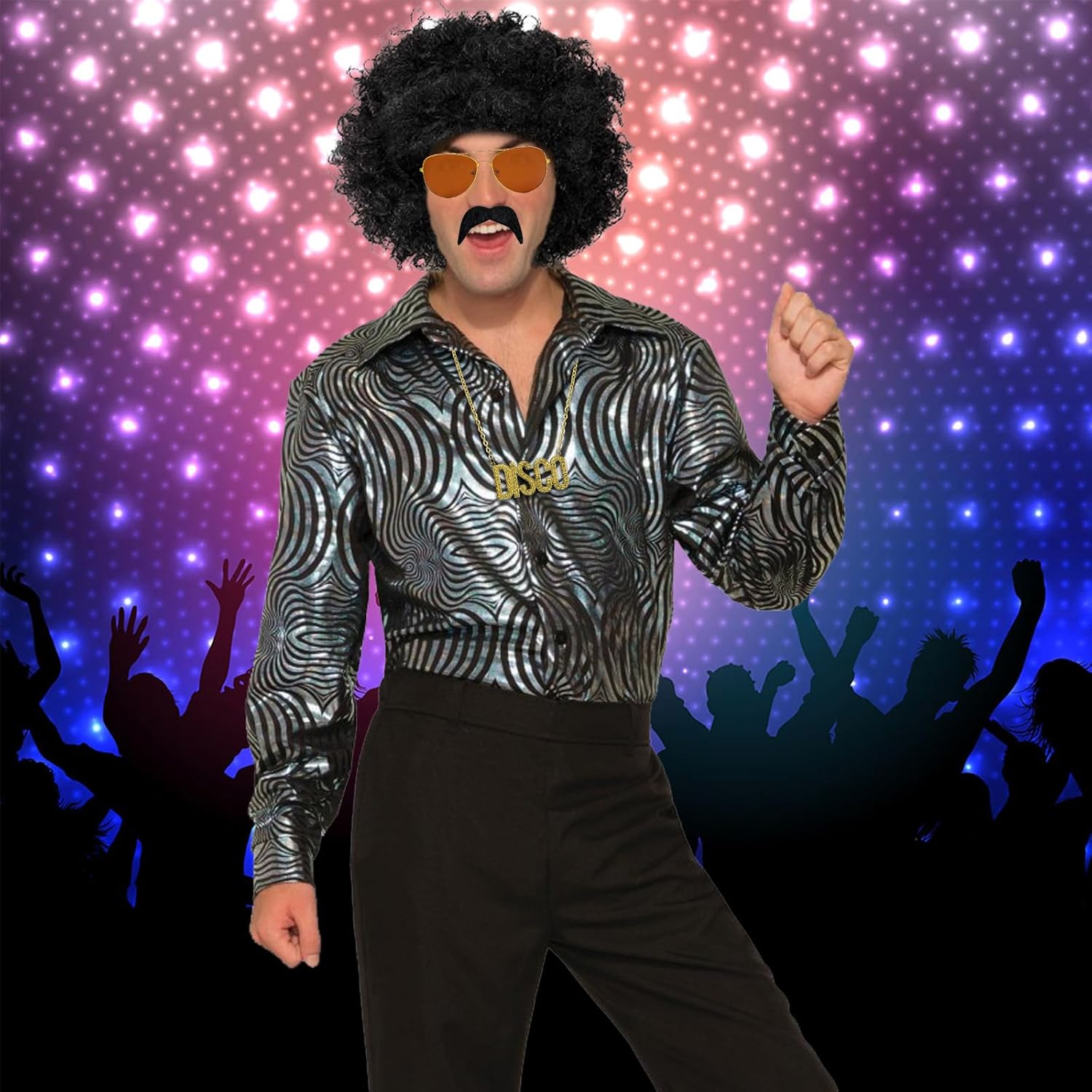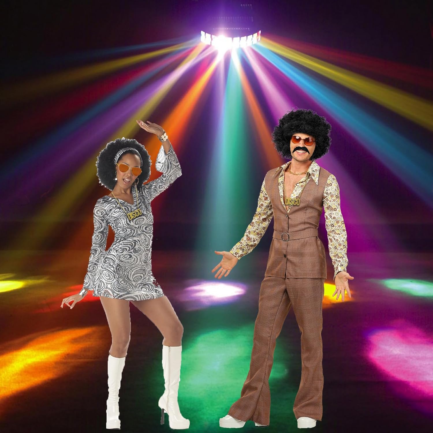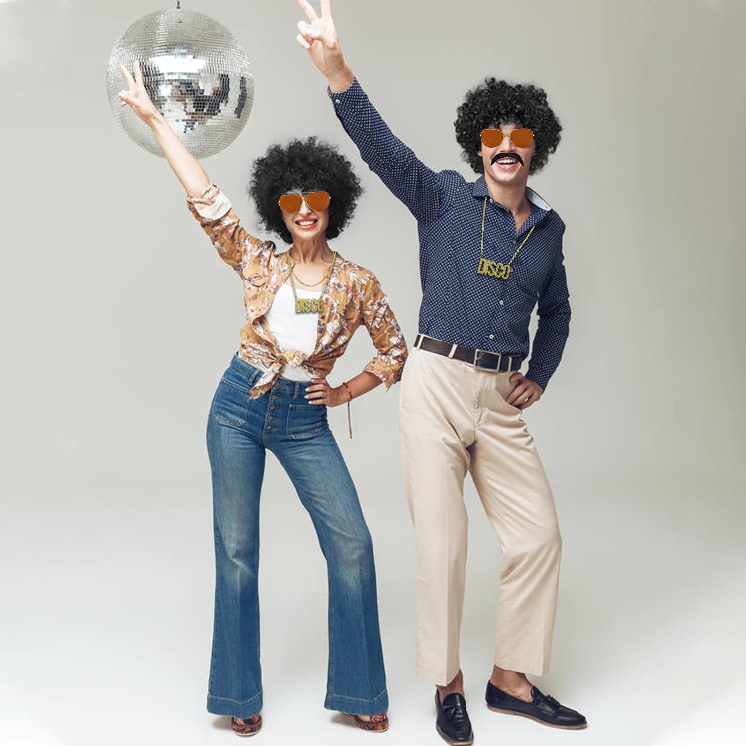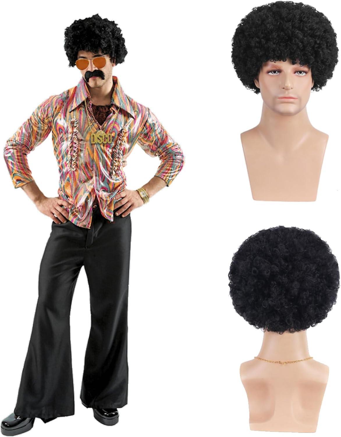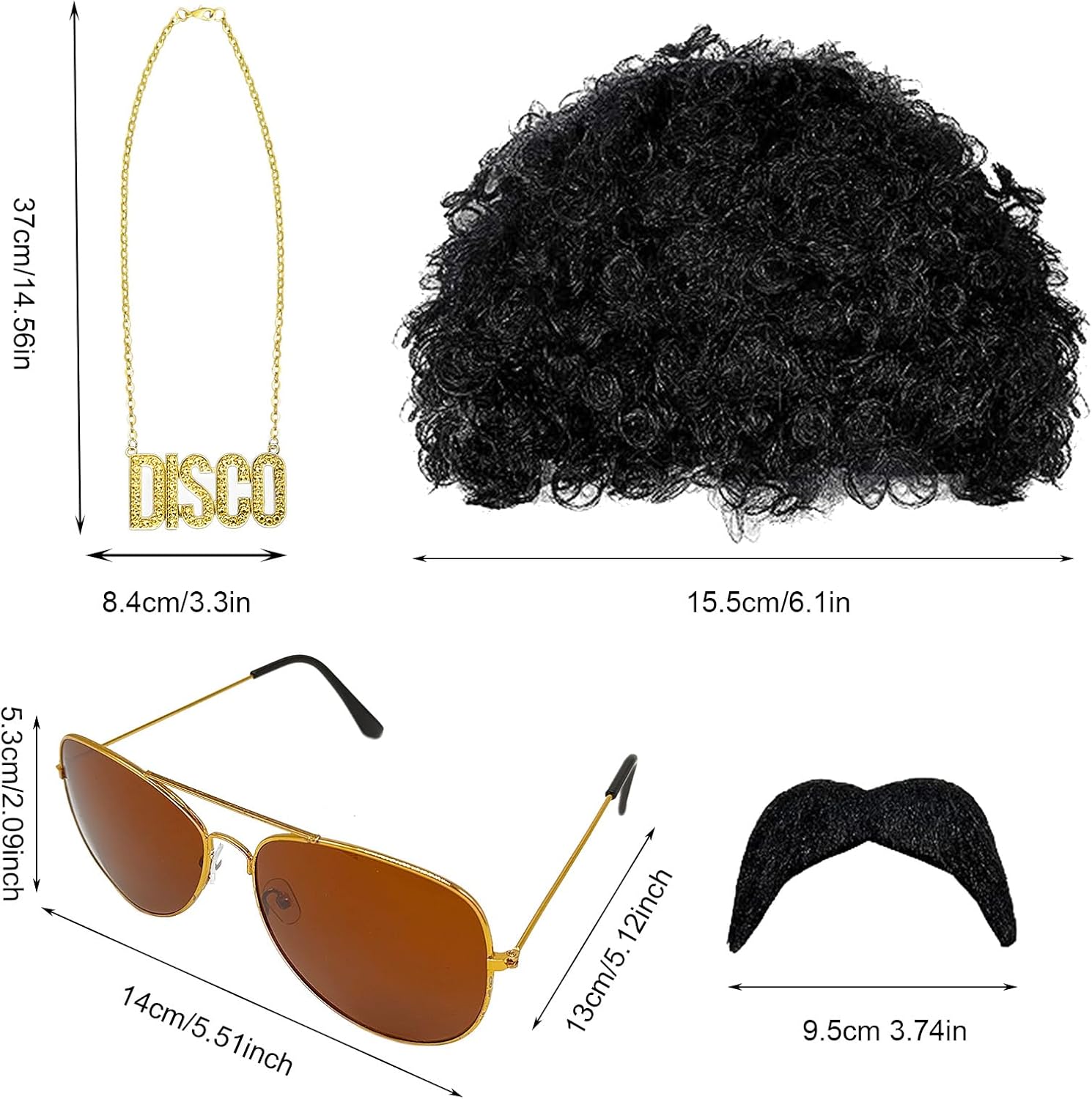 La confezione include: 1 confezione di parrucca afro jumbo funky nera, 1 paio di occhiali da sole hippie, 1 collana e baffi. Questo pacchetto mostra uno stile anni '60 e '70 che si adatta alla maggior parte degli adolescenti e degli adulti Materiale di qualità: la parrucca afro originale e la collana sono materiali di qualità che garantiscono solidità e robustezza. Sembrano molto strutturati, di qualità e durevoli Adatto a tutti: la parrucca funky e gli occhiali da sole hippie sono adatti a tutti. Questi bizzarri set di costumi hippie sono un'aggiunta meravigliosa per le feste in maschera negli anni '60, '70 e '80, adatti alla maggior parte degli adolescenti e delle persone Ideale per le feste: è ideale per uomini, donne e adolescenti ed è una parte essenziale del tuo costume anni '60 o '70. Adatto anche per vari festival ed eventi, come abiti retrò, Halloween, feste scolastiche e feste Regalo adatto: molti adolescenti e adulti apprezzano gli accessori hippie trendy e retrò e sono ottimi regali. questi accessori hippie aggiungeranno meravigliose feste alle feste a tema degli anni '60, '70 e '80, questo abito hippie degli anni '60 era una buona scelta per uomini e donne