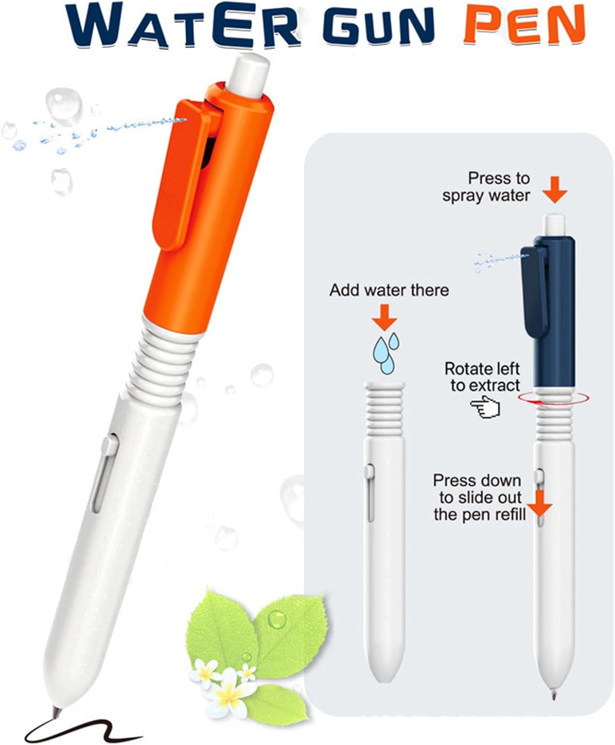 STURDy Build Qualità: progettata per durata e prestazioni coerenti, questa penna incorpora materiali robusti e artigianato raffinato, garantendo un'elevata precisione e l'usabilità estesa nel Più intrattenimento in penna: progettata in modo innovativo per doppi scopi, questa penna riesce a scrivere compiti ma aggiunge eccitazione attraverso la spruzzatura di acqua, creando momenti divertenti e fungendo da compagno a favore dello scherzo Sorprese di acqua giocosa: illumina le routine con spray d'acqua sorprendenti, creando un'esperienza divertente per gli amici aggiungendo divertimento giocoso in ogni momento in modo memorabile Accessorio Chic Accessorio Scelta: realizzato per impressionare, il suo tocco elegante e il suo stile elegante rendono questo accessorio un'opzione straordinaria per la presentazione ponderata per studenti creativi: porta gioia a scrivere combinando funzionalità con l'intrattenimento, progettato specificamente per gli studenti che hanno bisogno di un oggetto indispensabile di ritorno a scuola per supportare sia la produttività che le divertenti pause di studio