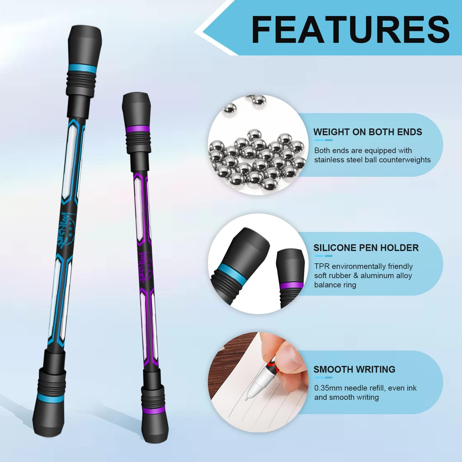 🖊【Contenuto della confezione】:Riceverai 4 pezzi di penne rotanti in un unico pacchetto, quantità e stili sufficienti per soddisfare le tue esigenze per l'uso quotidiano e la sostituzione, puoi condividere con i tuoi amici e genitori 🖊【Materiale di qualità】: Queste penna rotante da gioco sono principalmente realizzate in materiale antiscivolo, resistente all'usura e alla pressione, che sono robuste e solide, non facili da sbiadire o deformare, inoltre sono delicate e riutilizzabili, il materiale affidabile può essere applicato a lungo 🖊【Caratteristiche】: Penne punta in carburo di tungsteno da 0,35 mm, l'inchiostro nero scorre uniformemente, scrive senza intoppi, offrendoti una migliore esperienza di scrittura. 🖊【Giocattolo antistress】: La penna rotante è adatta sia per bambini che per adulti; Puoi usare questa penna per allenare le mani, gli occhi e il cervelletto, in modo da migliorare la concentrazione, la memoria e la capacità di apprendimento; Può anche aiutarti ad alleviare la pressione del lavoro e della vita 🖊【Bella scelta di regali】: Il kit per la rotazione della penna può essere considerato un regalo interessante per amici, parenti, colleghi, compagni di classe e altro ancora, per esprimere il tuo amore e le tue cure, appropriato per il Ringraziamento, Natale, Capodanno, compleanno e altro