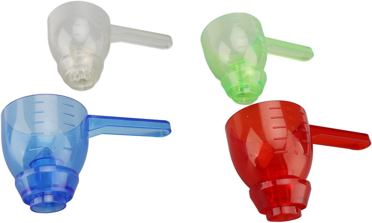 Design a imbuto intelligente: questo cucchiaio di misurazione che perde presenta un design a imbuto intelligente ed è appositamente realizzato, il che può impedire effettivamente la polvere. Multifunzionale: è multifunzionale e può facilmente misurare qualsiasi consistenza in polvere, ideale per integratori e vari ingredienti, A deve avere uno strumento pratico per l'uso domestico. Facile da pulire: le pareti del cucchiaio di misurazione che perdono sono lisce per evitare l'accumulo di resti. Ed è la lavastoviglie sicuro per maggiore comodità. Misurazione accurata: marcatori di imbuto e livellamento integrati garantiscono misurazioni accurate per una varietà di esigenze di cucina come la cottura, che è molto pratico. Materiale ABS premium: realizzato in materiale ABS premium trasparente di grado alimentare, robusto e affidabile, non facile da deformare, può essere utilizzato per un tempo più lungo.